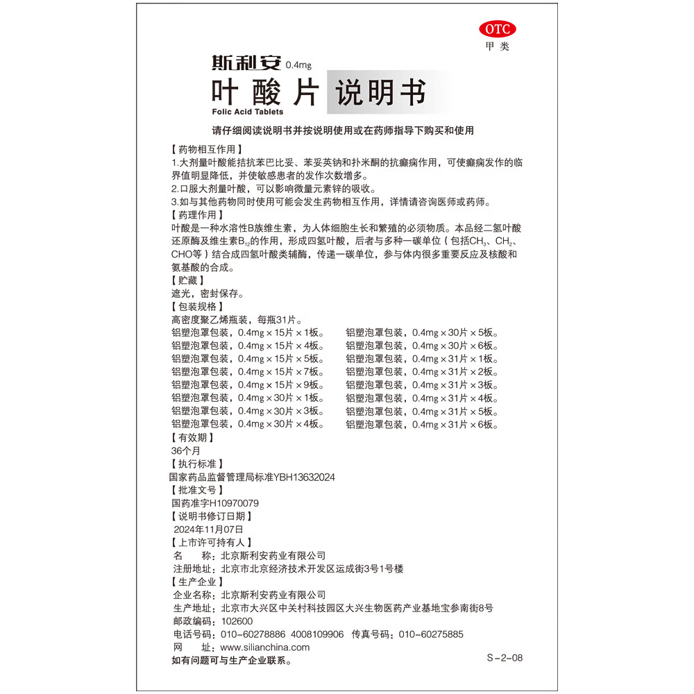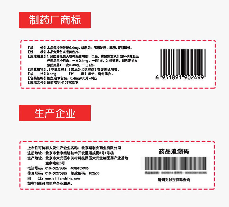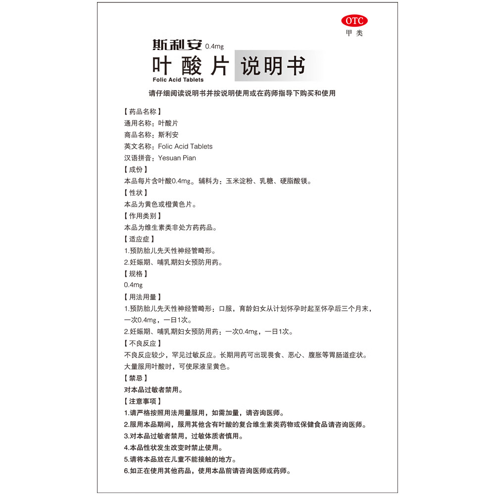 斯利安叶酸片0.4mg*120片 叶酸备孕孕妇孕早期预防胎儿畸形用药非活性 女士男士备孕叶酸片中老年补充