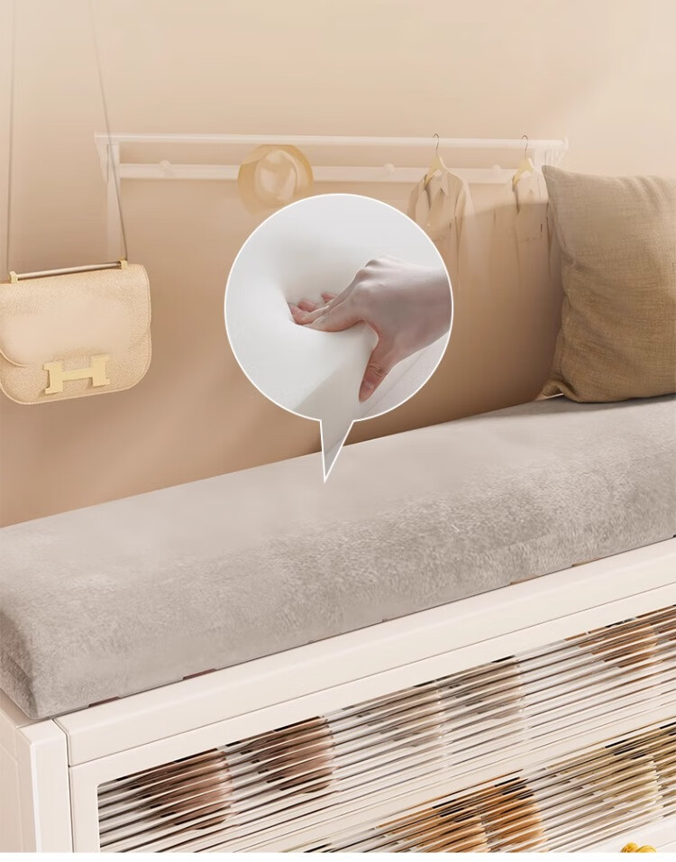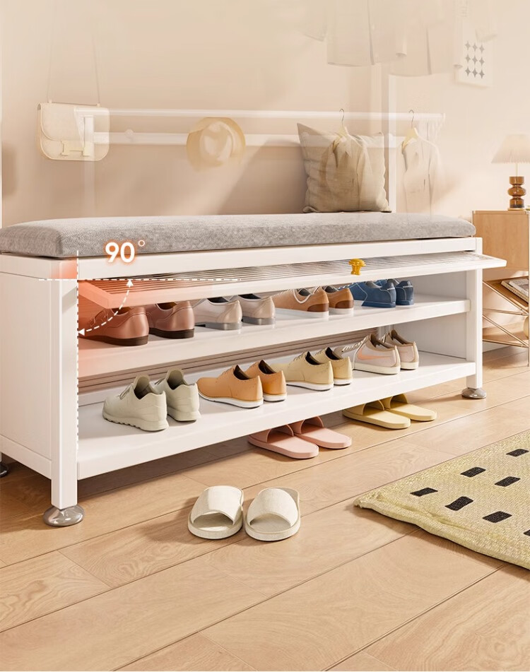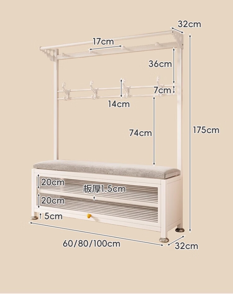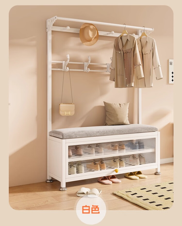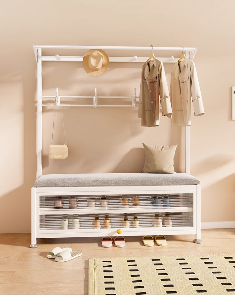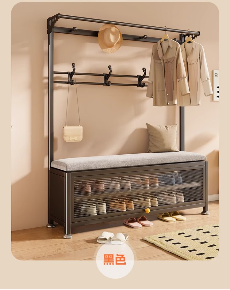 尔思家衣架落地立式换鞋凳挂衣架鞋架一体卧室专用客厅高级感简易晾衣架 【100cm黑架 绒布坐垫】防尘鞋柜+衣帽架