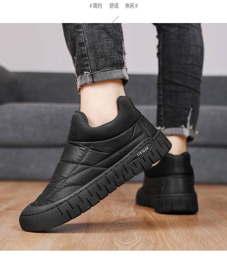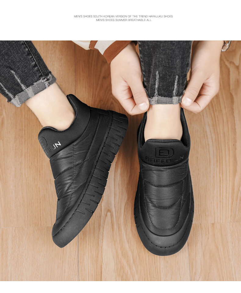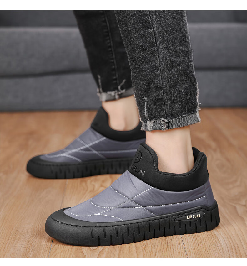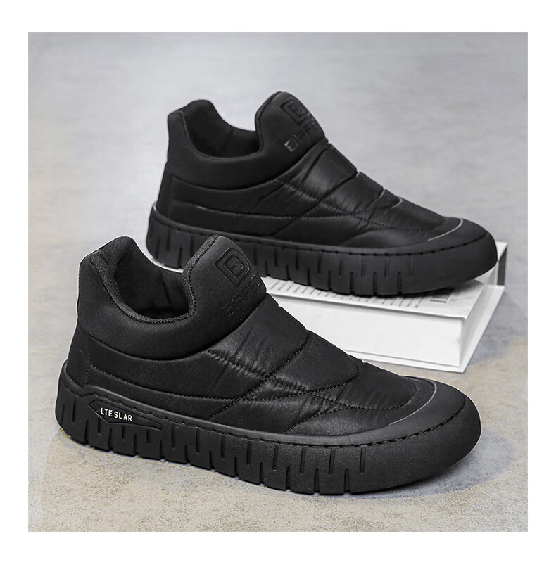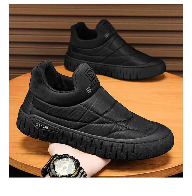 步瀛斋冬季棉鞋中老年加绒保暖老北京布鞋一脚蹬软底防滑爸爸鞋 黑色 42