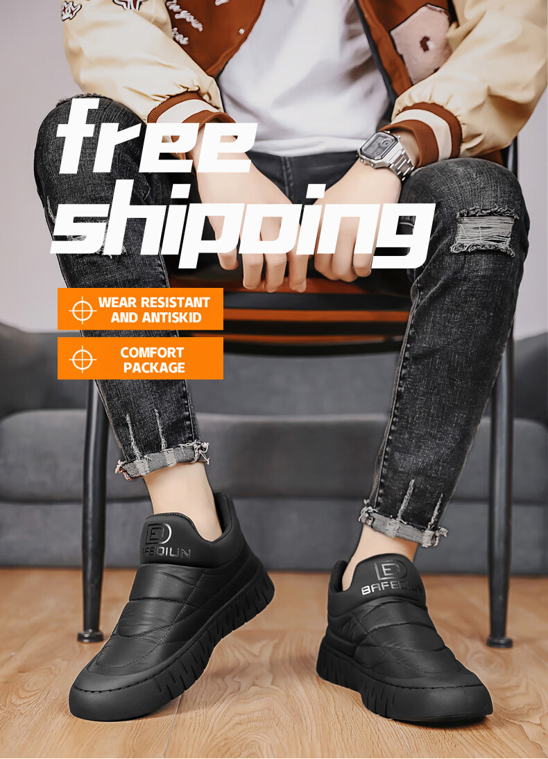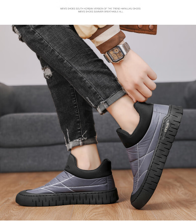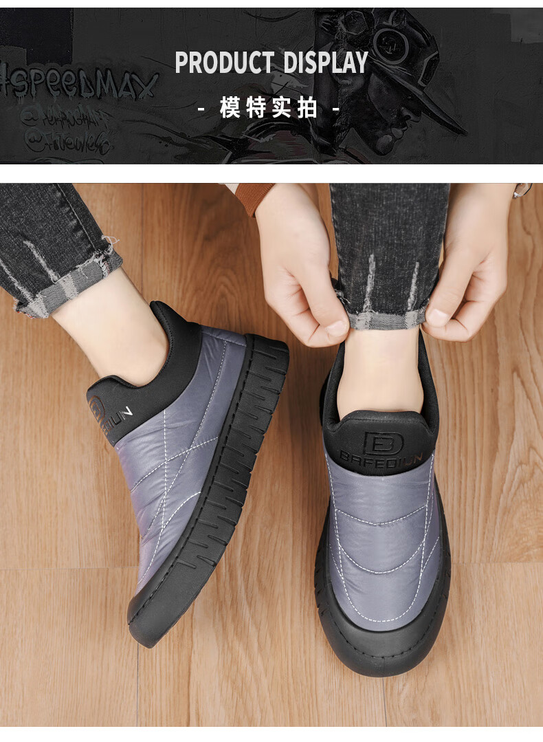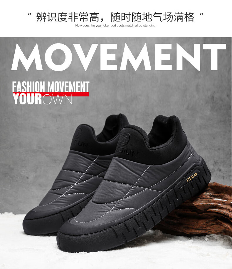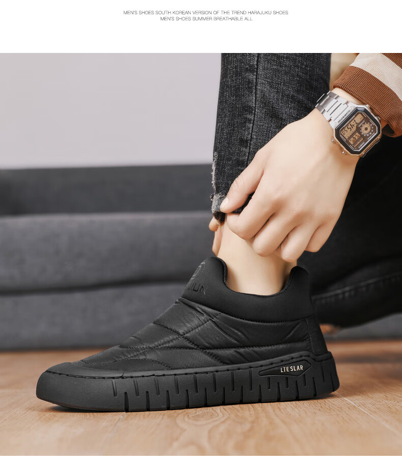 步瀛斋冬季棉鞋中老年加绒保暖老北京布鞋一脚蹬软底防滑爸爸鞋 黑色 42