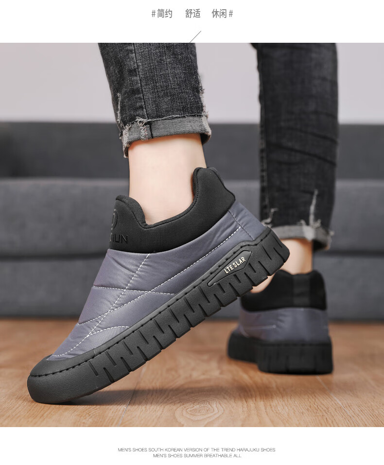 稻草人(MEXICAN)雪地靴男款冬季加绒抗寒保暖爸爸桑坡村棉鞋男零下40度一脚蹬棉靴 灰色 39