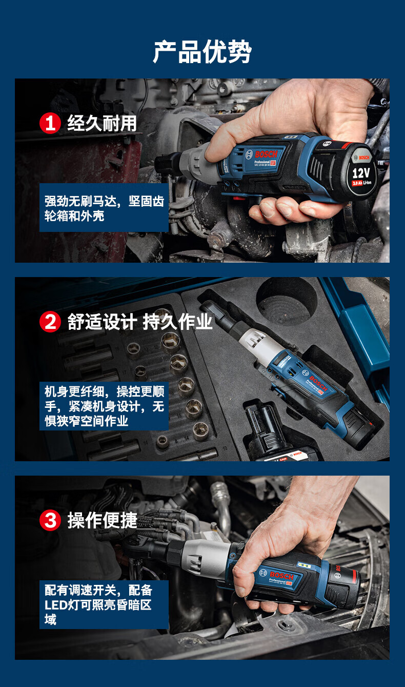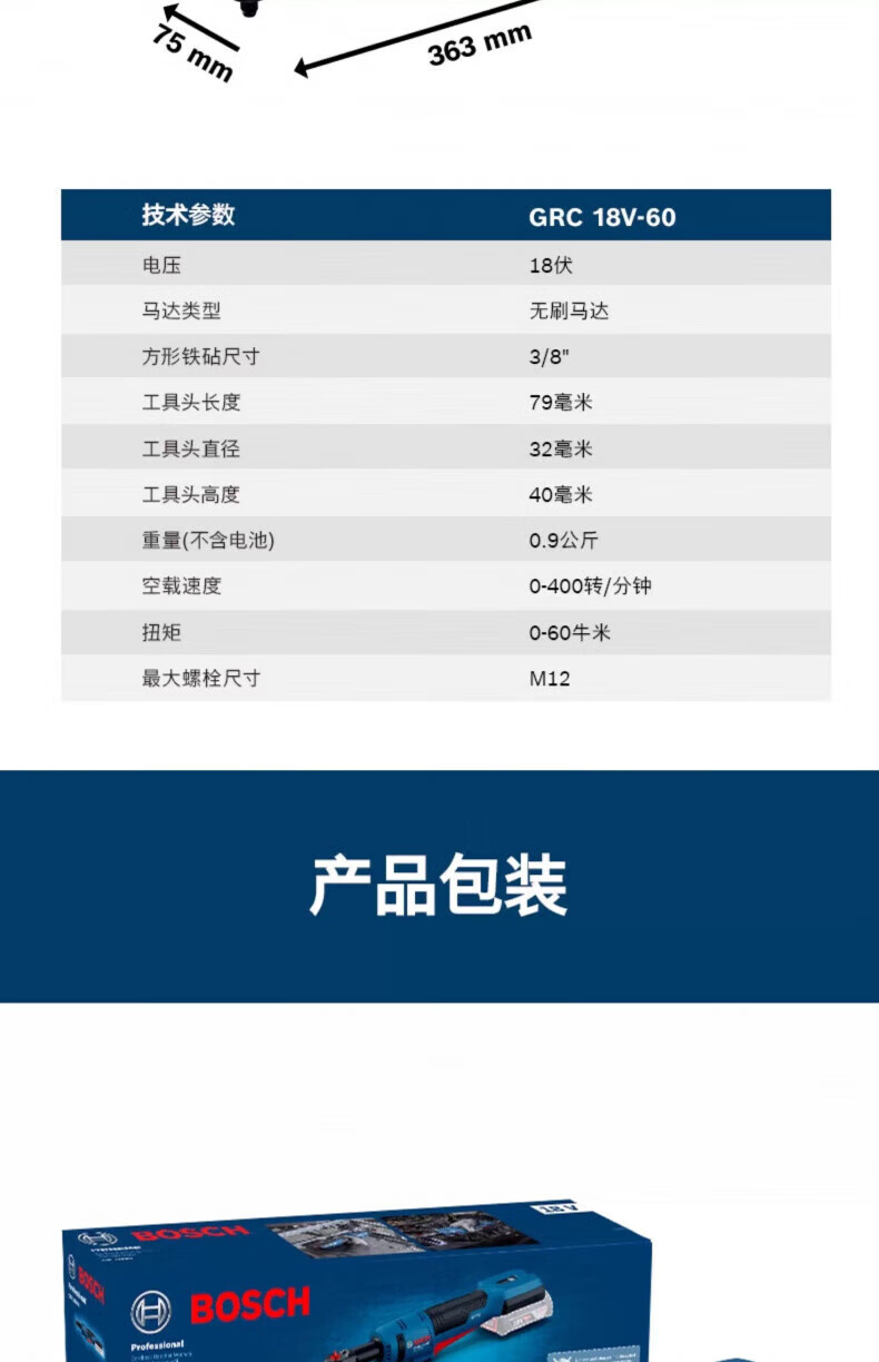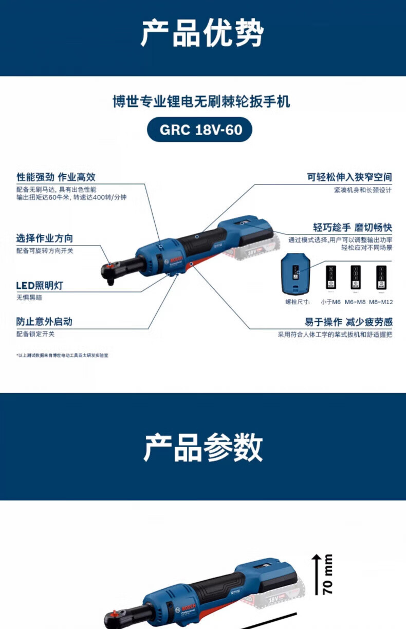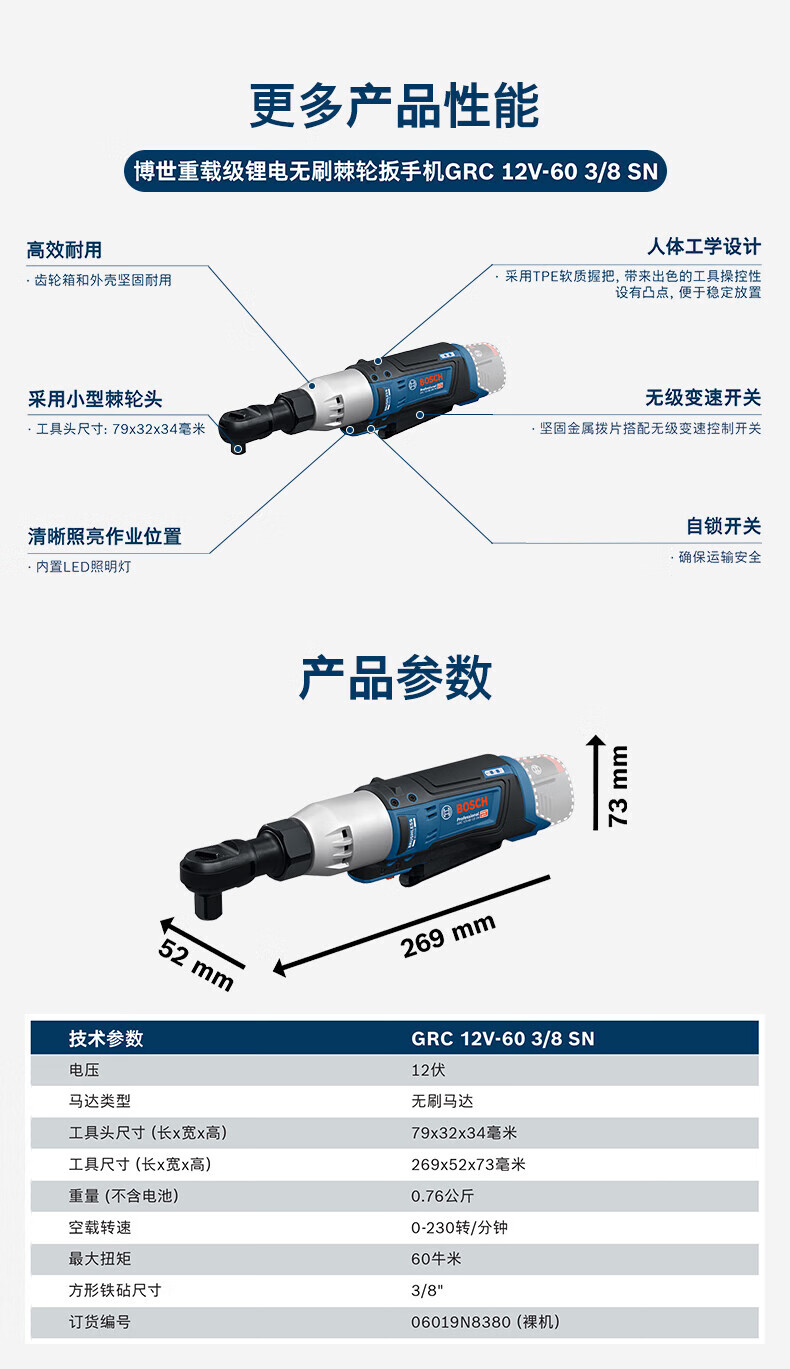 博世(BOSCH)12V电动棘轮扳手锂电无刷90度桁架GRC12V-60扳手锂电舞台桁架工具 GRC12V-60棘轮扳手【裸机】