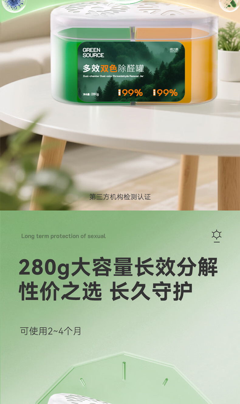 绿之源多效双色除醛罐 除味除甲醛果冻除醛魔盒新房甲醛清除剂真除醛 3盒丨多效双色除醛罐丨净化 280g 1盒