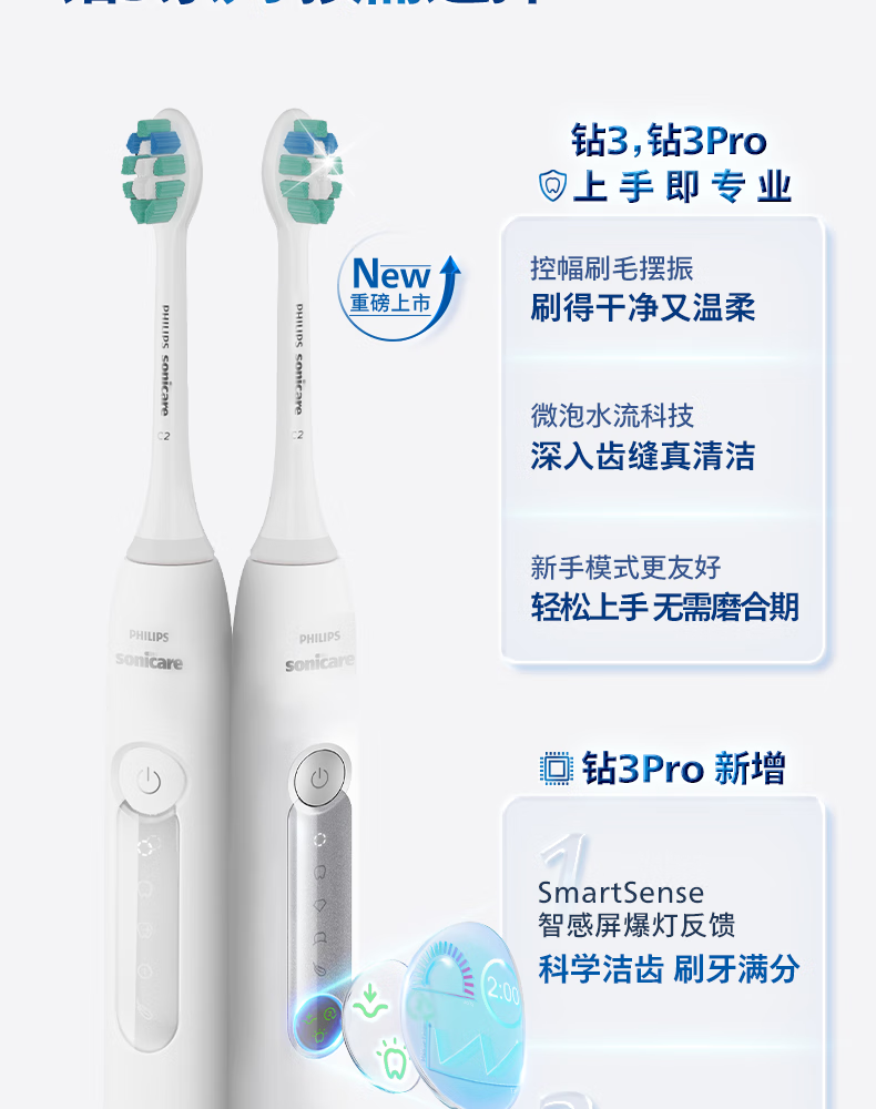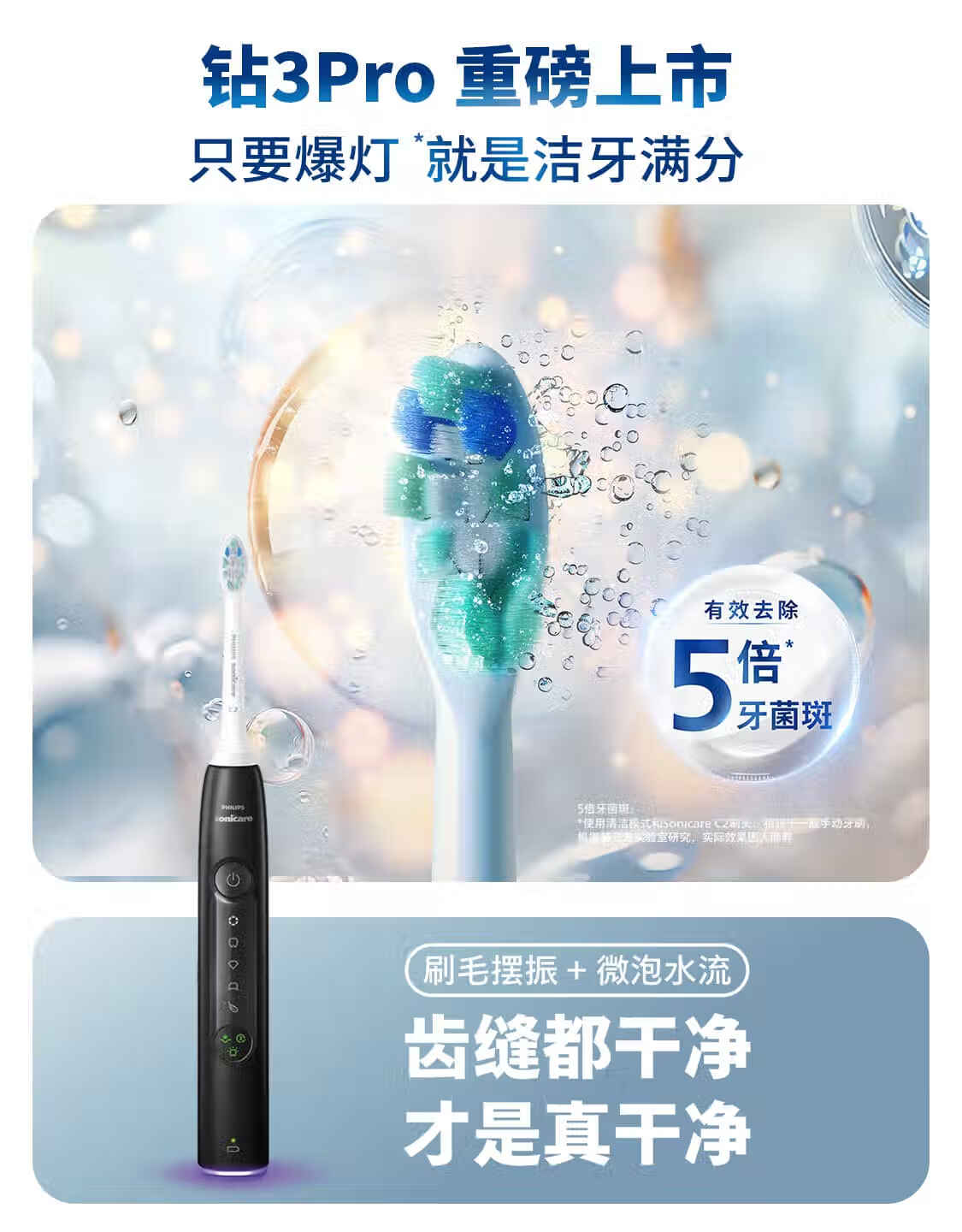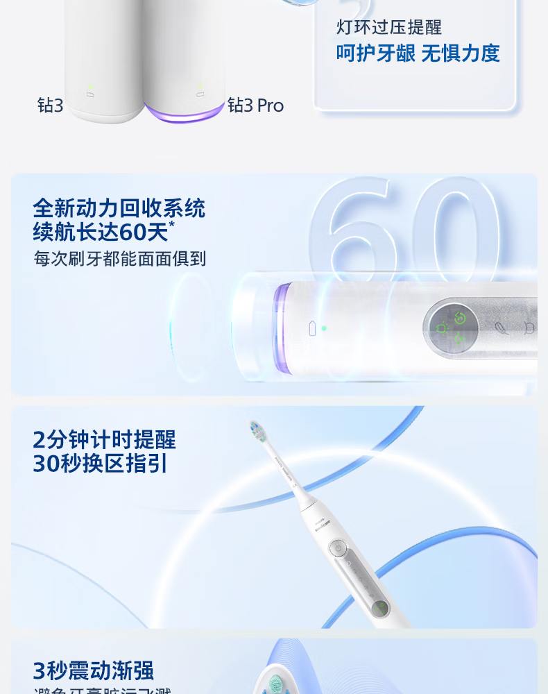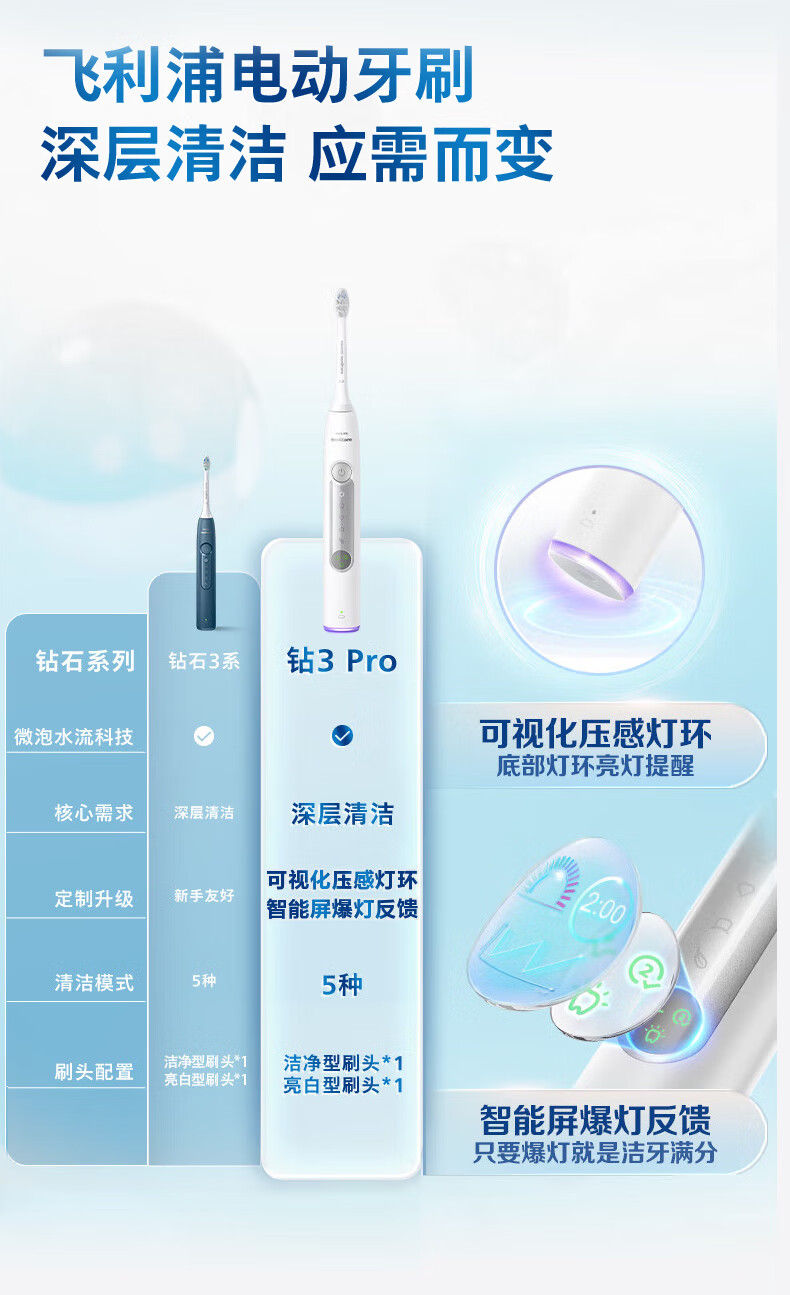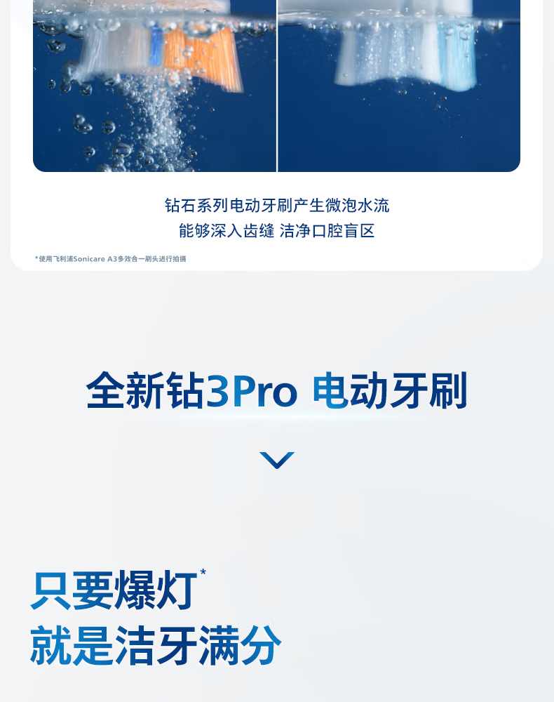 飞利浦(PHILIPS)【肖战推荐】声波电动牙刷钻石3系Pro新年生日年货节情人节礼物情侣款送男生/女友 深层清洁