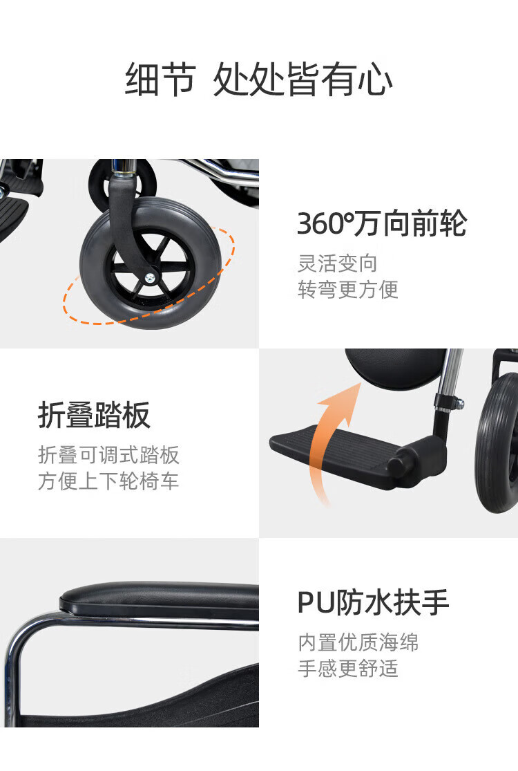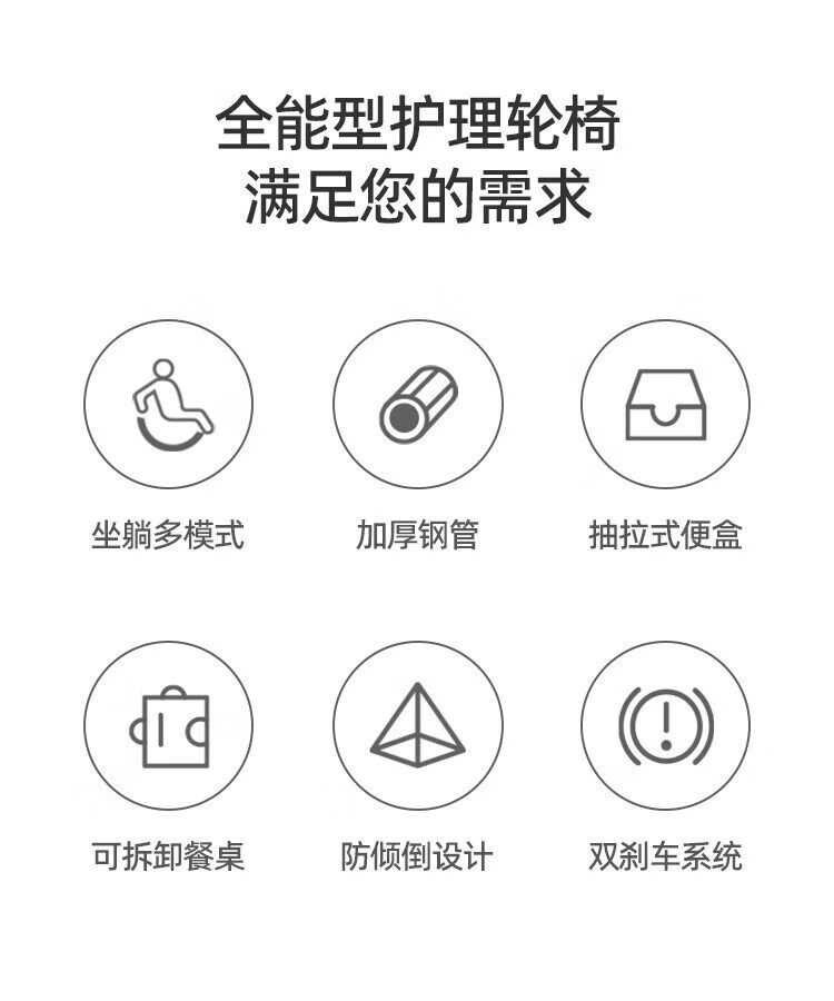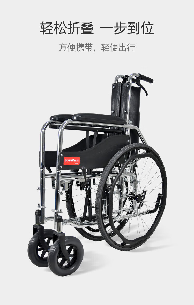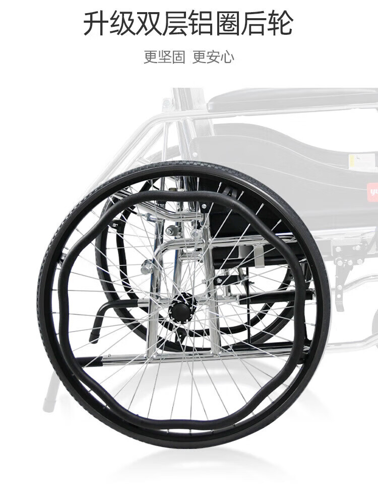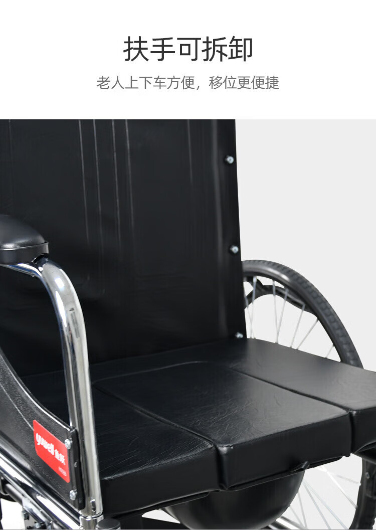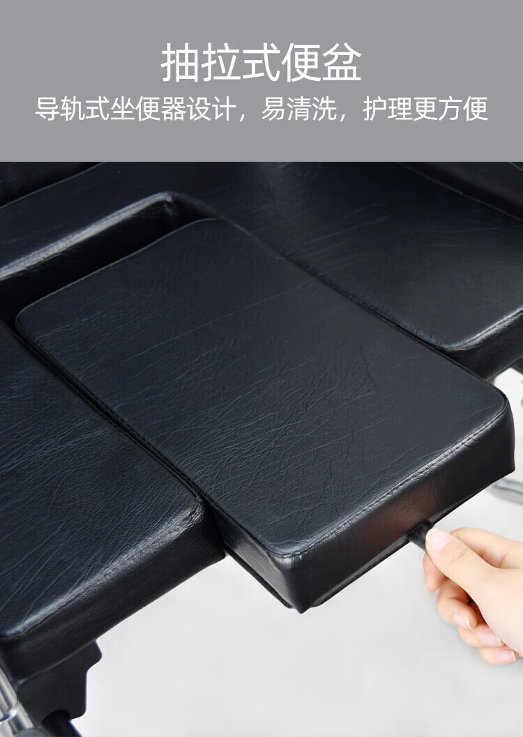 鱼跃轮椅车折叠H008B轻便老人专用带坐便器瘫痪护理代步手动推车 H008B实心胎高靠背全躺-