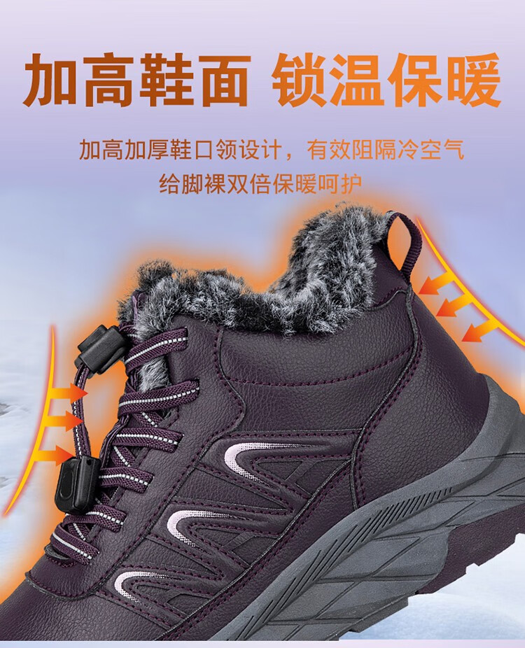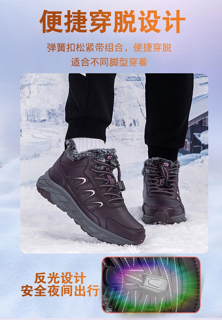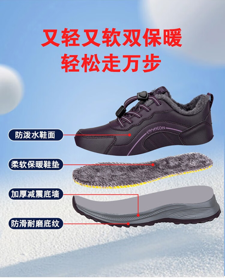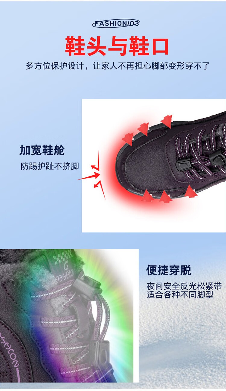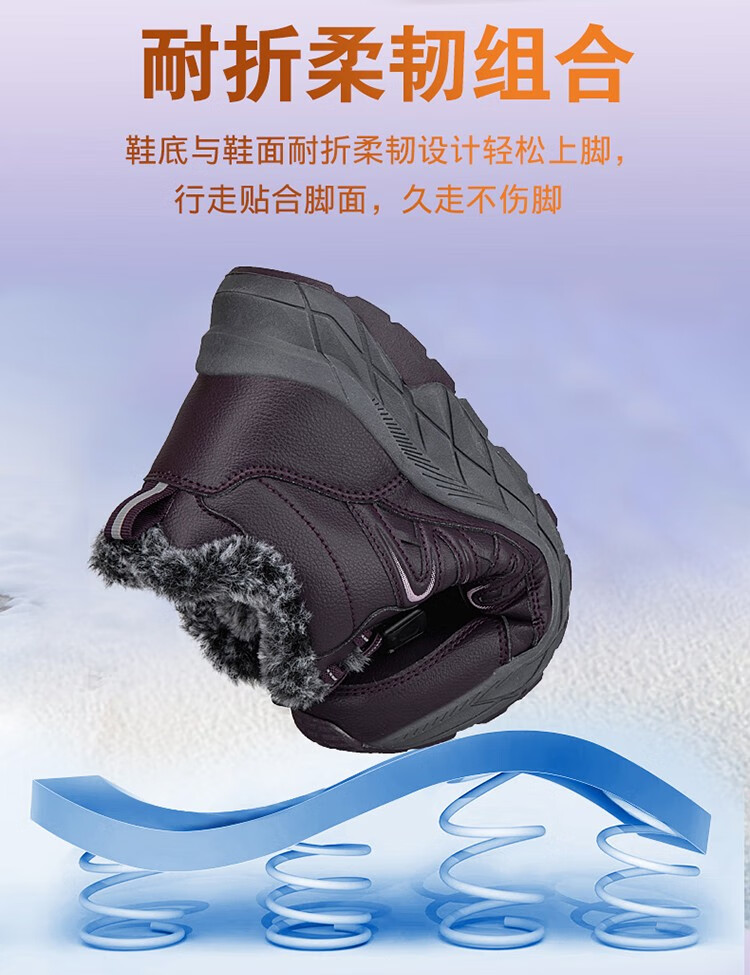 足力健大师舒适老人鞋女中老年新款休闲防滑冬季加绒保暖防滑轻便健步女棉鞋 3313紫色加绒女款 加绒 37
