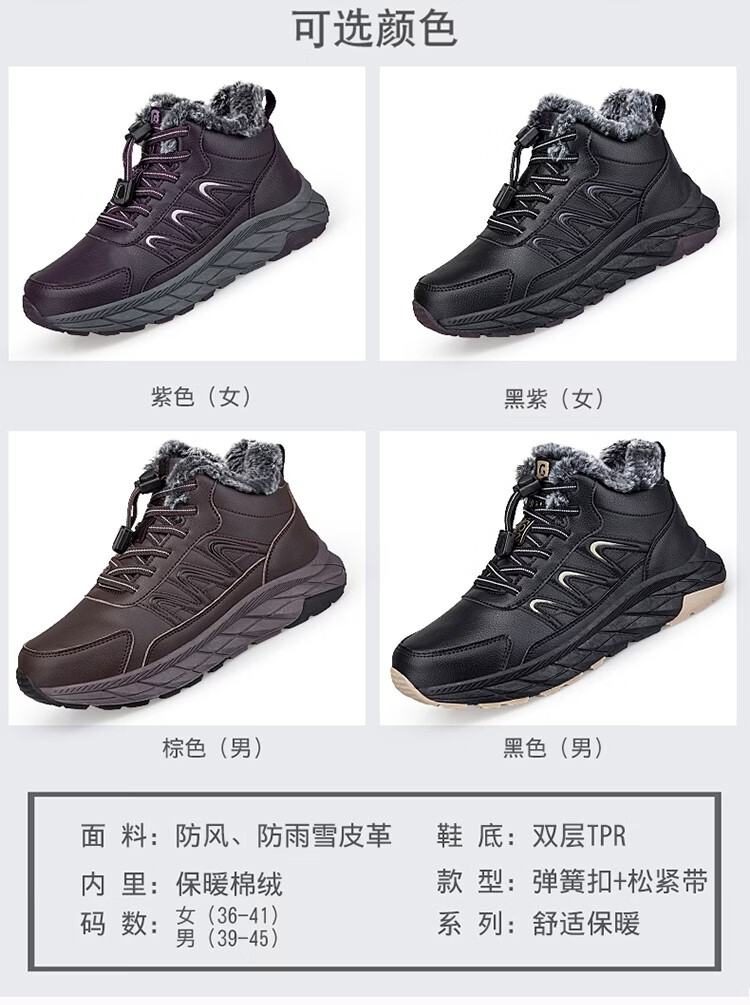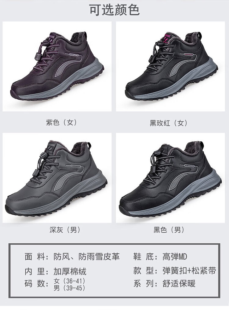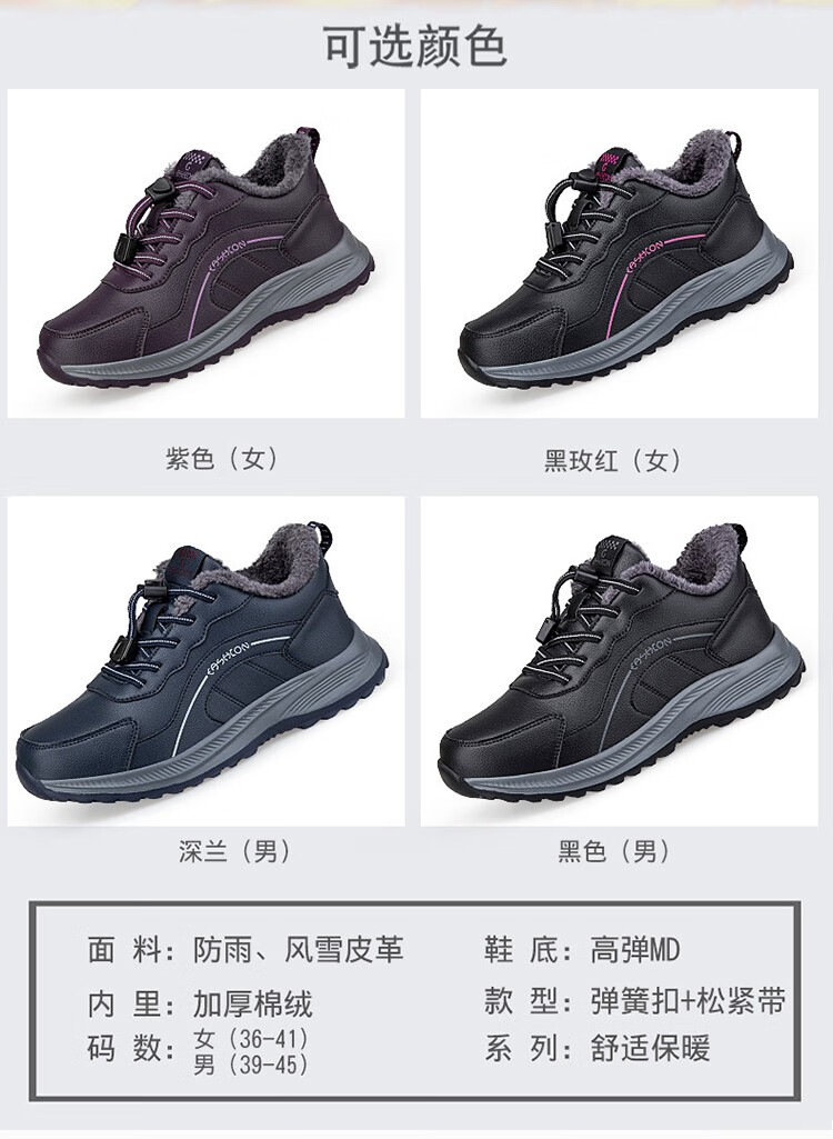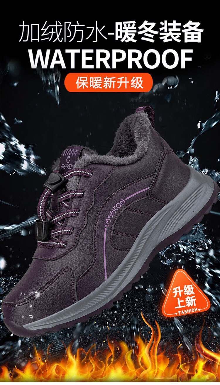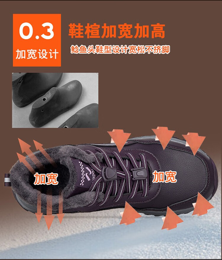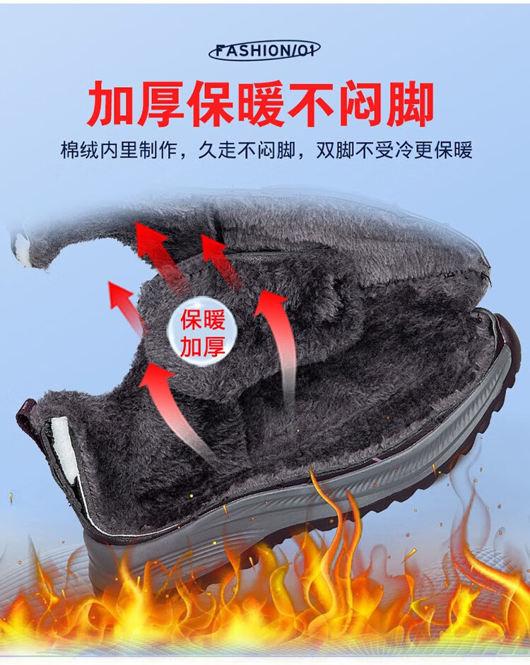 足力健大师舒适老人鞋女中老年新款休闲防滑冬季加绒保暖防滑轻便健步女棉鞋 3313紫色加绒女款 加绒 37