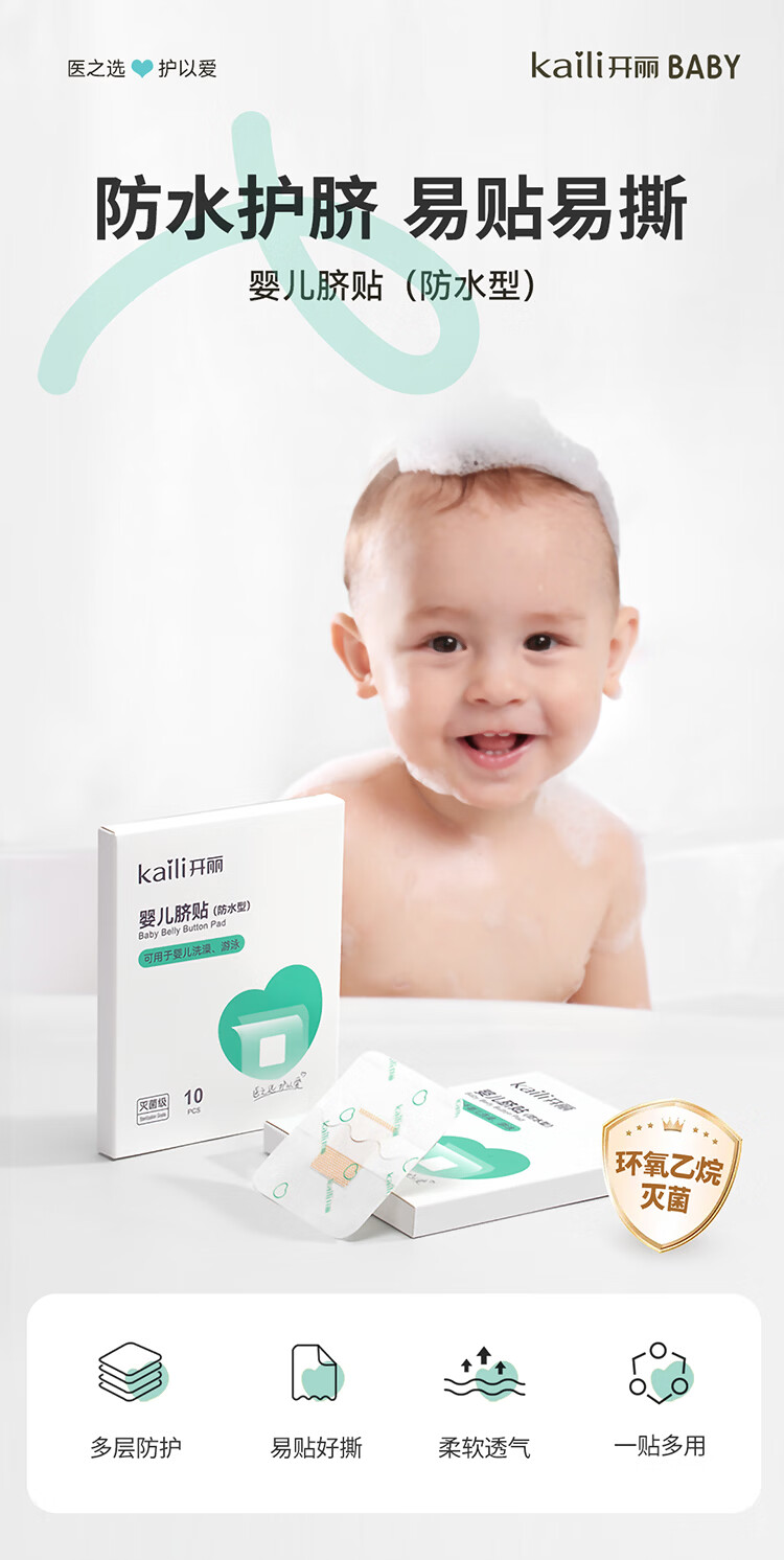 开丽 婴儿护脐贴 宝宝创口贴 新生儿洗澡游泳贴脐带贴 防水型 10片*2盒