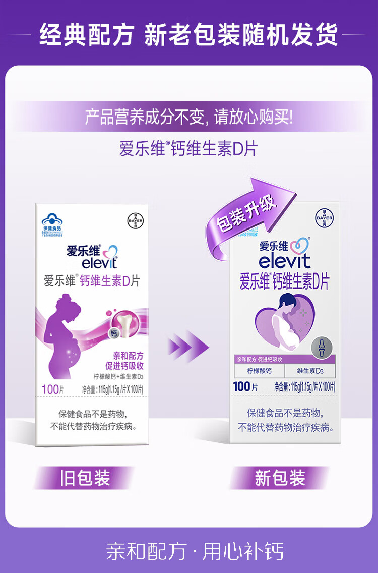 爱乐维拜耳爱乐维 孕妇钙片 柠檬酸钙+维生素D3 孕早中晚备孕哺乳期孕妇 100片*1盒