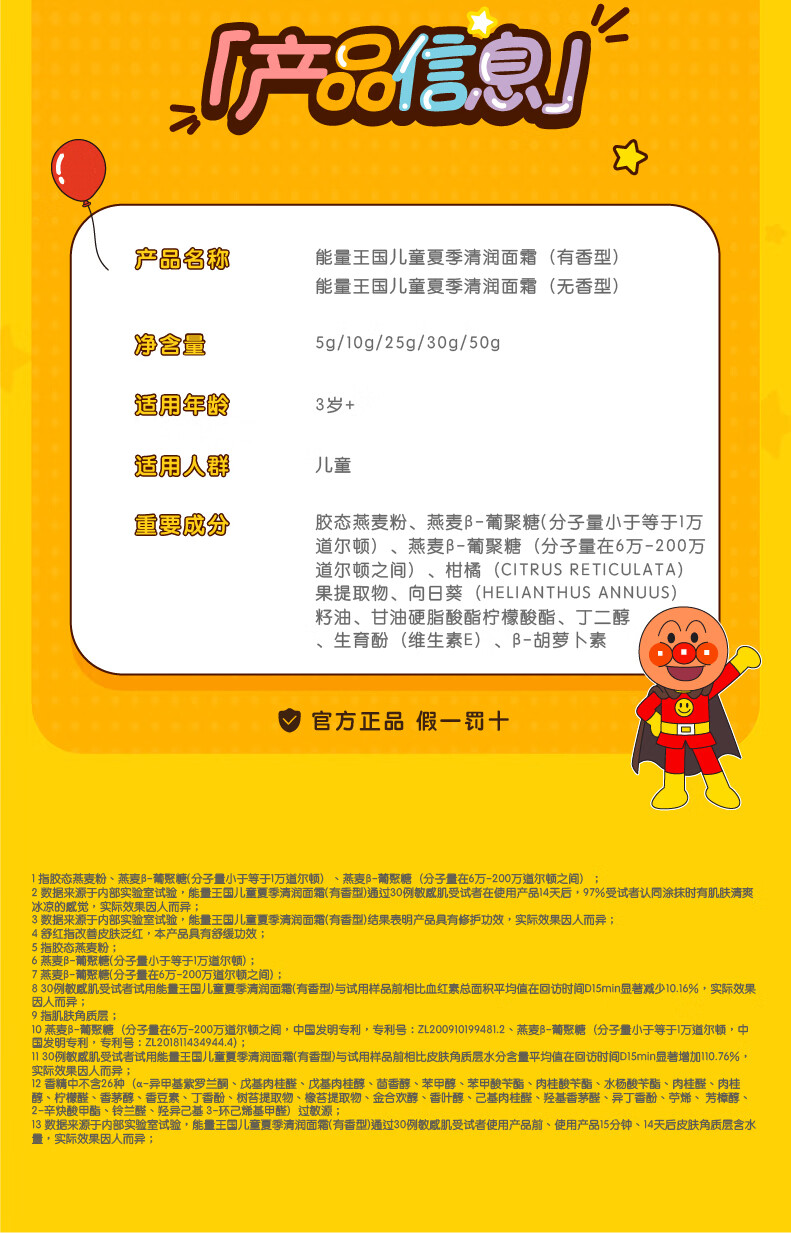 面包超人儿童面霜补水保湿舒缓滋润 婴儿宝宝特护面霜 新年礼物送宝宝 【便携装】清润面霜80g
