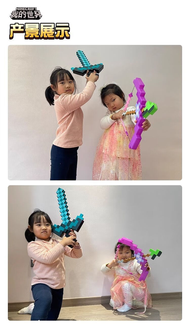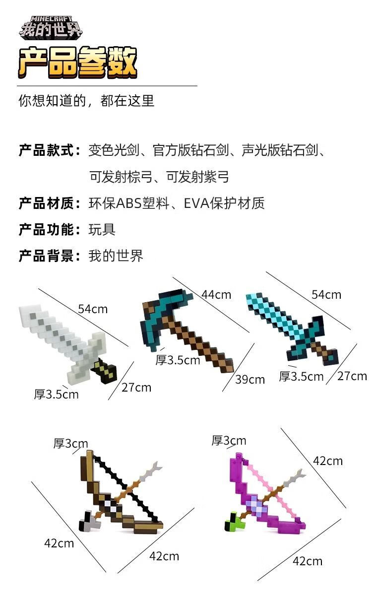 迪柏瑞新款MC我的世界游戏周边弓箭钻石剑模型武器玩具儿童男生礼物 紫色附魔【弓+箭】(可发射) 高品质