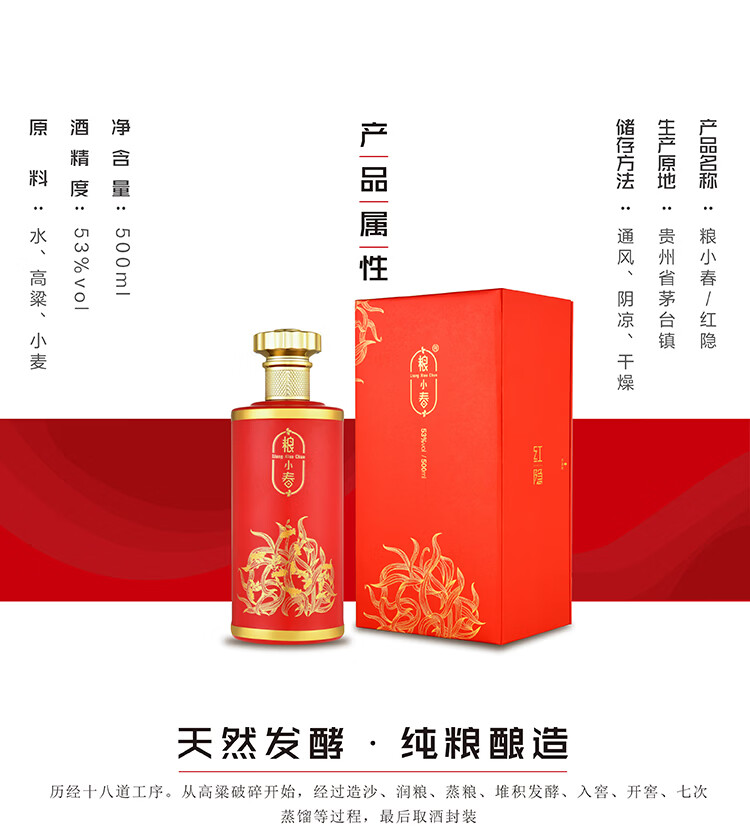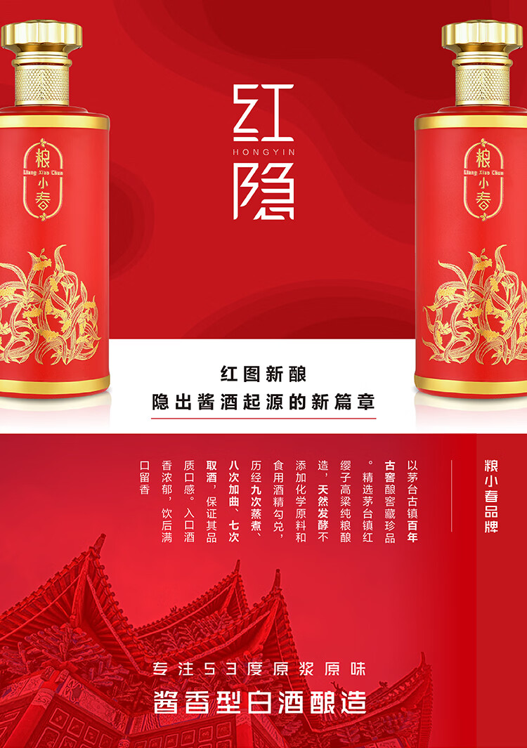 粮小春红隐53度酱香型白酒纯粮酿造酒年货送礼宴请首选 单瓶装 53度 500mL 1瓶
