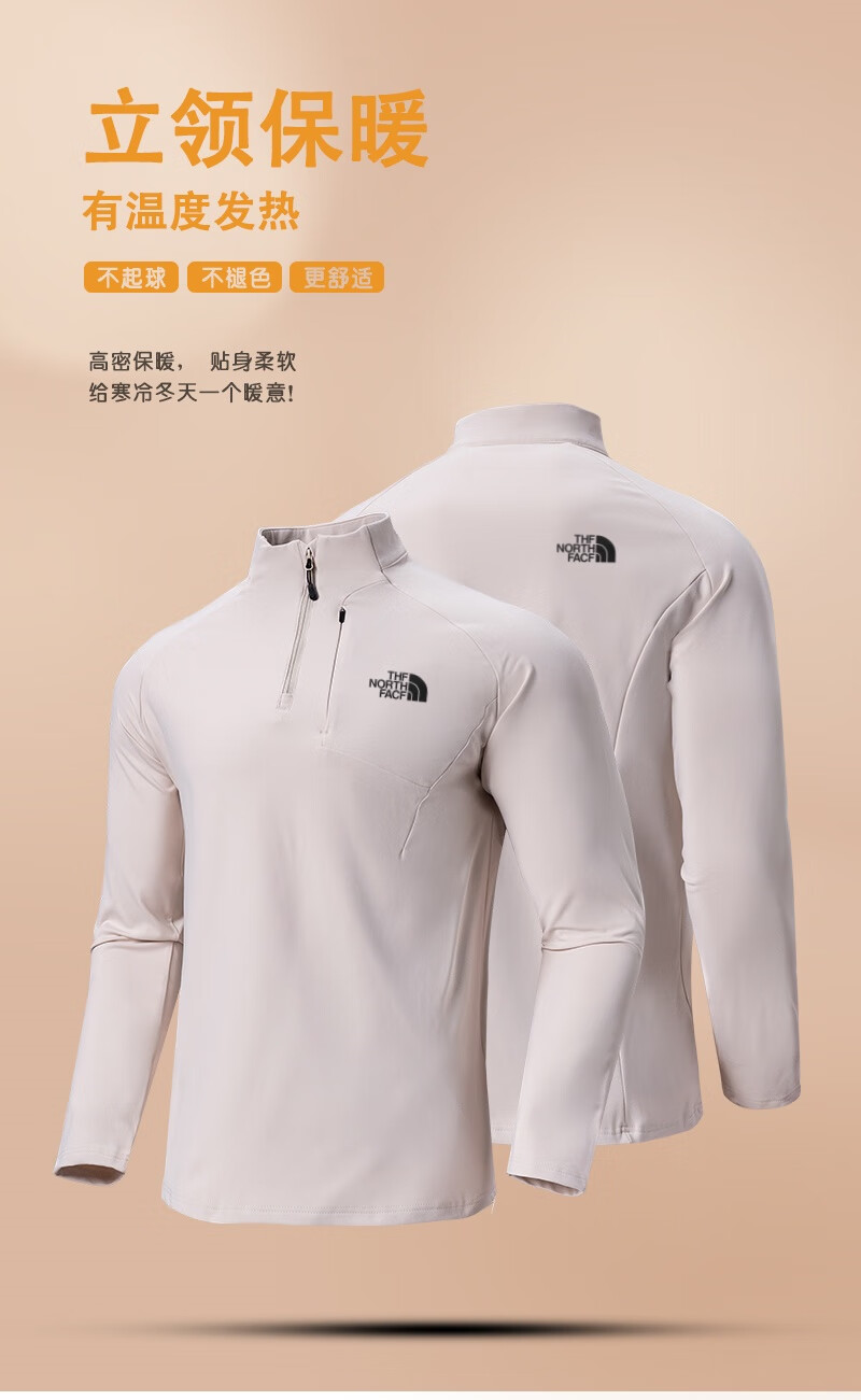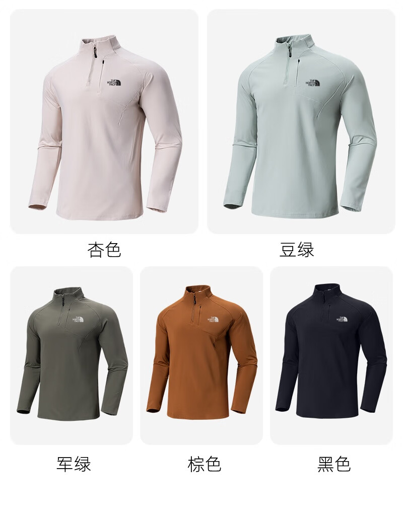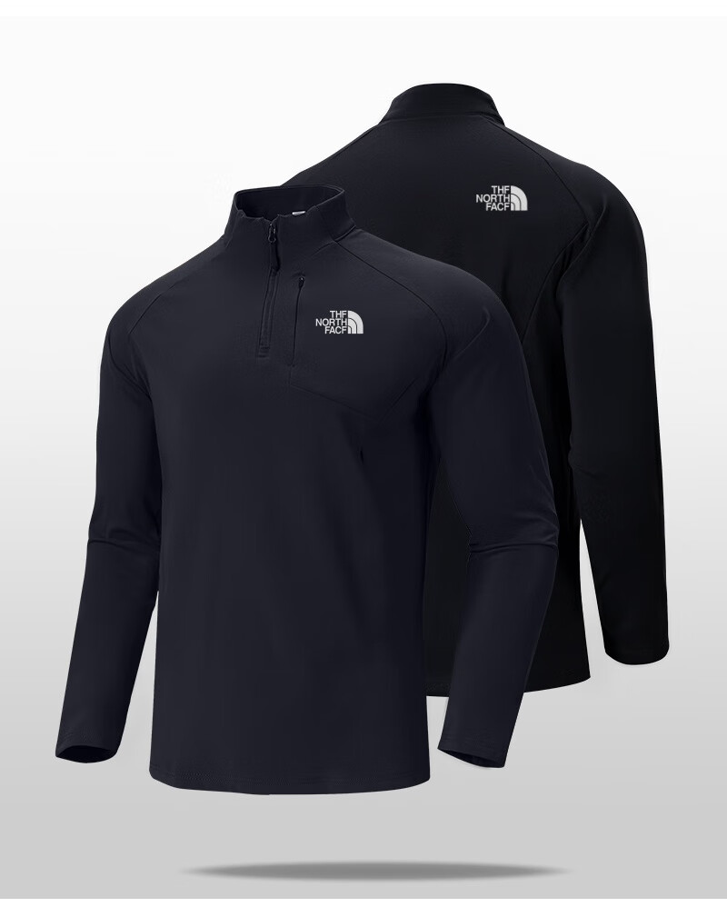 北面羽王半拉链男士长袖t恤春秋季上衣休闲立领卫衣户外跑步健身运动外套 88120 黑色【1:1正标发货】 XL 建议体重130-145斤