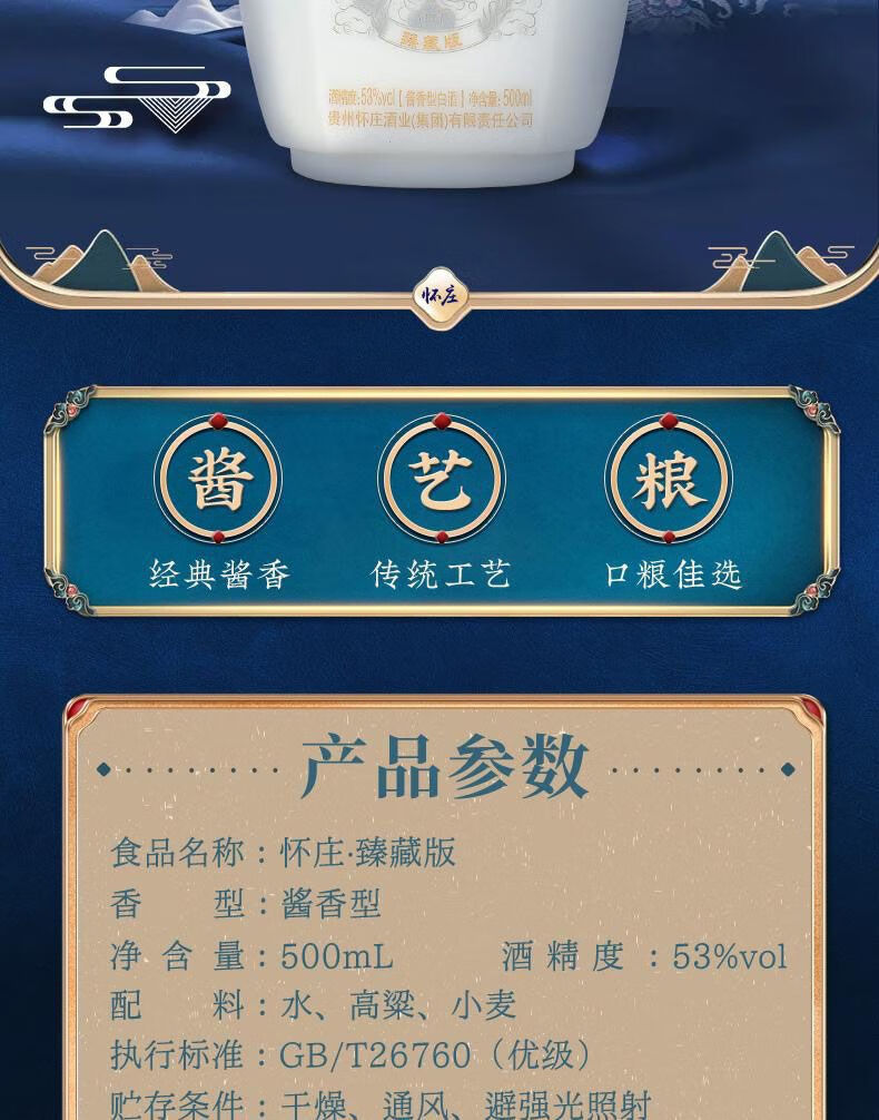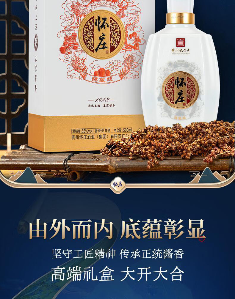 怀庄1983酒 53度 酱香型 固态法白酒 纯粮食酿造 整箱装酒水(商务送礼) 53%vol 500mL 6瓶 金镶玉