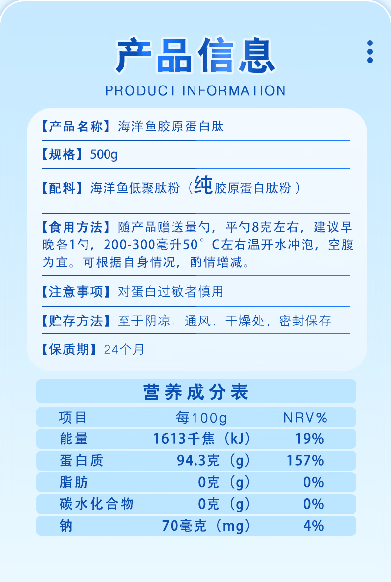 雪莹元鱼胶原蛋白肽粉500g小分子肽水解抗糖化深海鳕鱼皮提取美白饮营养 鳕鱼胶原蛋白肽 500g*1桶