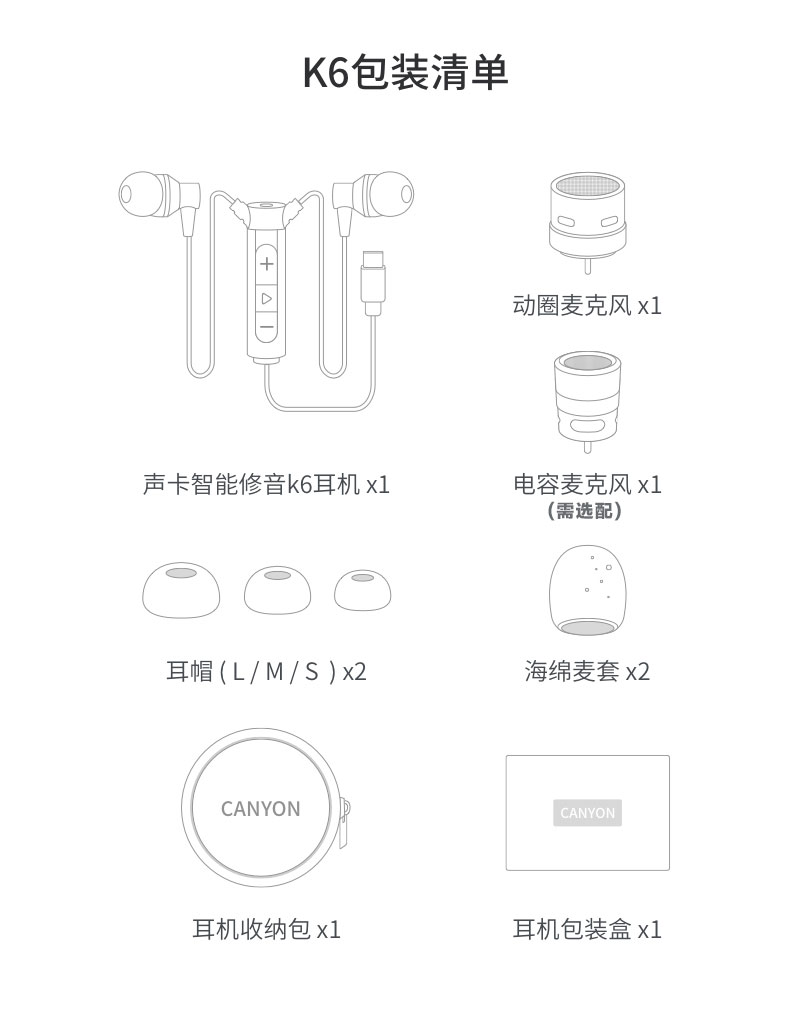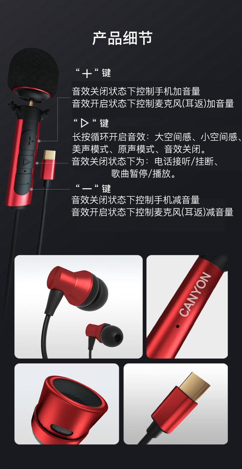 大峡谷(CANYON)K6声卡K歌耳机有线高音质专业耳麦带麦克风直播唱歌录歌配音专用耳返适用手机电脑笔记本平板 【数字TypeC扁口】动圈麦+电容麦