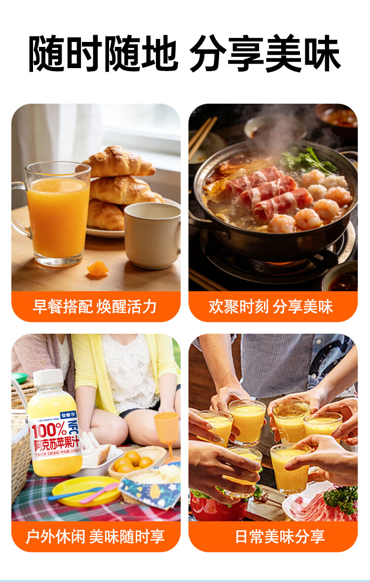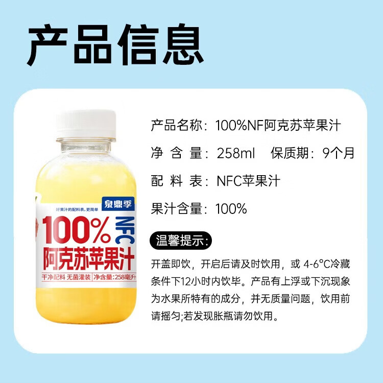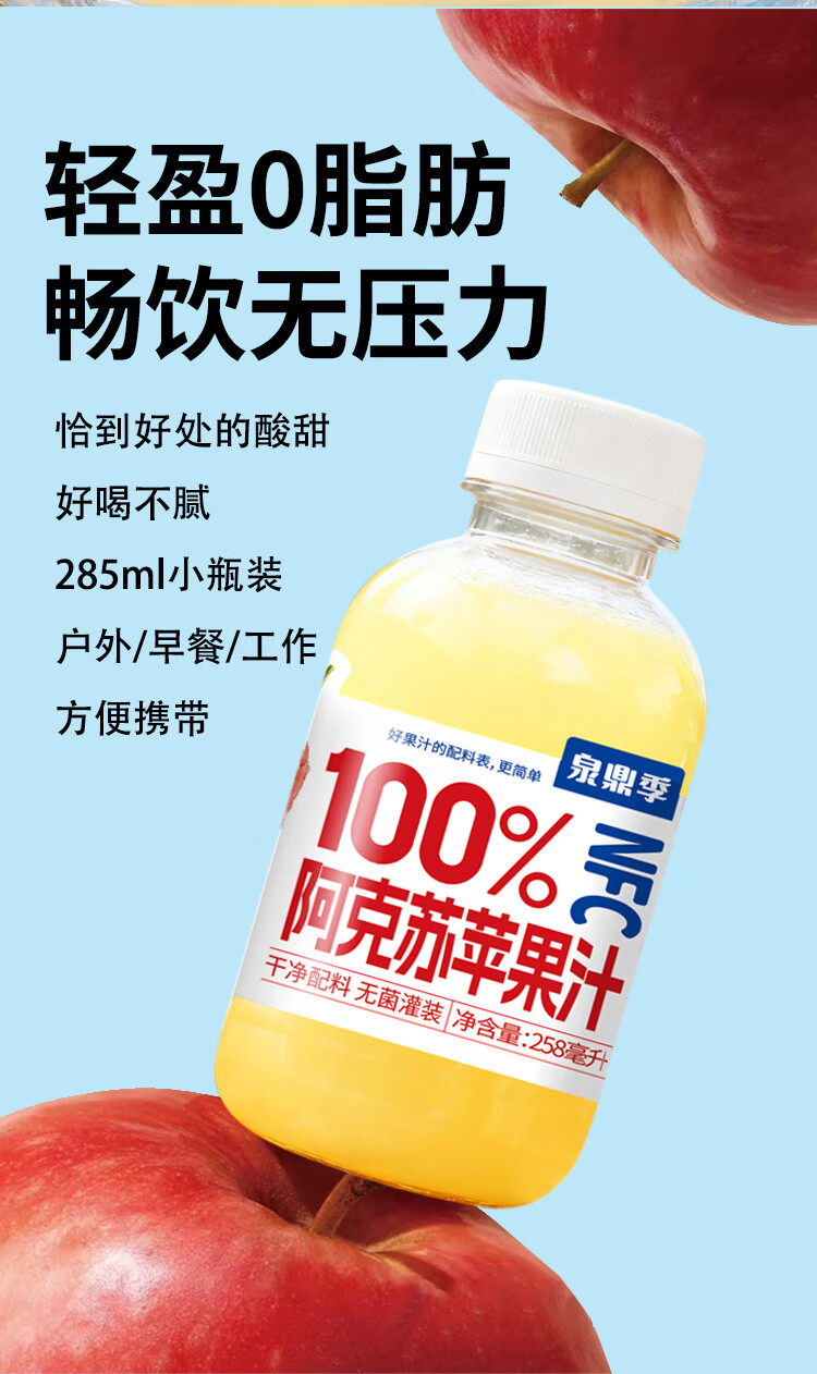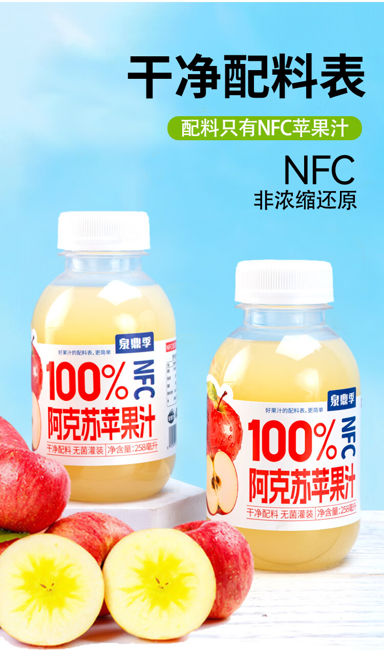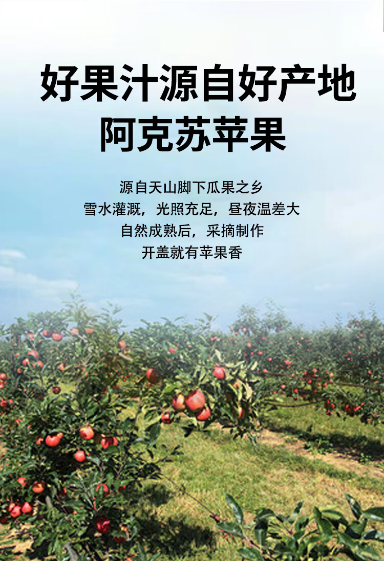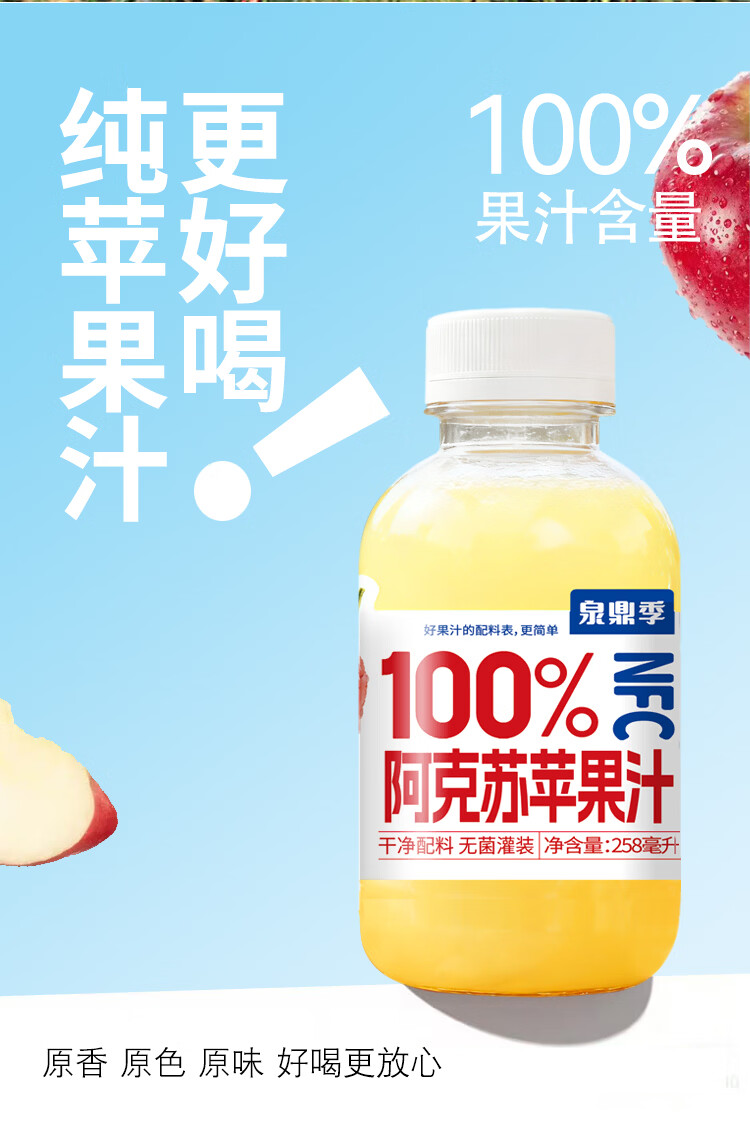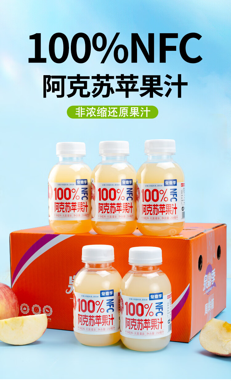 自然道夏季饮品果汁饮料 NFC100%阿克苏苹果汁258ml*6瓶