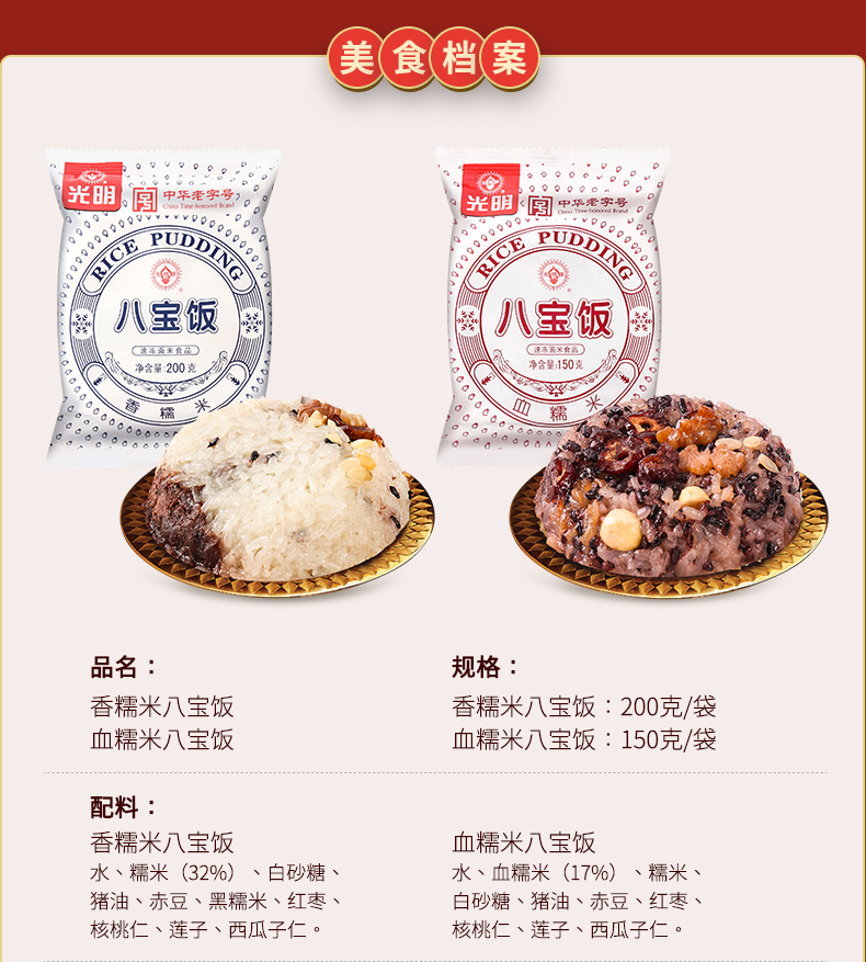 光明牌糯米八宝饭早餐上海老字号风味特产年货早点方便速食半成品食品 香糯米八宝饭200g*10袋