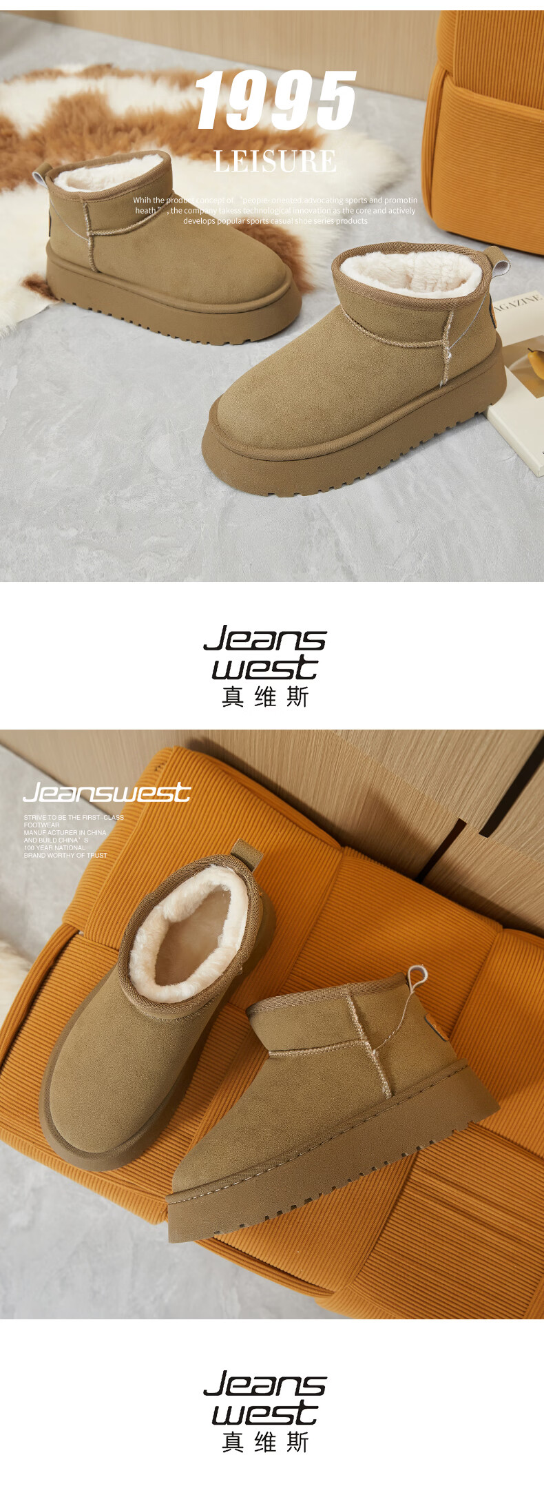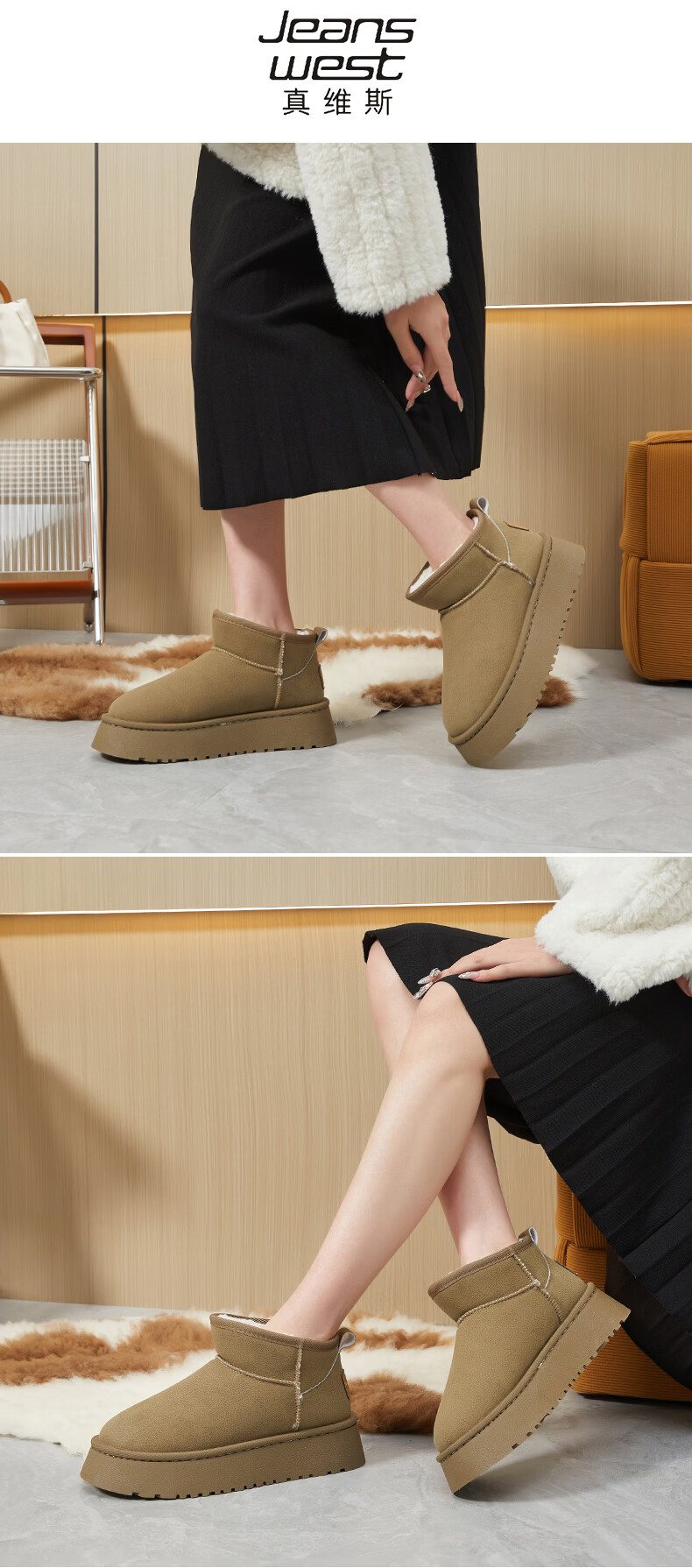 真维斯(Jeanswest)女鞋雪地靴女冬季新款加绒保暖棉鞋短靴 灰绿色 40