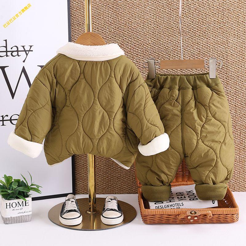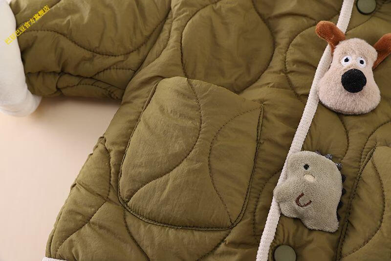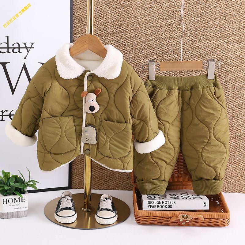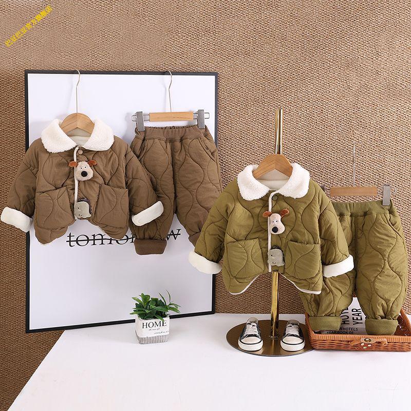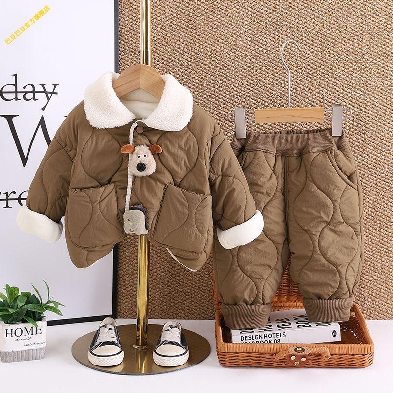 G.duck小黄鸭婴儿衣服2025冬季卡通加厚保暖棉衣套装外出服男女宝宝秋冬 深棕色 加绒夹棉双层棉衣棉裤套装 加厚 90 1-2岁 体重21-25
