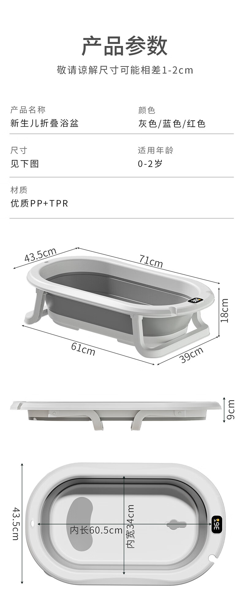 菲尔洁宠物可折叠浴盆狗狗小型犬专用浴缸猫咪浴桶猫砂盆泰迪柯基洗澡盆 灰色折叠浴盆 尺寸71*43.5*18厘米