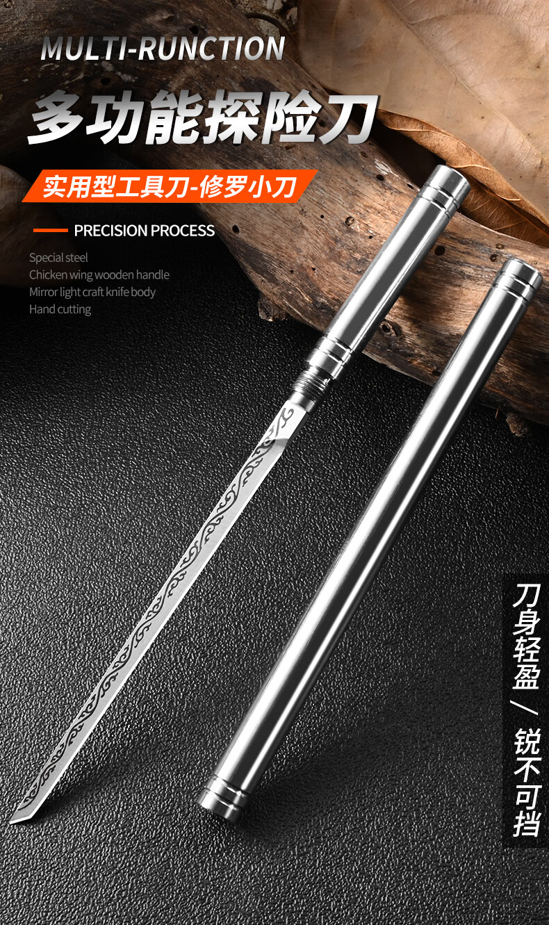 兴刃多功能小刀锋利高硬度户外直刀不锈钢水果刀家用野外生存露营刀具 霸王棍小刀