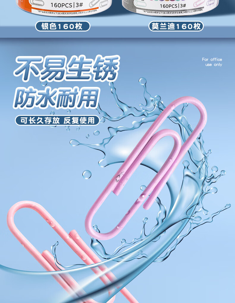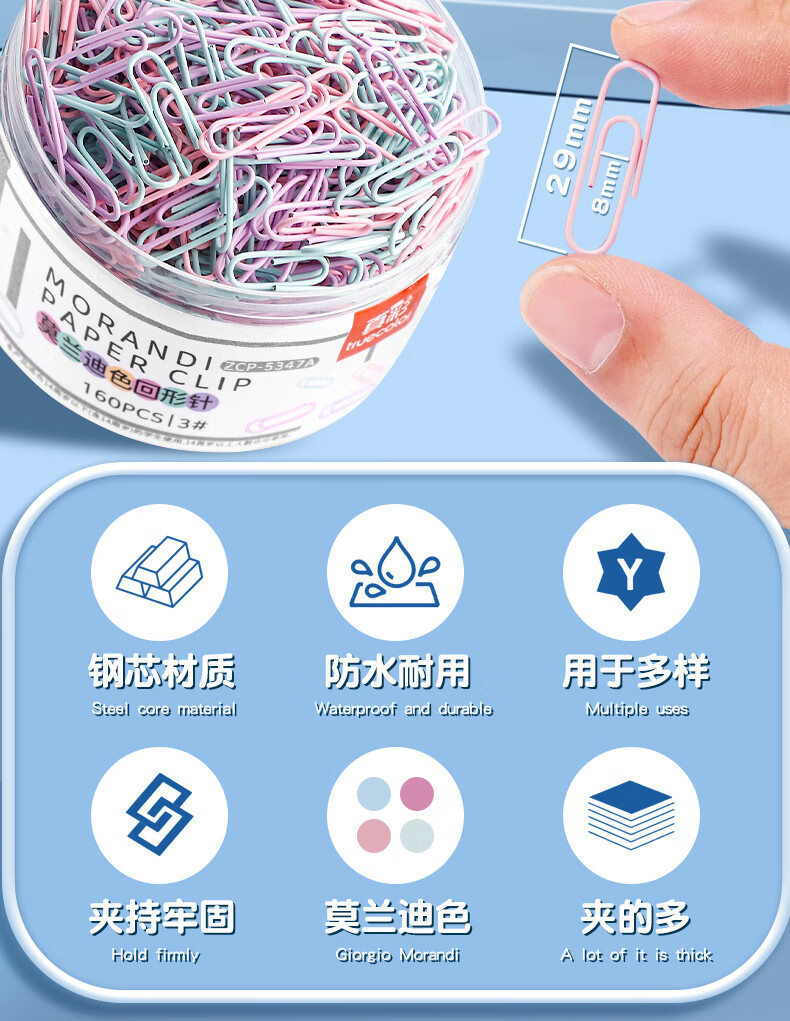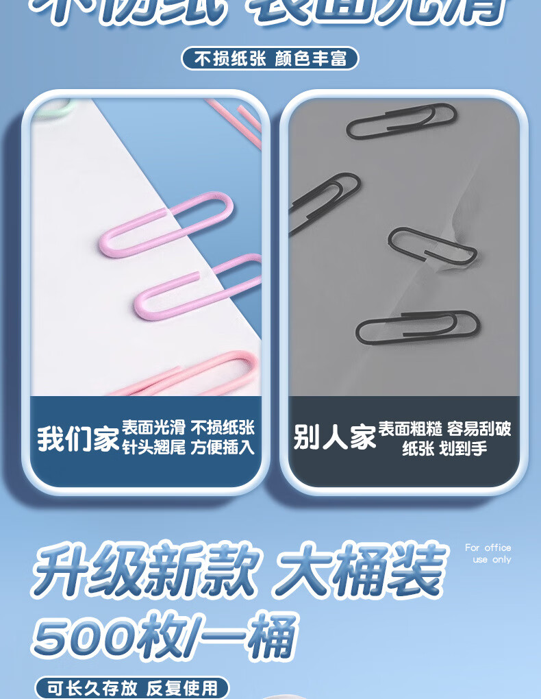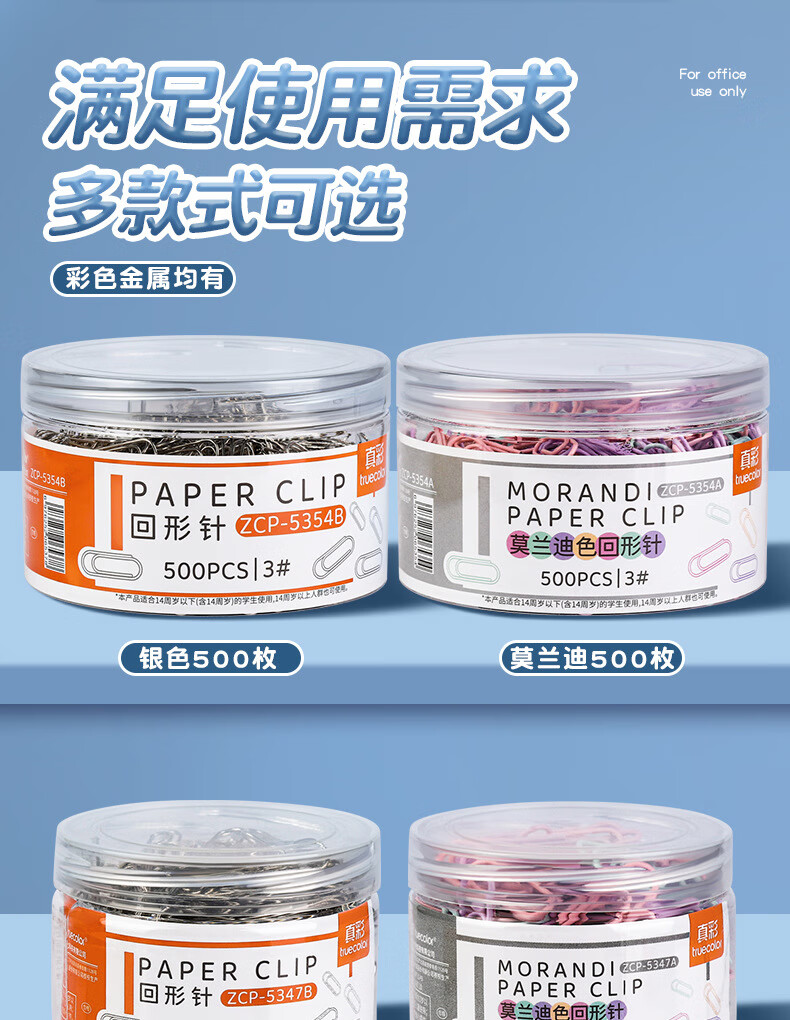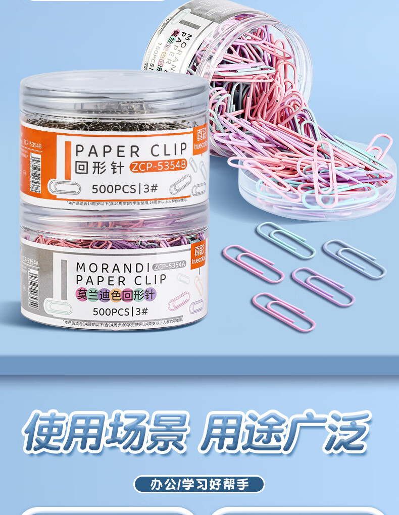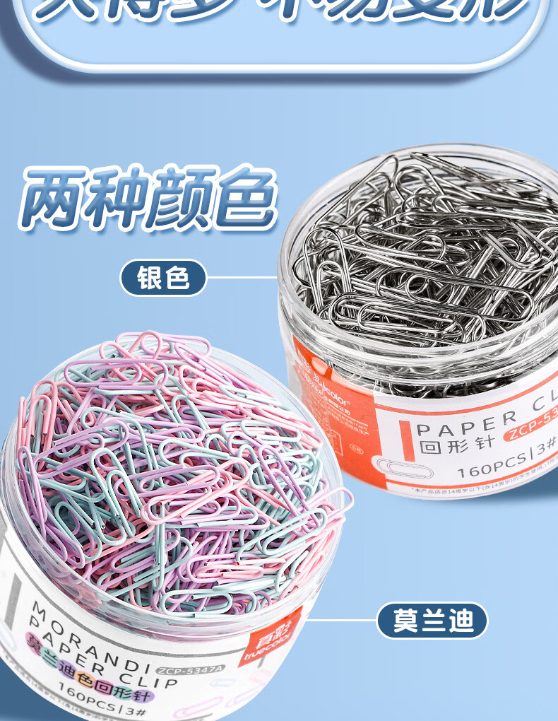 真彩【严选直发】1000枚彩色回形针办公用品曲别针文件书签回型针收纳盒文具不锈钢u型固定回纹回行针 【升级材质/大桶装】银色款/500枚/1桶