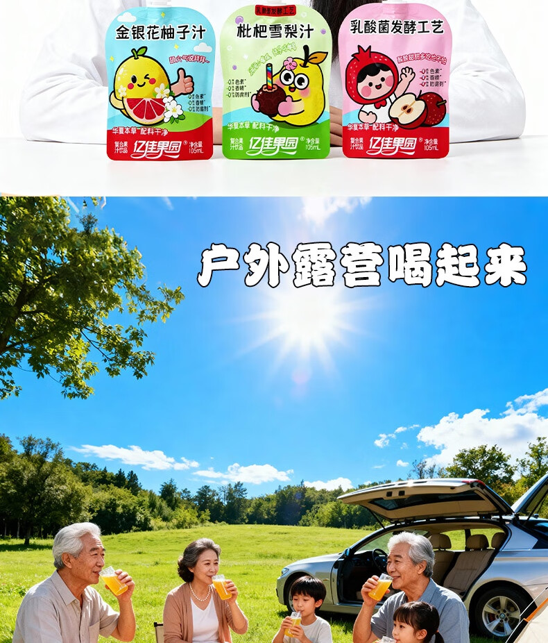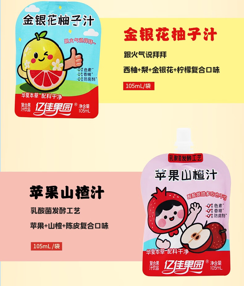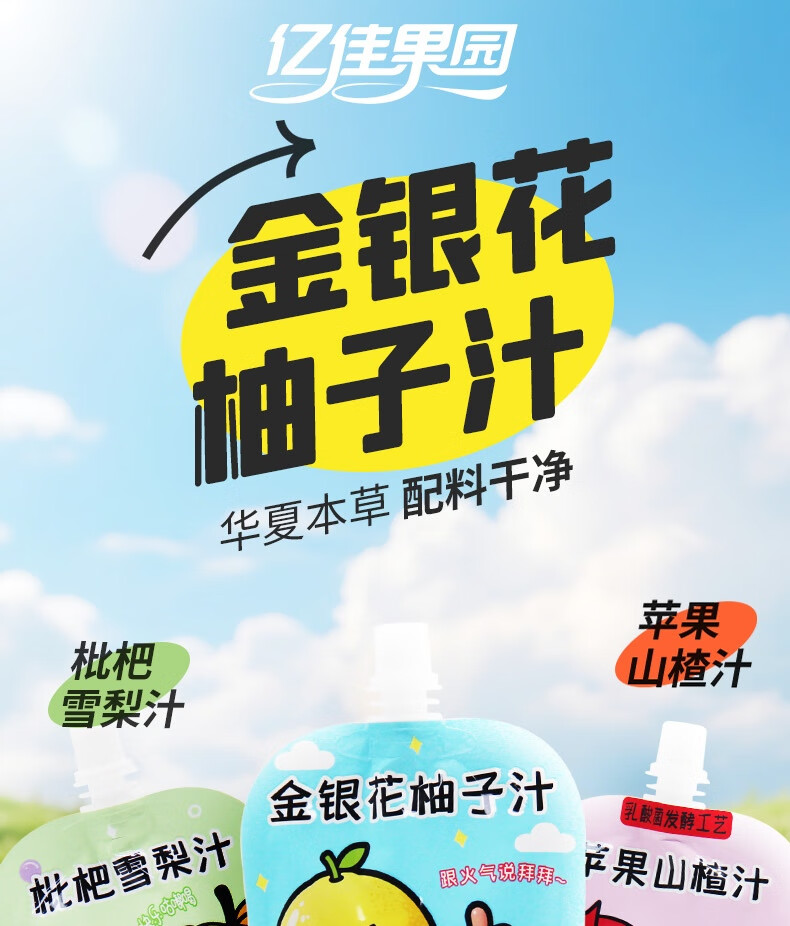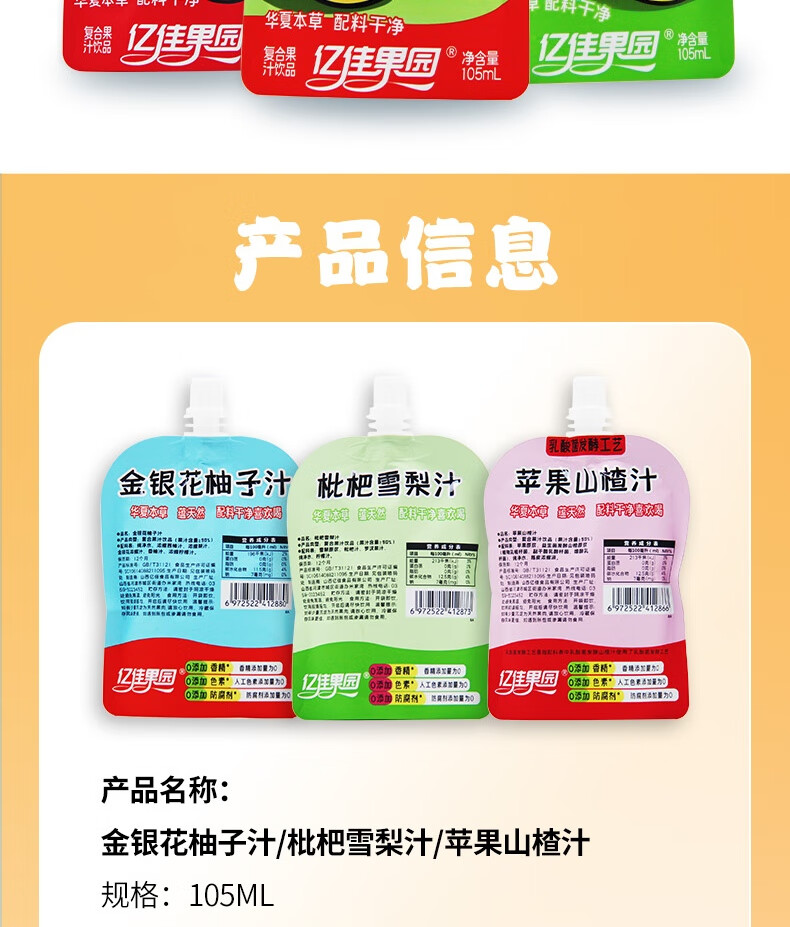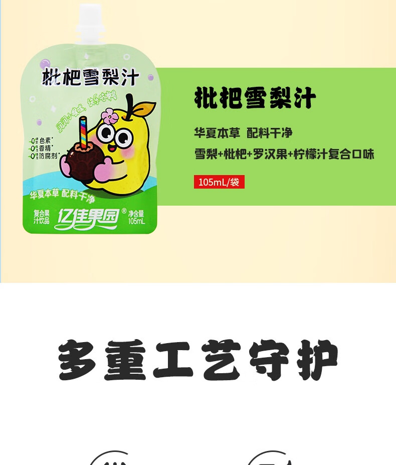 亿佳果园枇杷雪梨汁金银花柚子汁苹果山楂汁整箱儿童零食果汁饮料 枇杷雪梨汁105mL*13袋