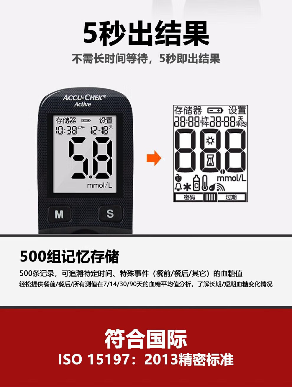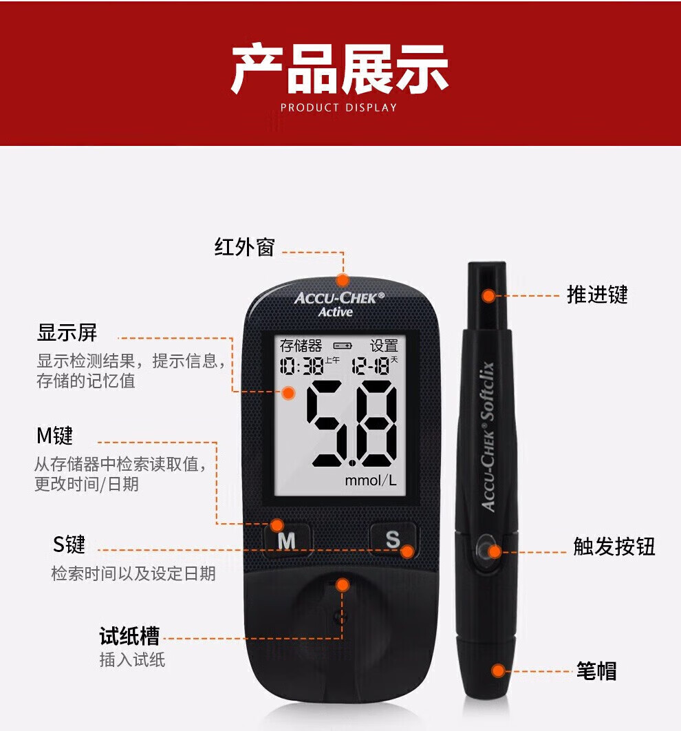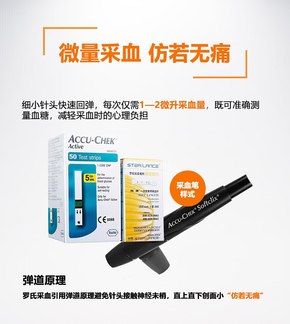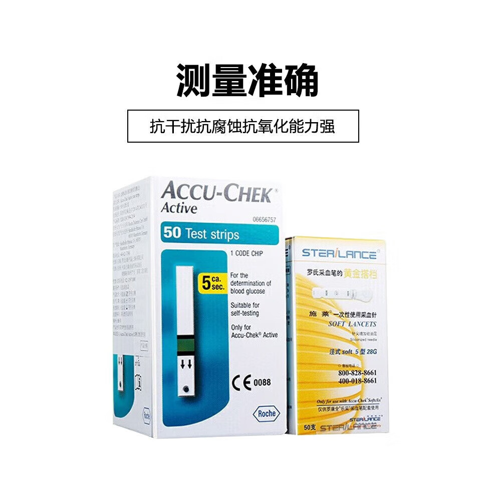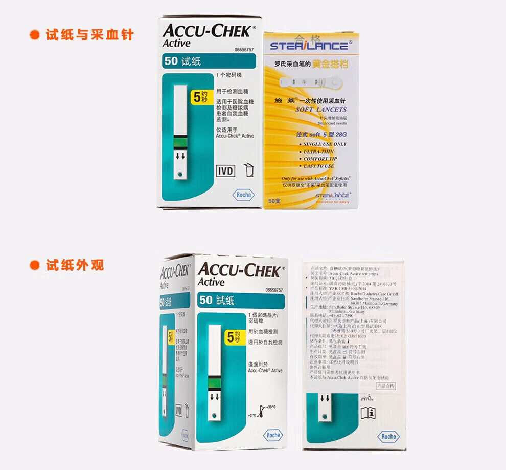 罗氏活力血糖试纸50片Active原装进口血糖纸活力型原装糖尿病50片试纸+ 4盒施莱针