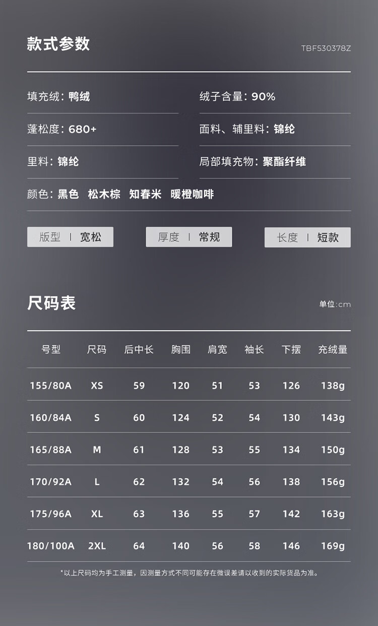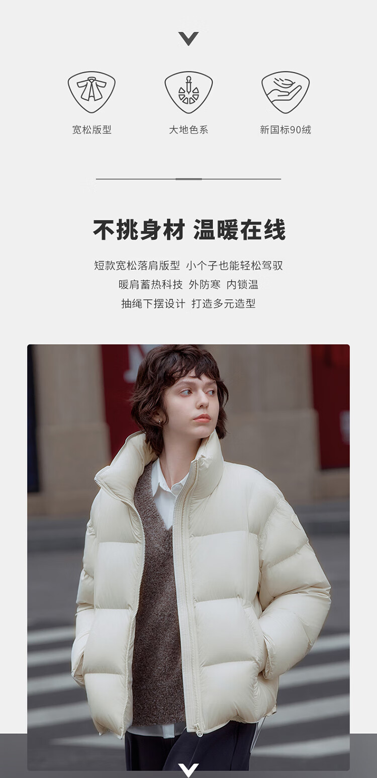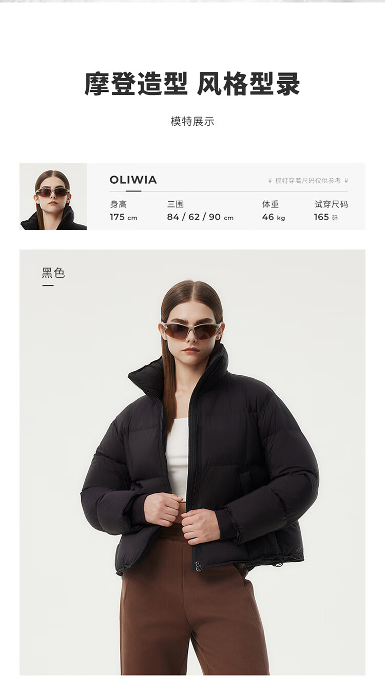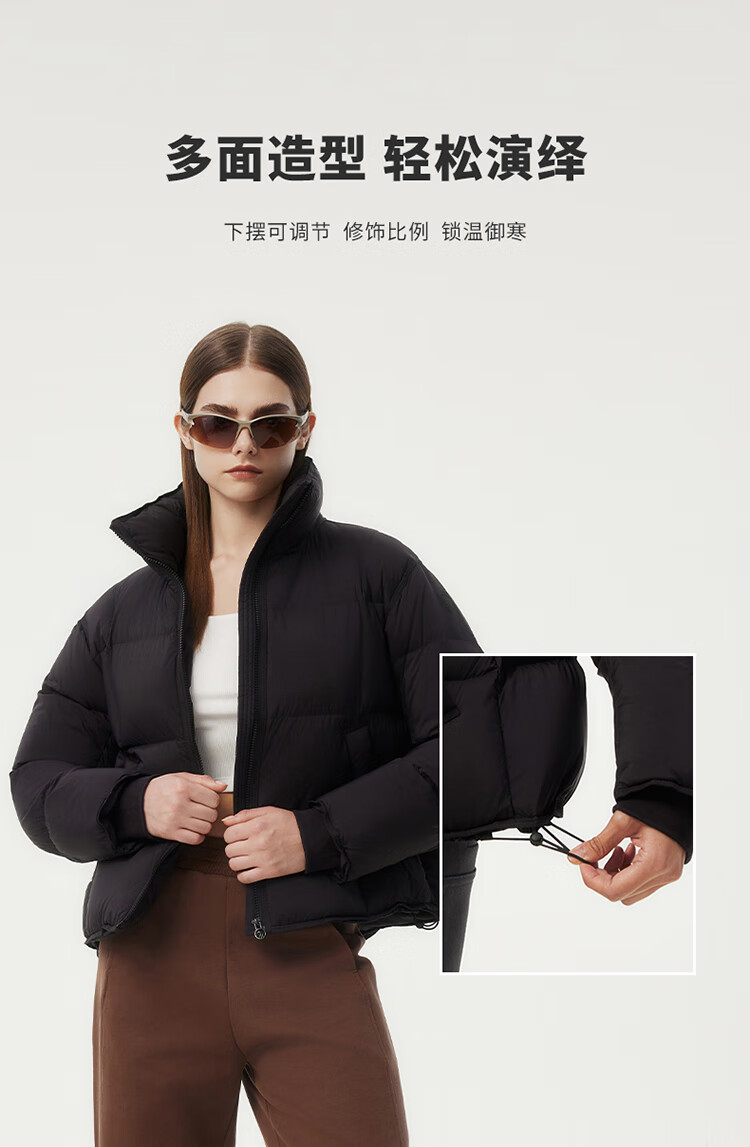 坦博尔泡芙小个子穿搭羽绒服女短款立领宽松保暖外套TBF530378Z 黑色 M (165)