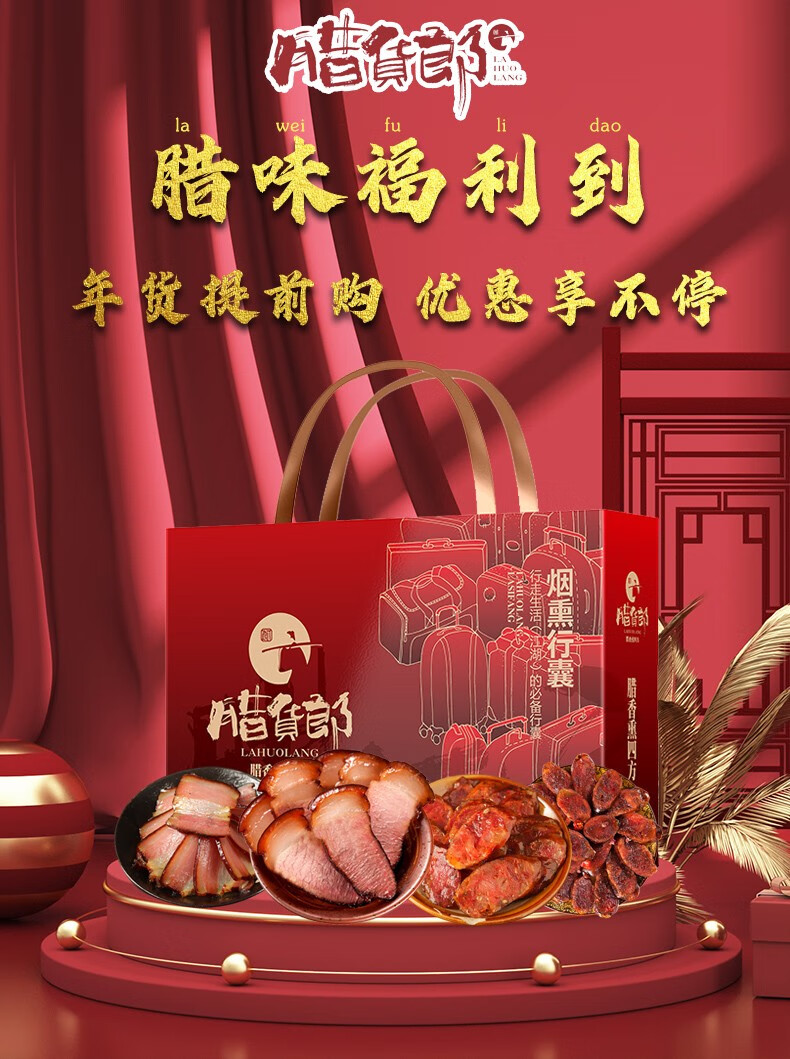腊货郎四川手工腊肠 香肠成都特产腊味肉食礼盒7分瘦腊味熟食 加热即食 2000g【团圆中国节礼盒】 地道四川 送礼优选