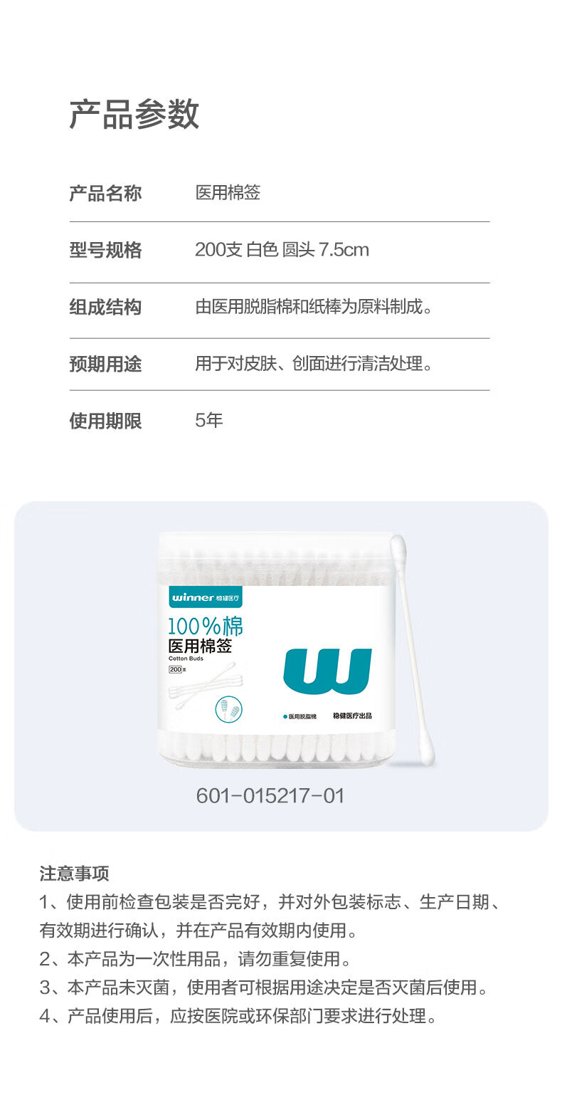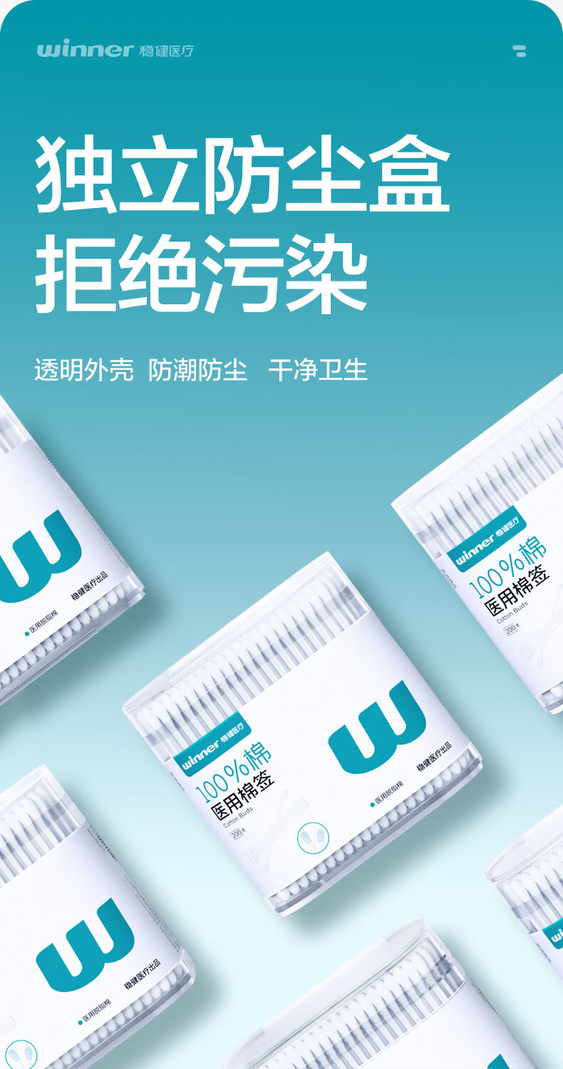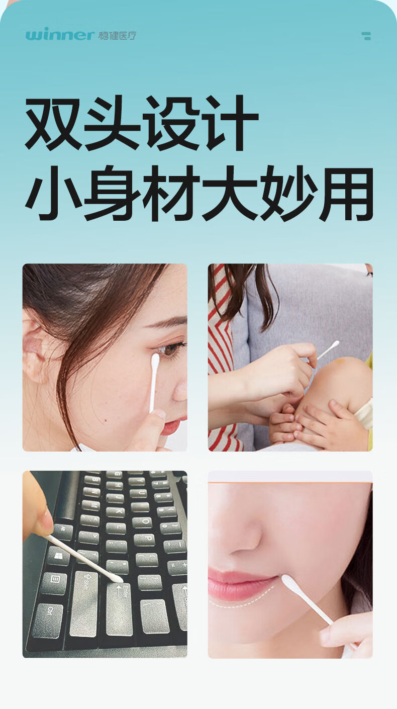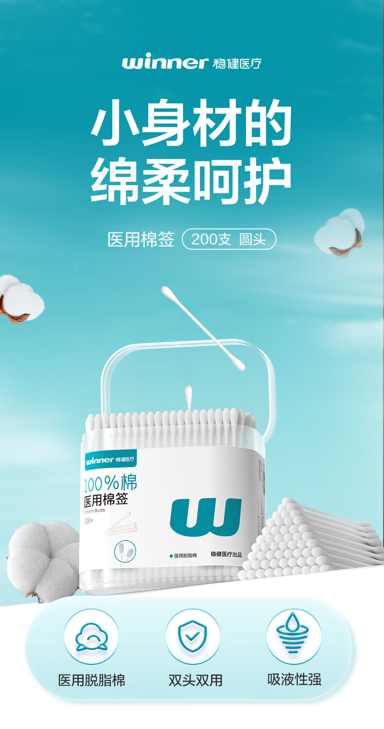稳健医用棉签双头化妆清洁护理伤口家用一次性双头美容卸日用型200支
