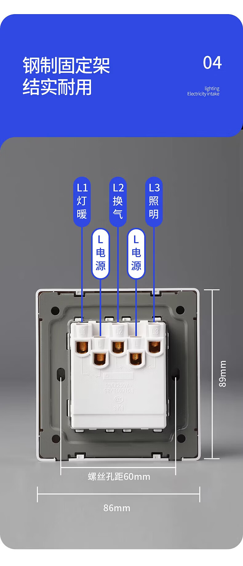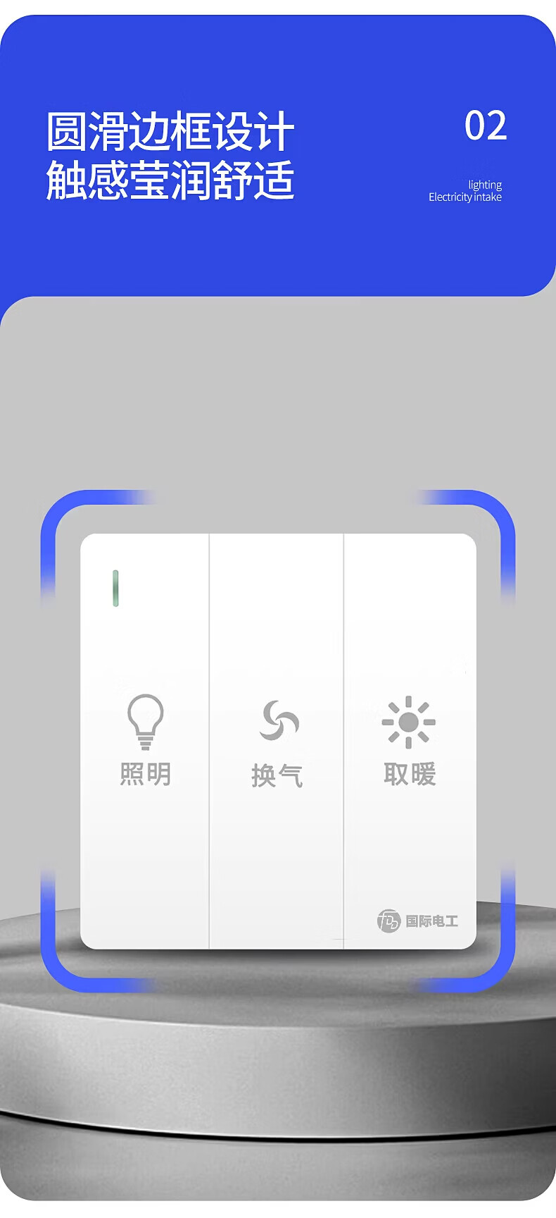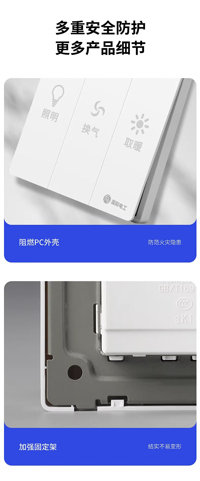 国际电工(FDD)大板三开浴霸开关86型暗装通用浴室卫生间照明一体取暖开关面板 三开浴霸开关-白色