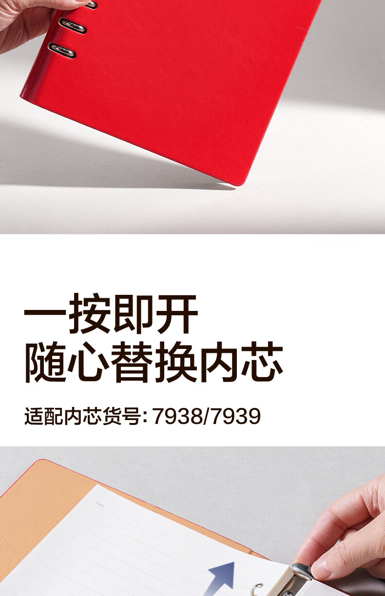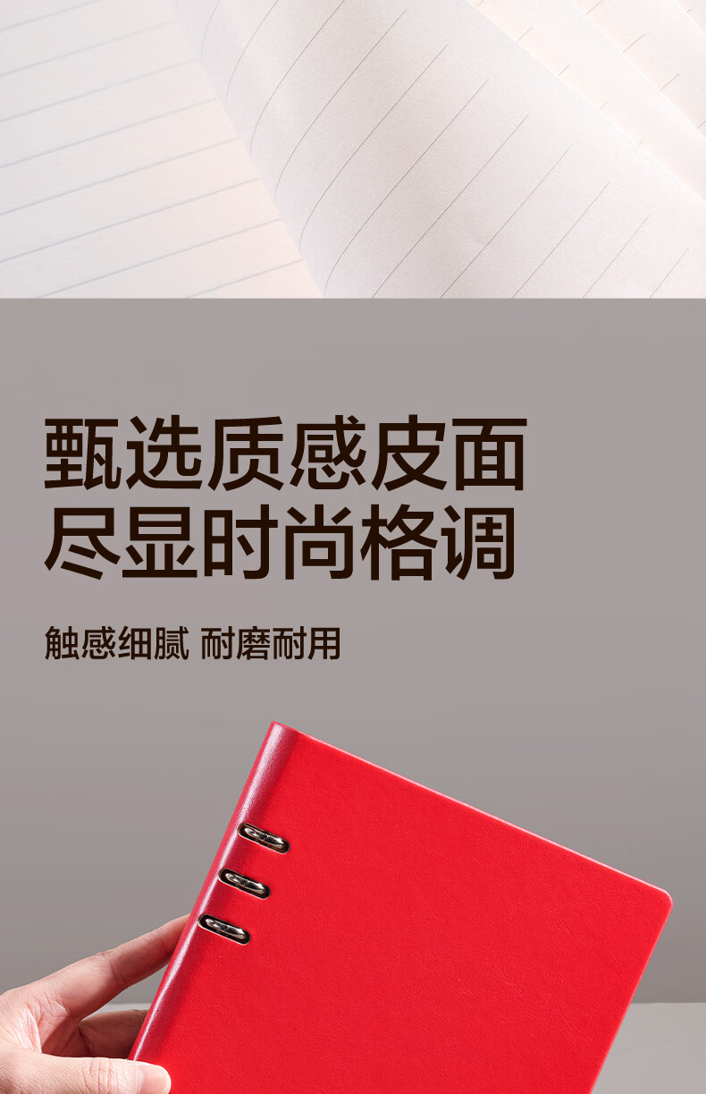 得力(deli)活页笔记本子皮面本办公记事本可换替芯会议记录本A5/80张 BP160红色