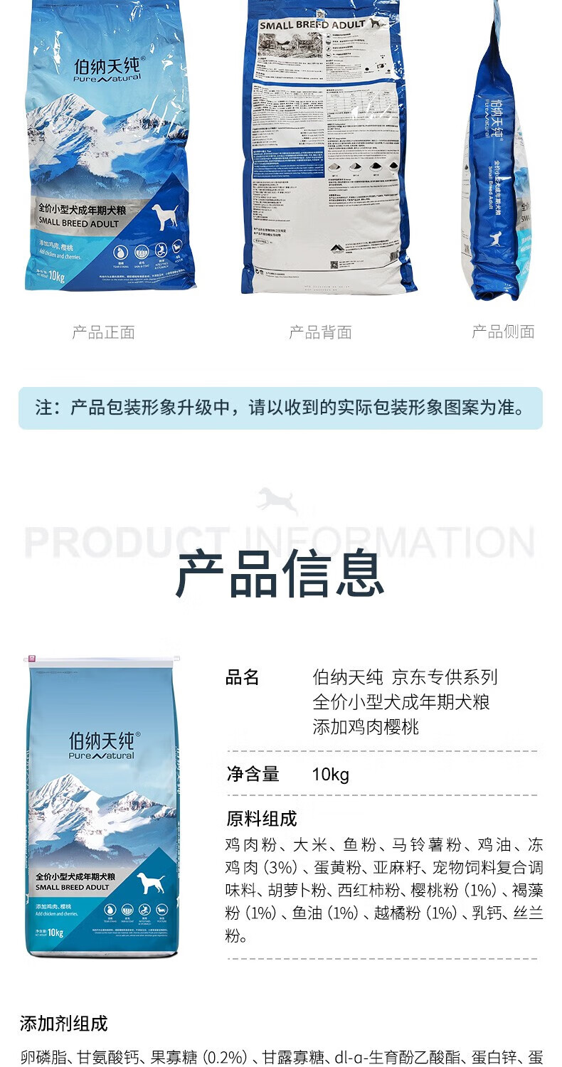 伯纳天纯经典优选狗粮专供款天然粮鸡肉樱桃味小型成犬比熊博美泪痕 小型犬成年犬粮10kg