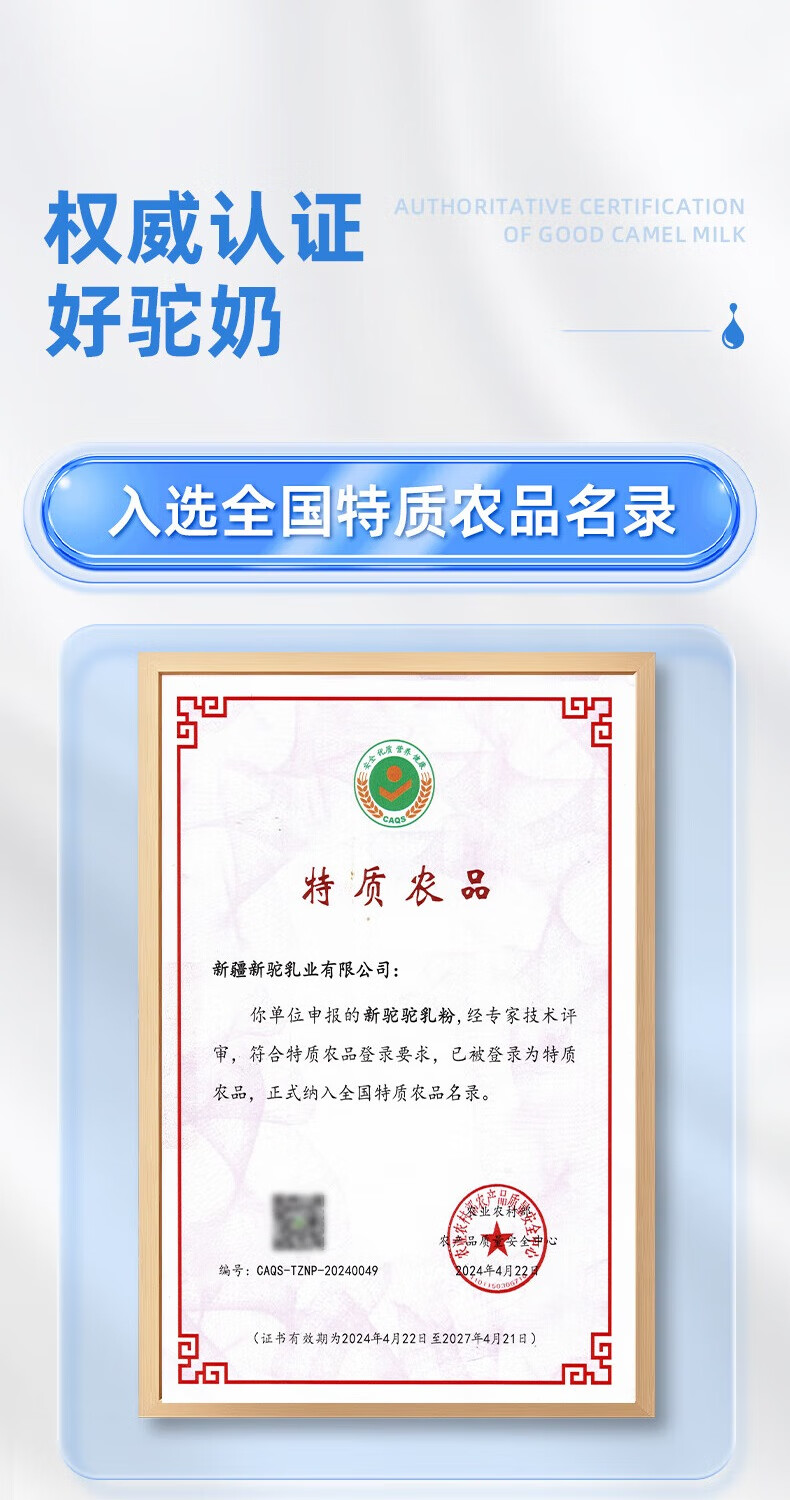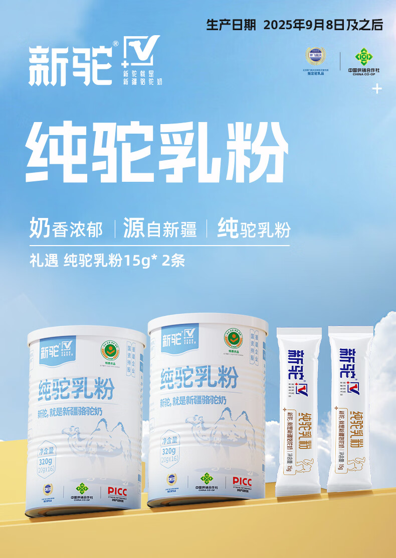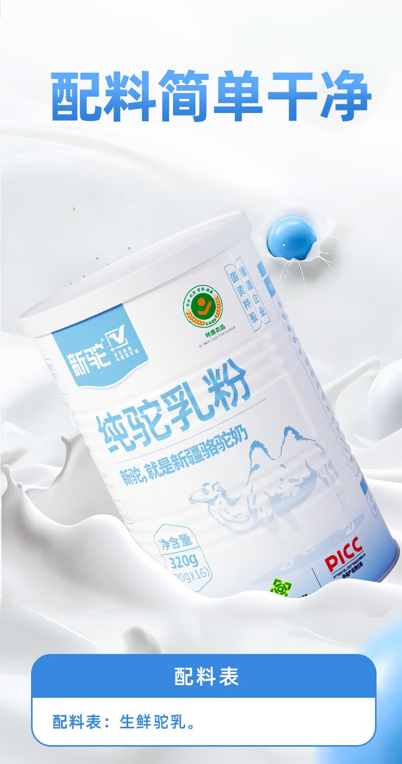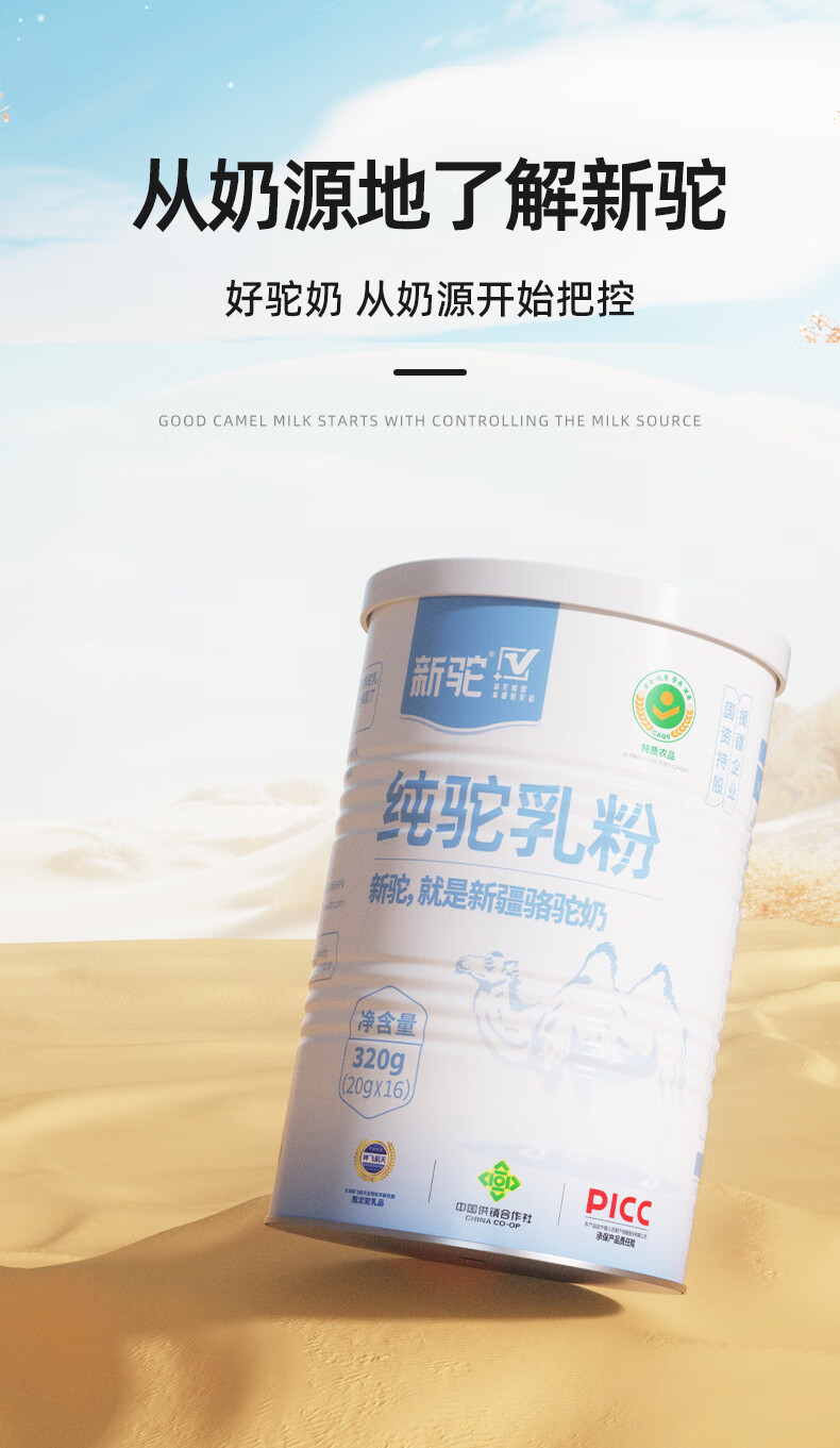 新驼新疆【纯骆驼奶粉】正宗驼乳粉中老年营养品年货节礼品送礼 320g*2罐
