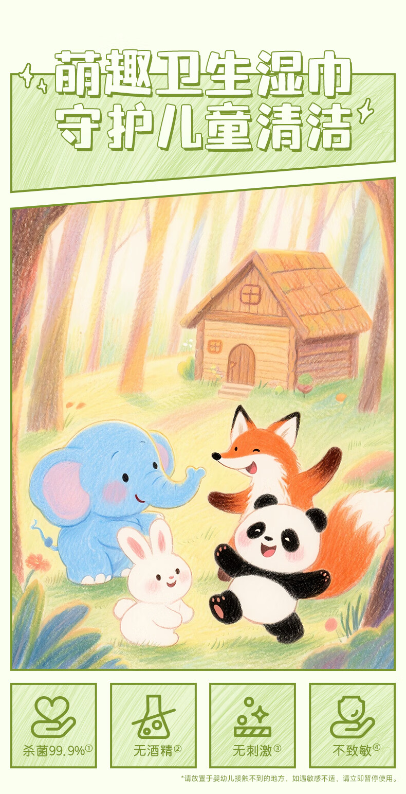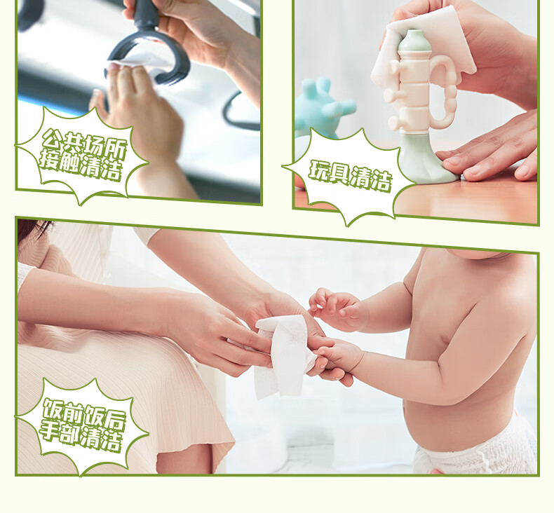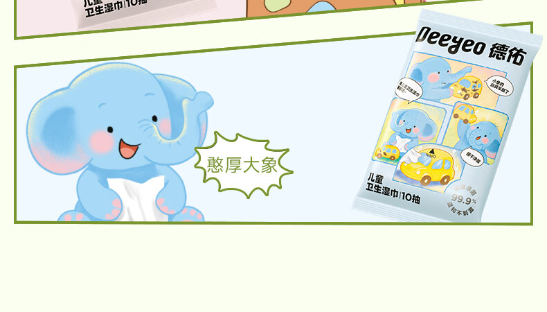 【精选百货】小象宝宝湿巾手口屁湿巾纸家用大包专用儿童手口专用 婴儿湿巾-绿色裝包装随机 40抽 1包