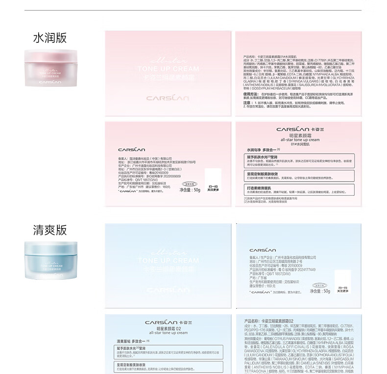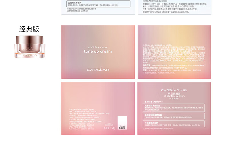 卡姿兰(Carslan)明星素颜霜懒人面霜妆前补水保湿提亮遮瑕裸妆#经典版50g新年礼物