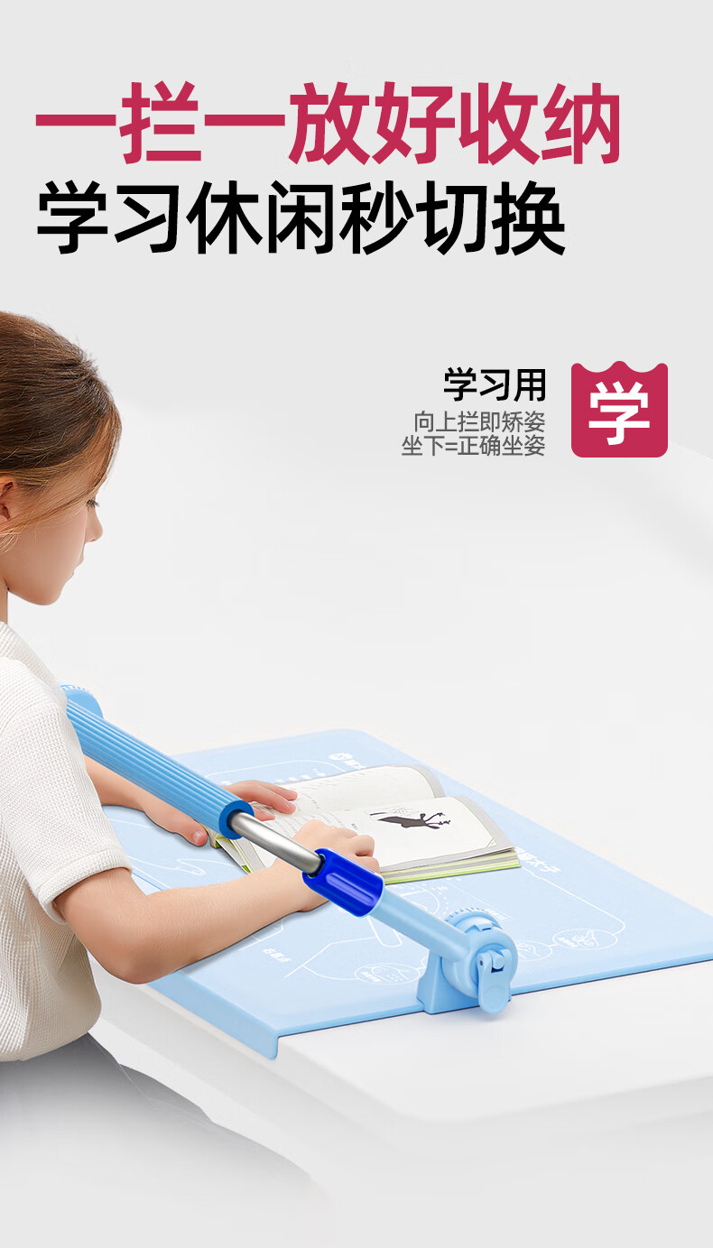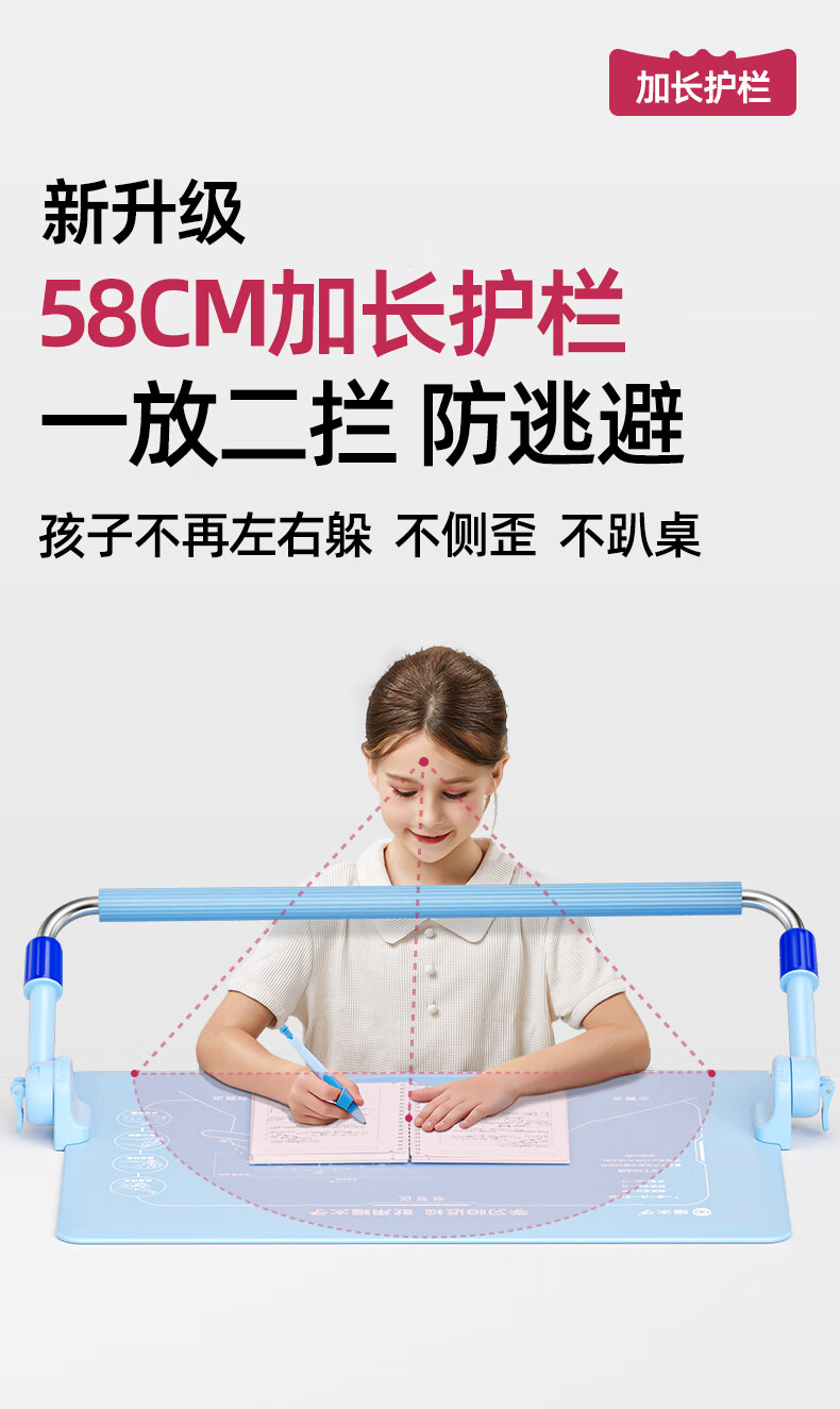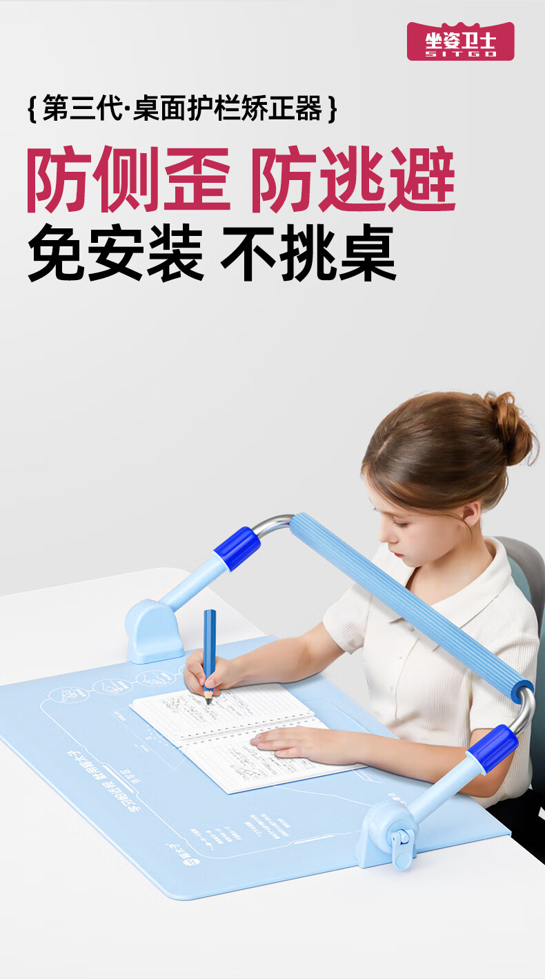 猫太子护栏坐姿矫正器儿童防低头写字矫正器小学生保护近视弯腰驼背幼儿姿势学习纠正坐读写桌面款神器蓝