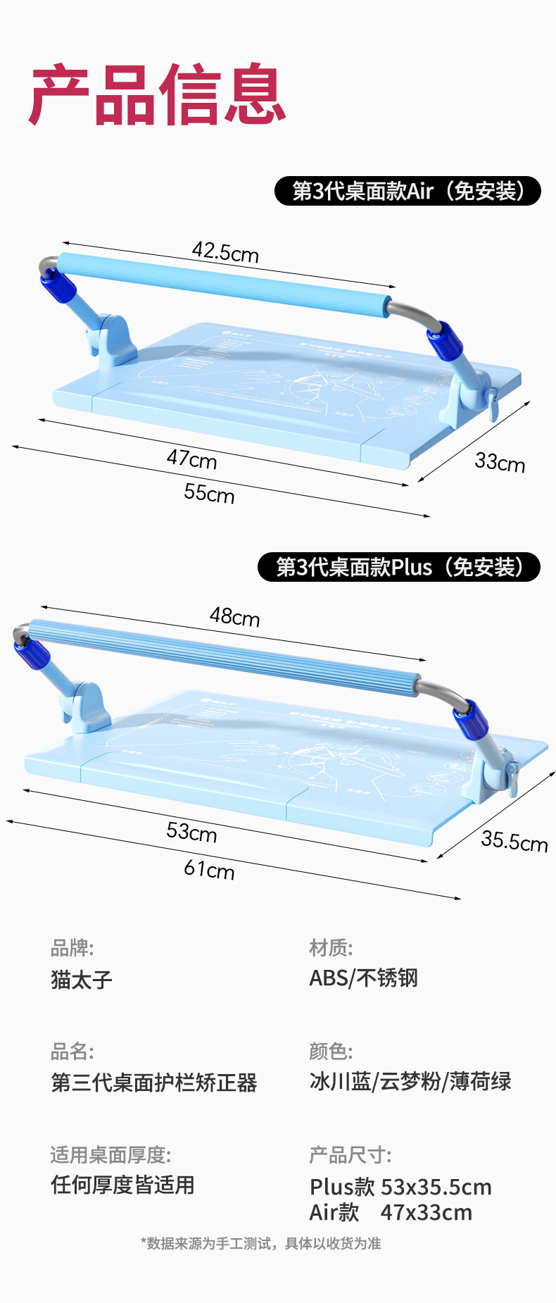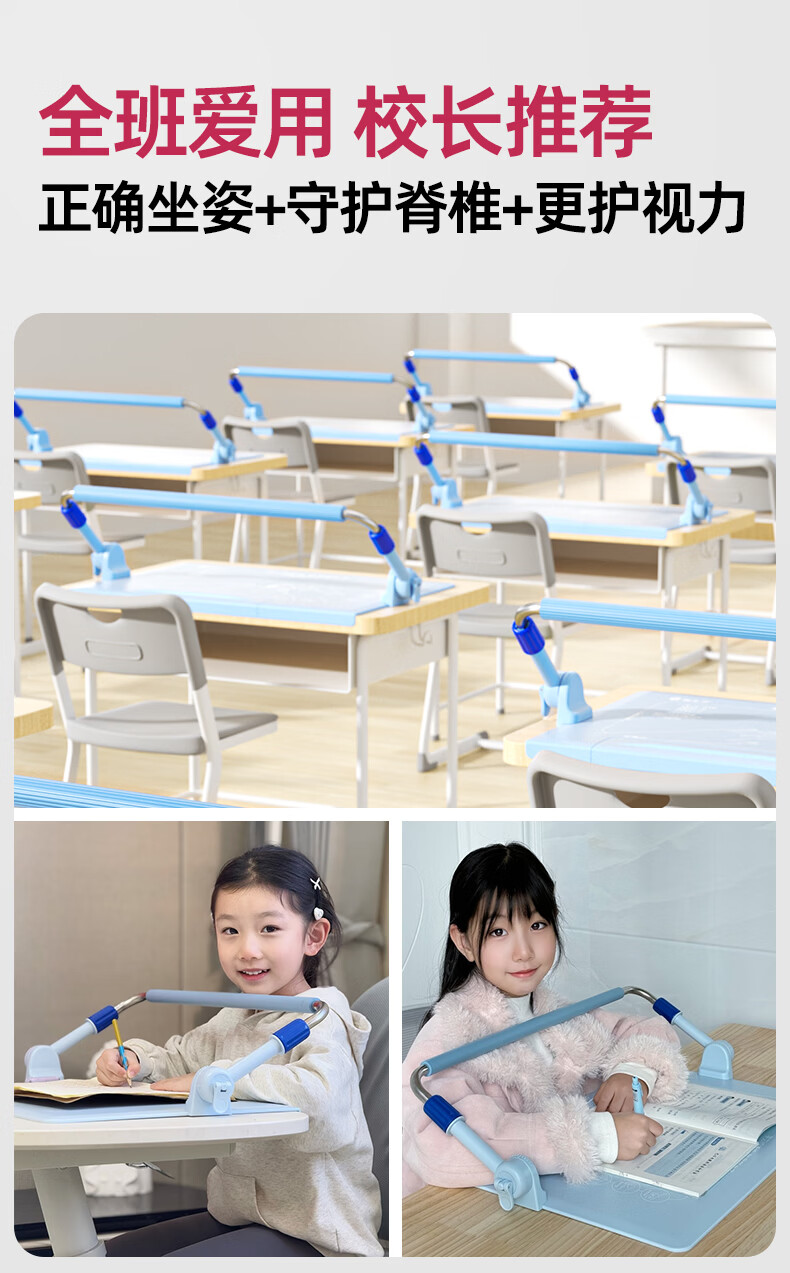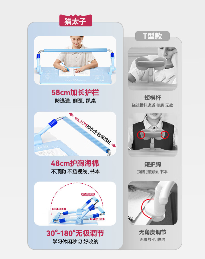 猫太子护栏坐姿矫正器儿童防低头写字矫正器小学生保护近视弯腰驼背幼儿姿势学习纠正坐读写桌面款神器蓝