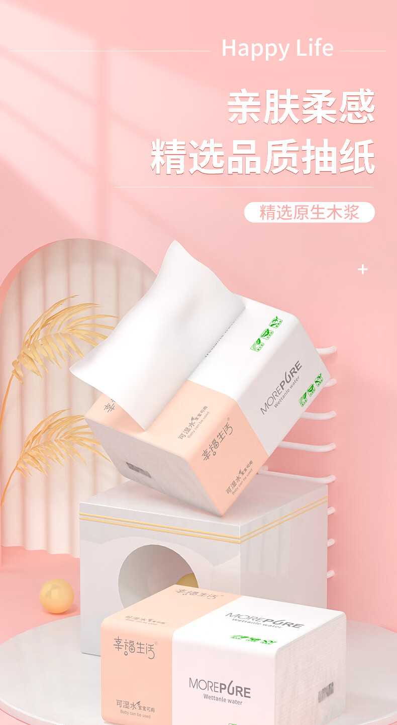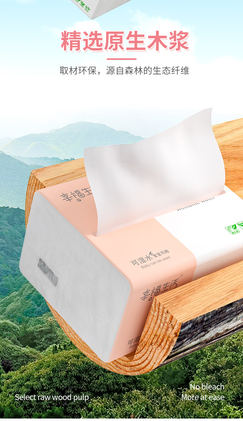 幸福生活抽纸卫生纸4层 300张*30大包整箱批发家用纸巾可湿水餐巾纸面巾纸