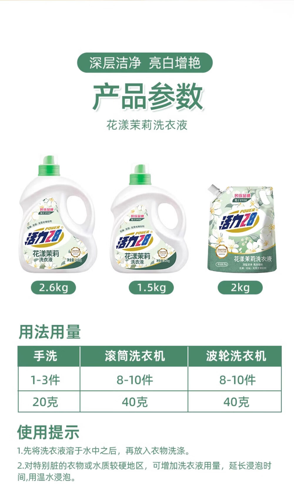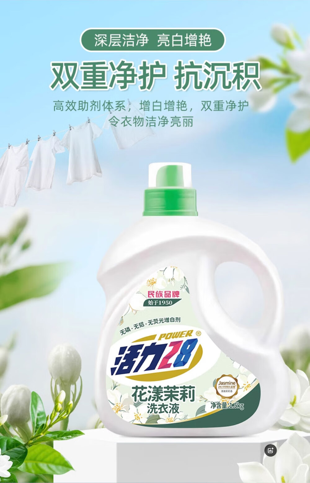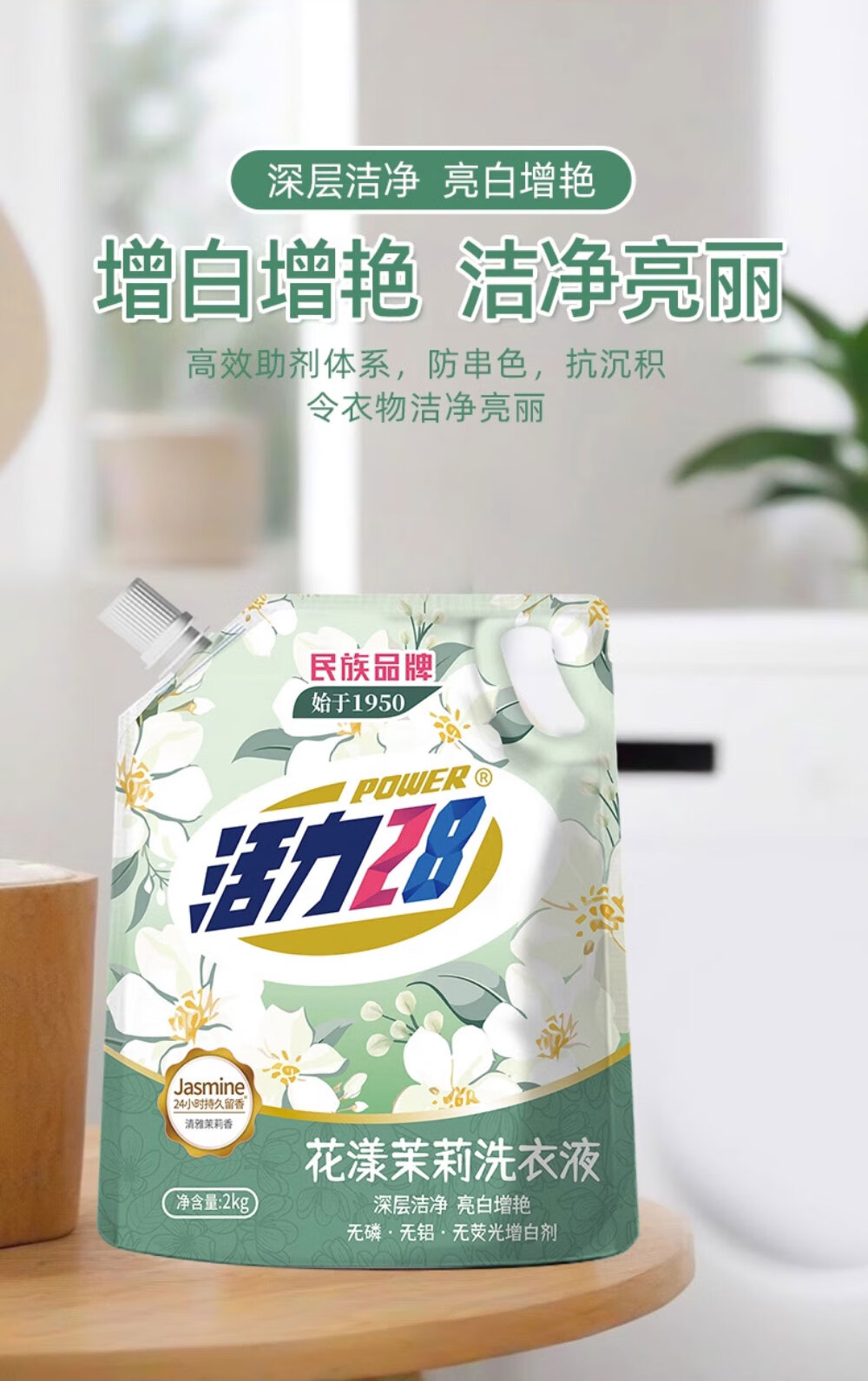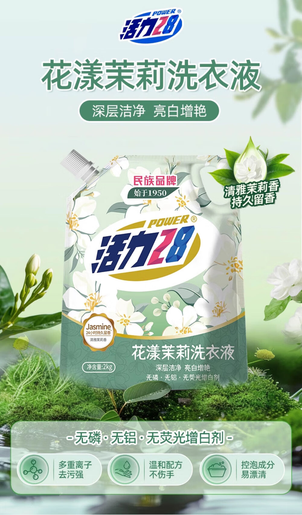 活力28花漾茉莉洗衣液4斤/袋多效洁净粒子深度清洁持久留香无磷