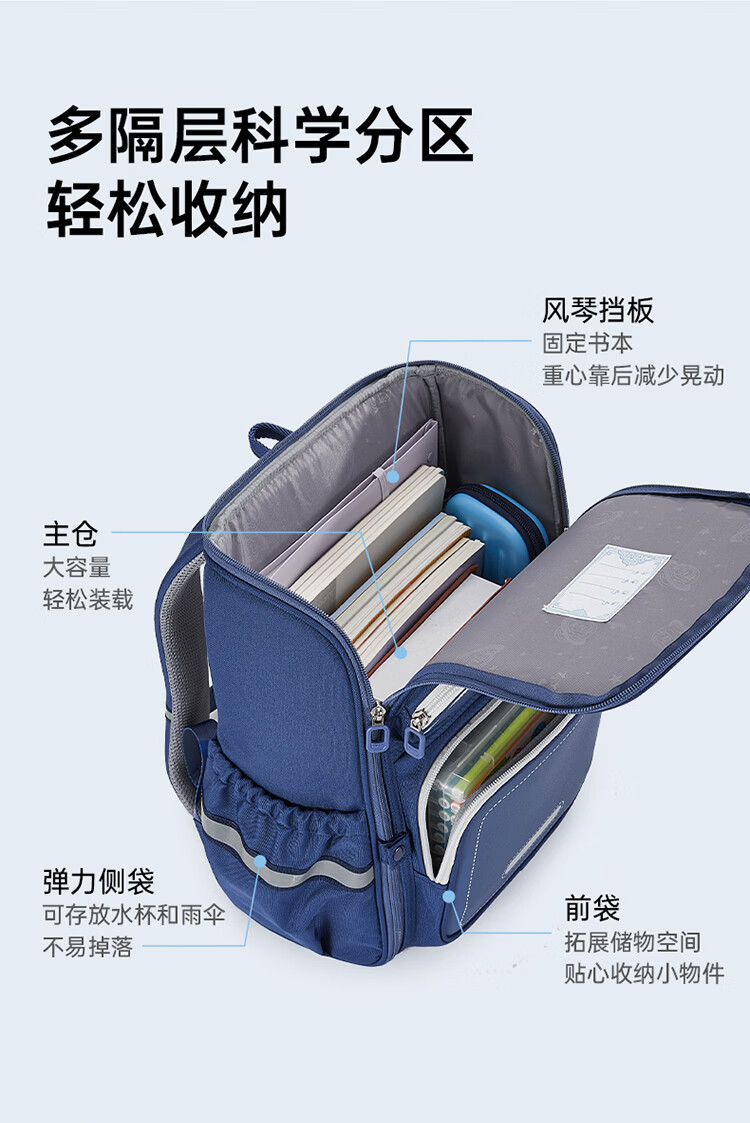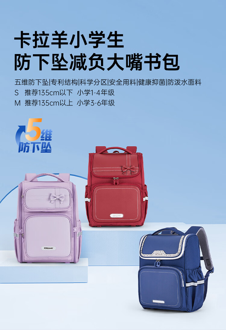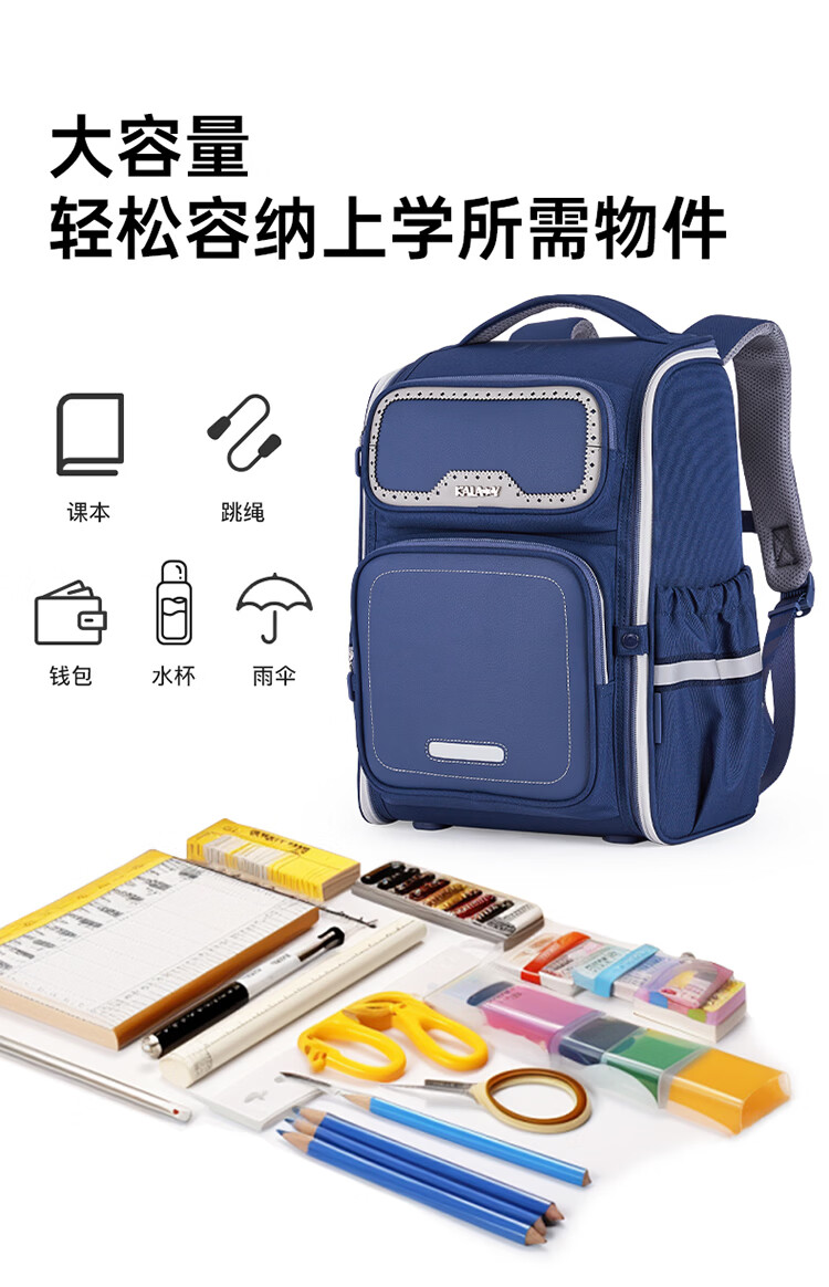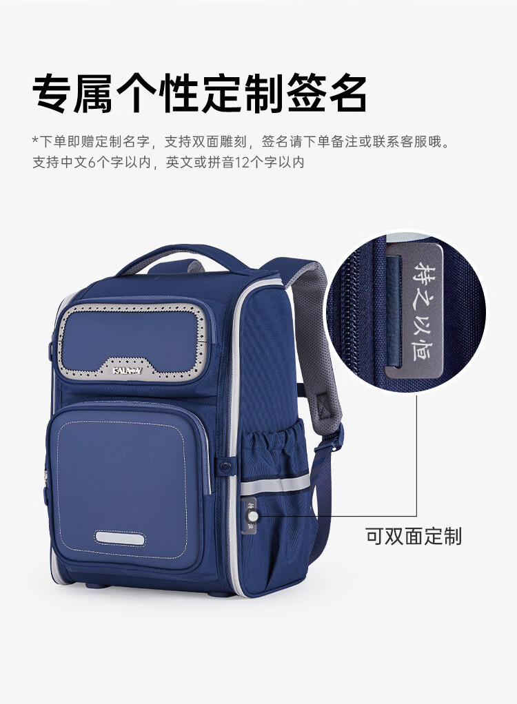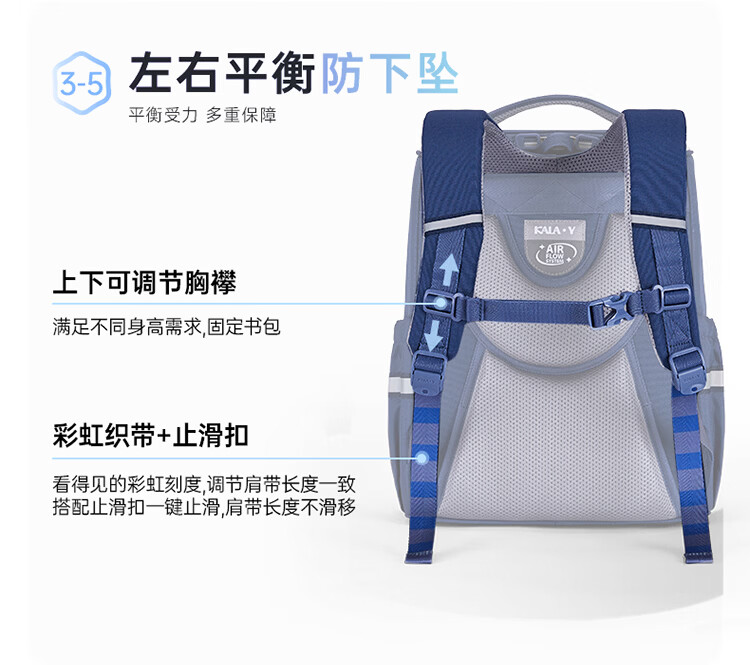 卡拉羊【新年礼物】书包小学生1-3-6年级减负防下坠儿童护脊防泼水背包 大号(个性定制签名牌)经典蓝