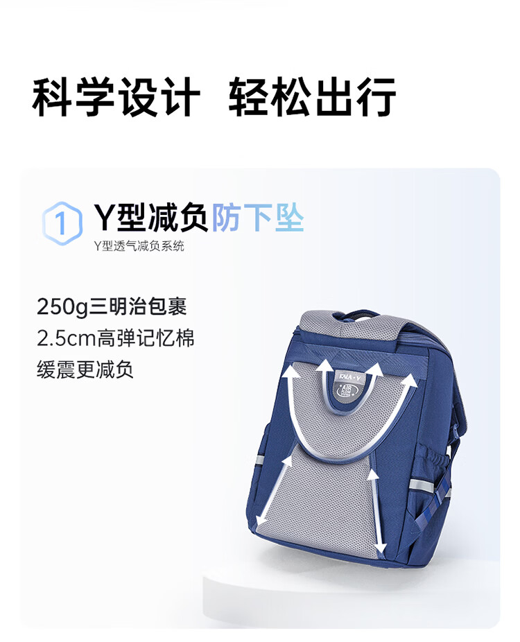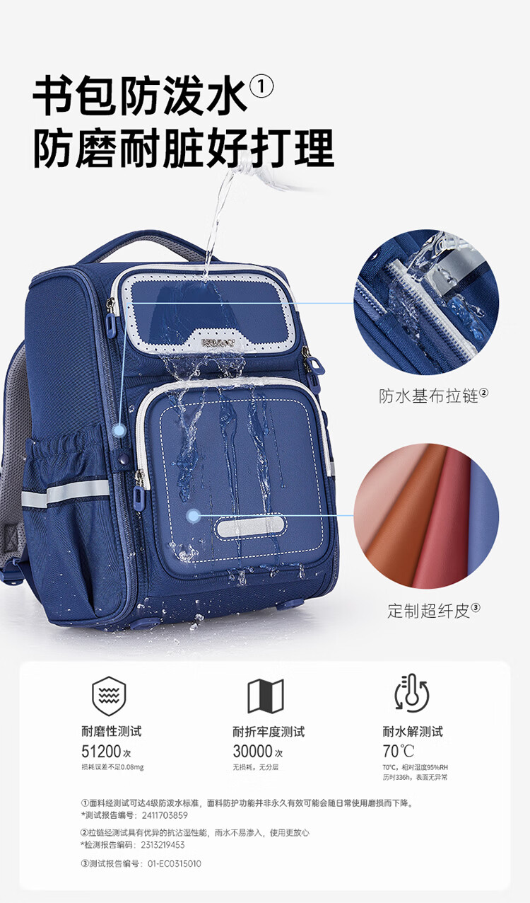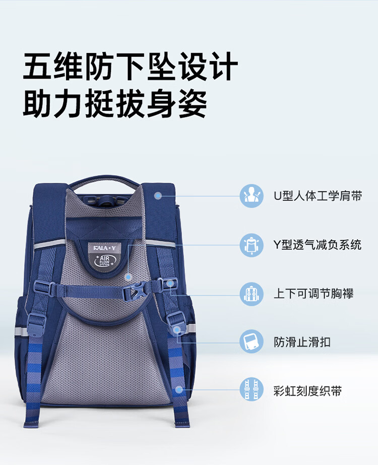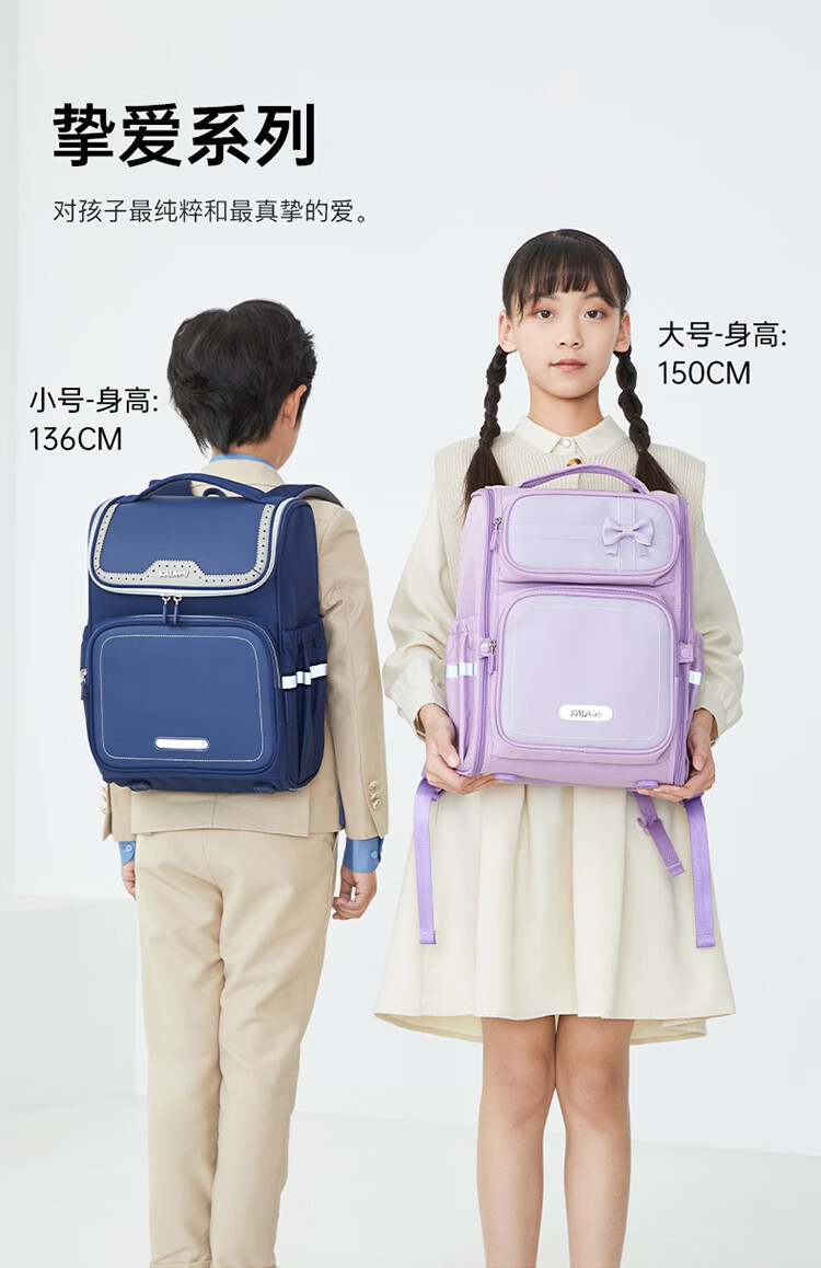 卡拉羊【新年礼物】书包小学生1-3-6年级减负防下坠儿童护脊防泼水背包 大号(个性定制签名牌)经典蓝