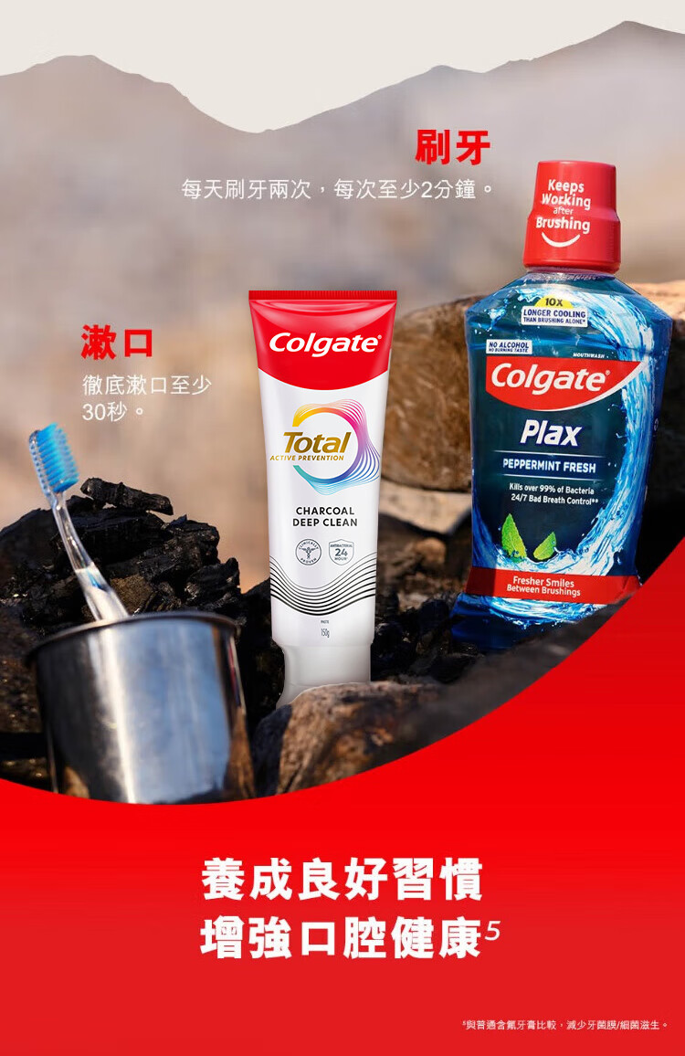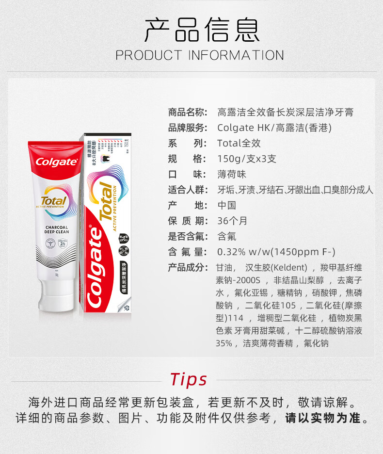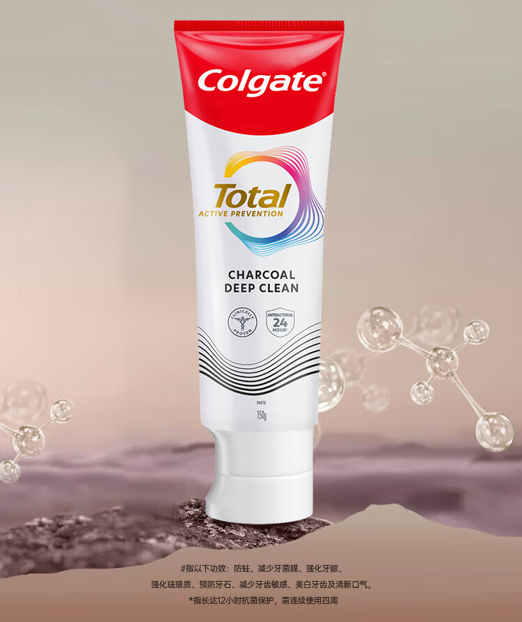 高露洁(Colgate)Total全效备长炭牙膏进口港版亮白抗菌去牙结石去牙菌斑150g*3