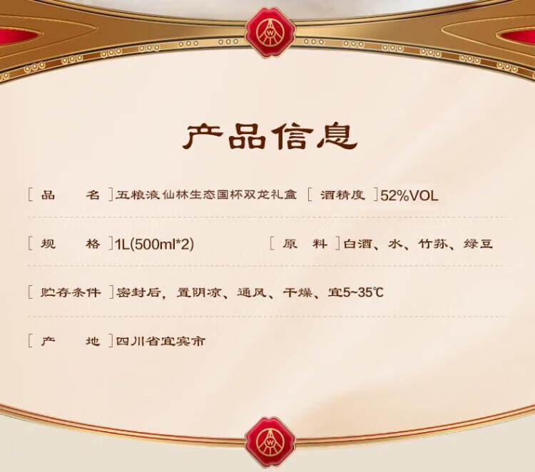 国杯五粮液仙林生态 国杯五彩金龙 52度500ml*6瓶 宴请送礼 精美礼盒 52%vol 500mL 6瓶 国杯五彩金龙/整箱装/6瓶