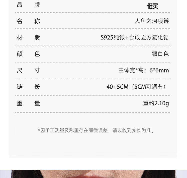 惟灵原创人鱼之泪项链S925纯银轻奢生日女生礼物送女朋友闺蜜 人鱼之泪项链(白色礼盒)