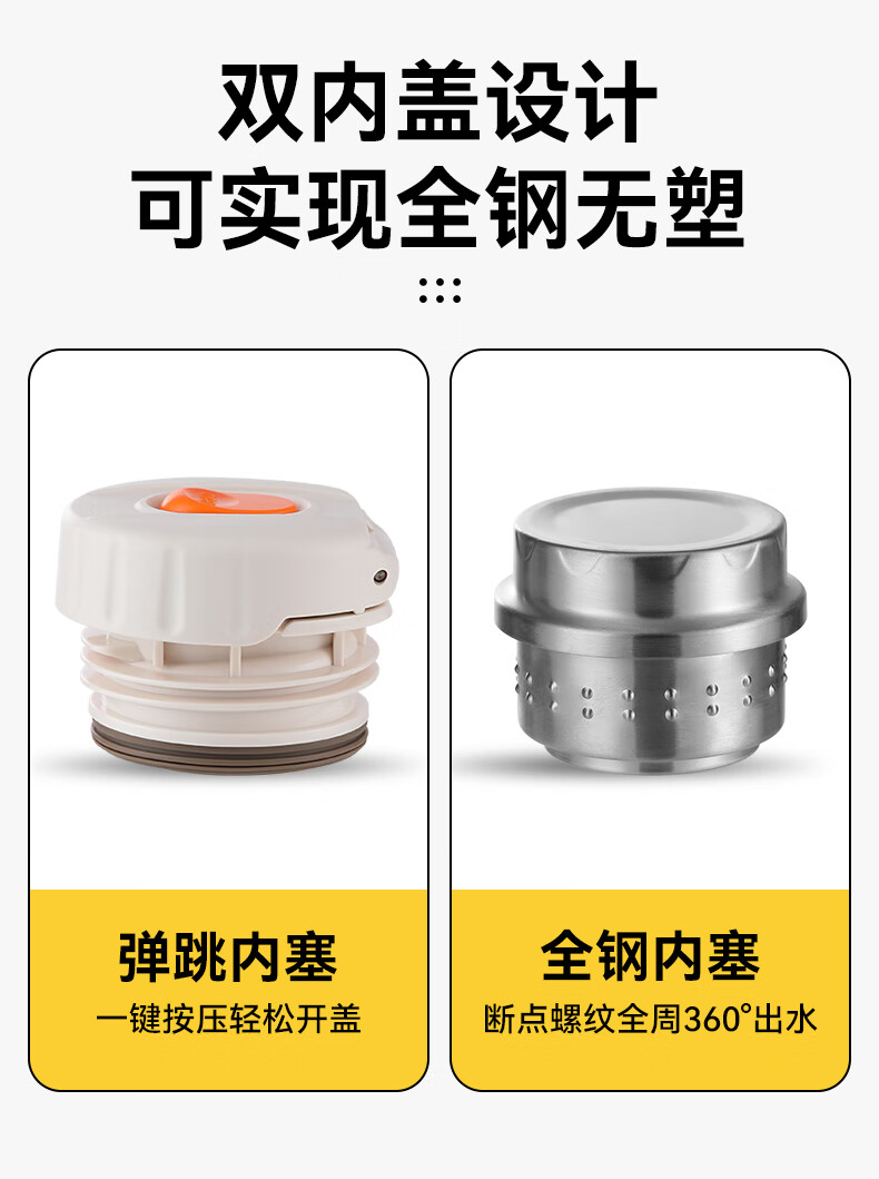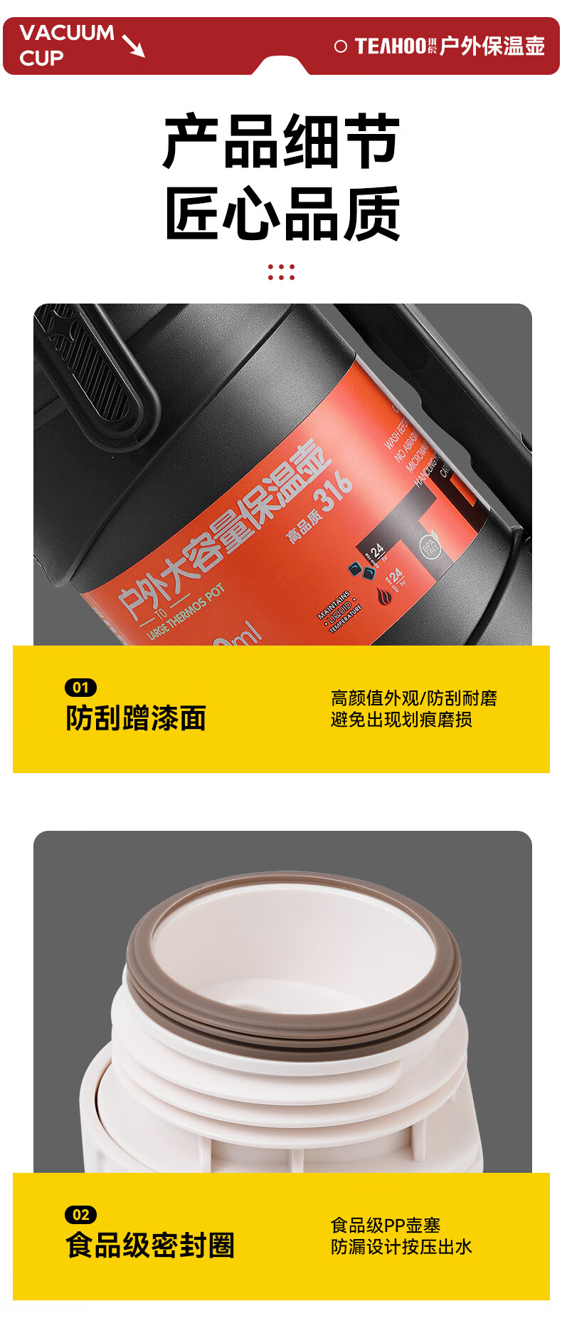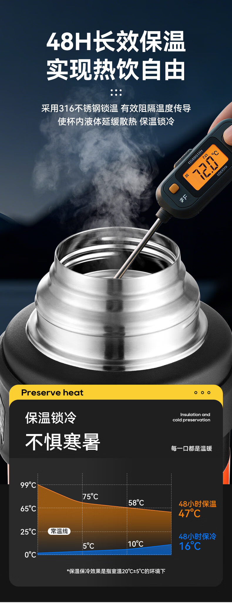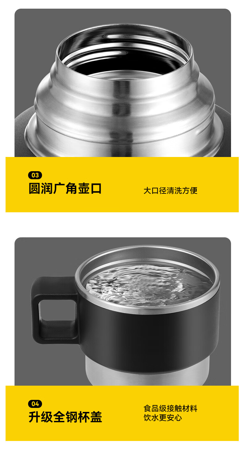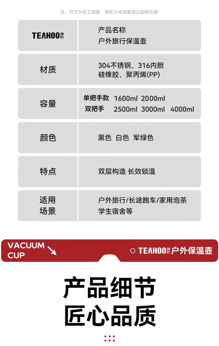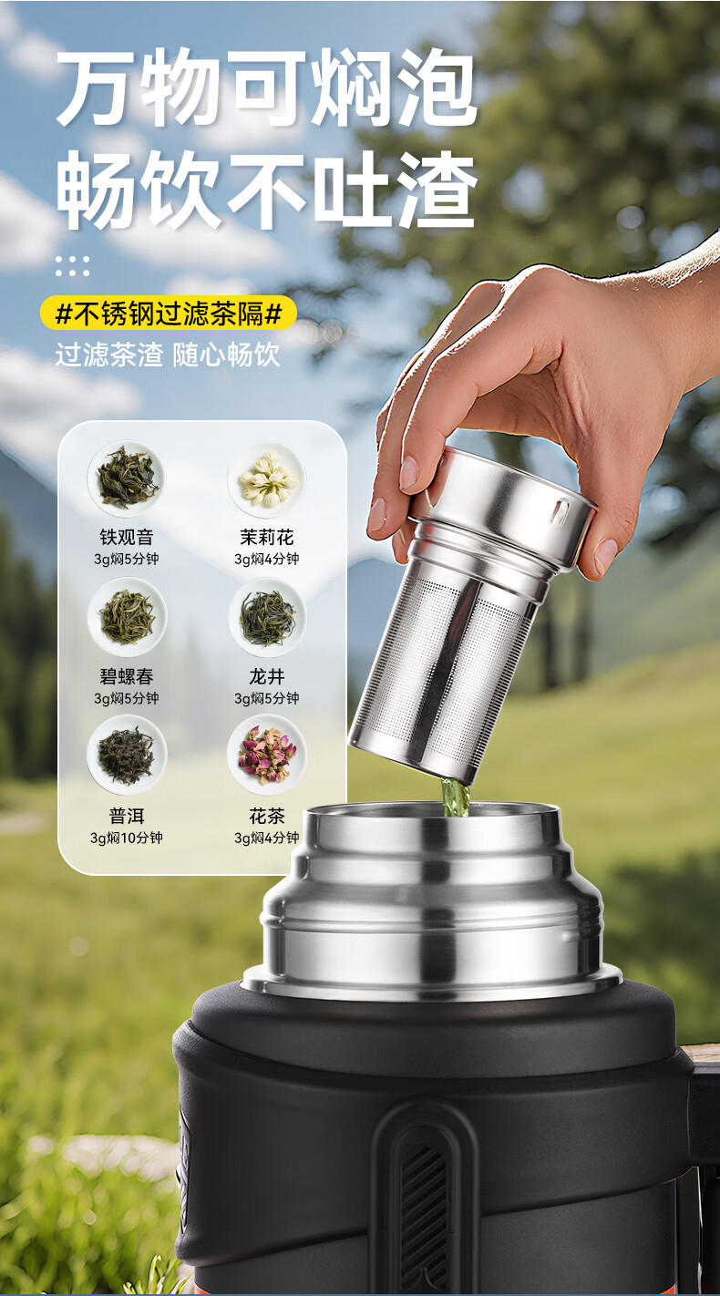 琪虎316不锈钢保温壶大容量户外便携2025新款家用水瓶车载旅行壶宿舍 双内盖-双把手-4000ML黑色