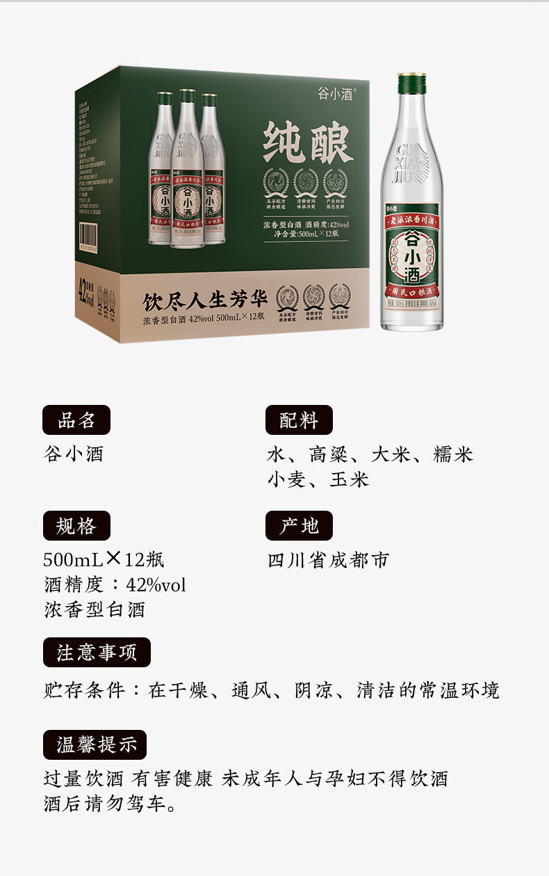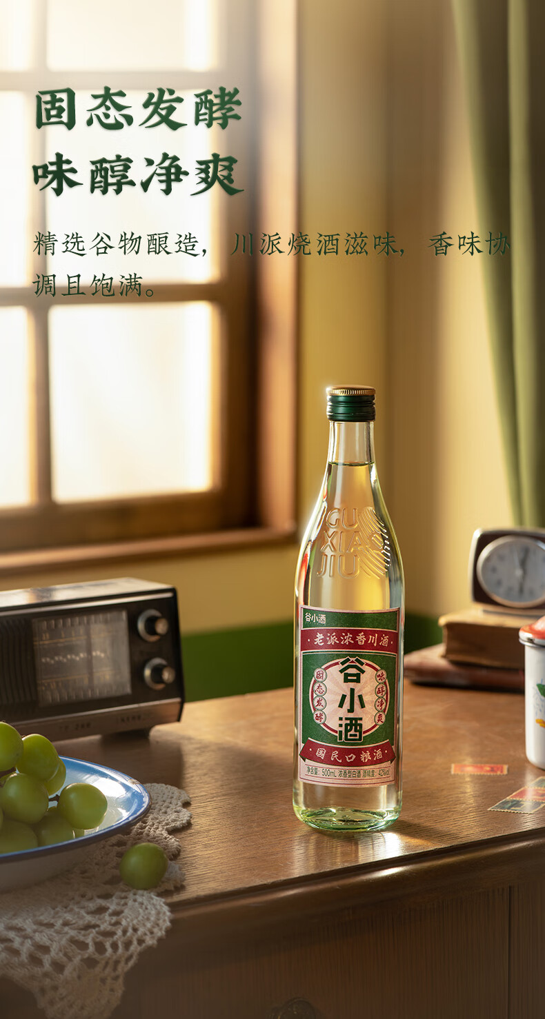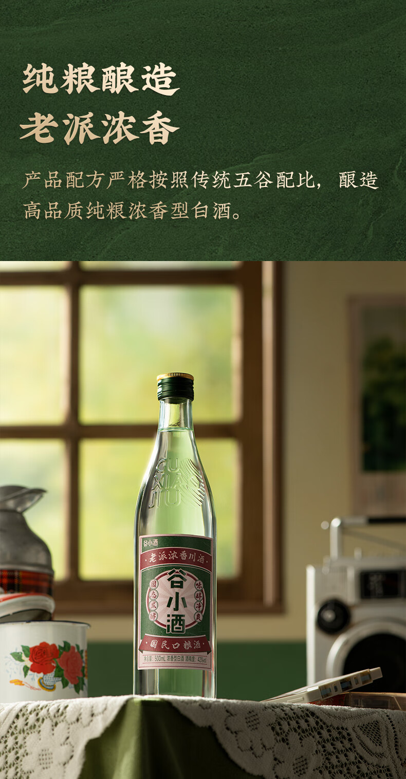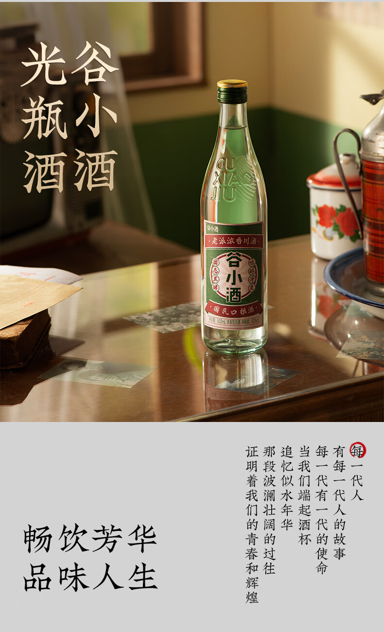 谷小酒芳华白酒浓香型42度500ml纯粮口粮固态发酵整箱官方旗舰店 42度 500mL 1瓶 【专享】