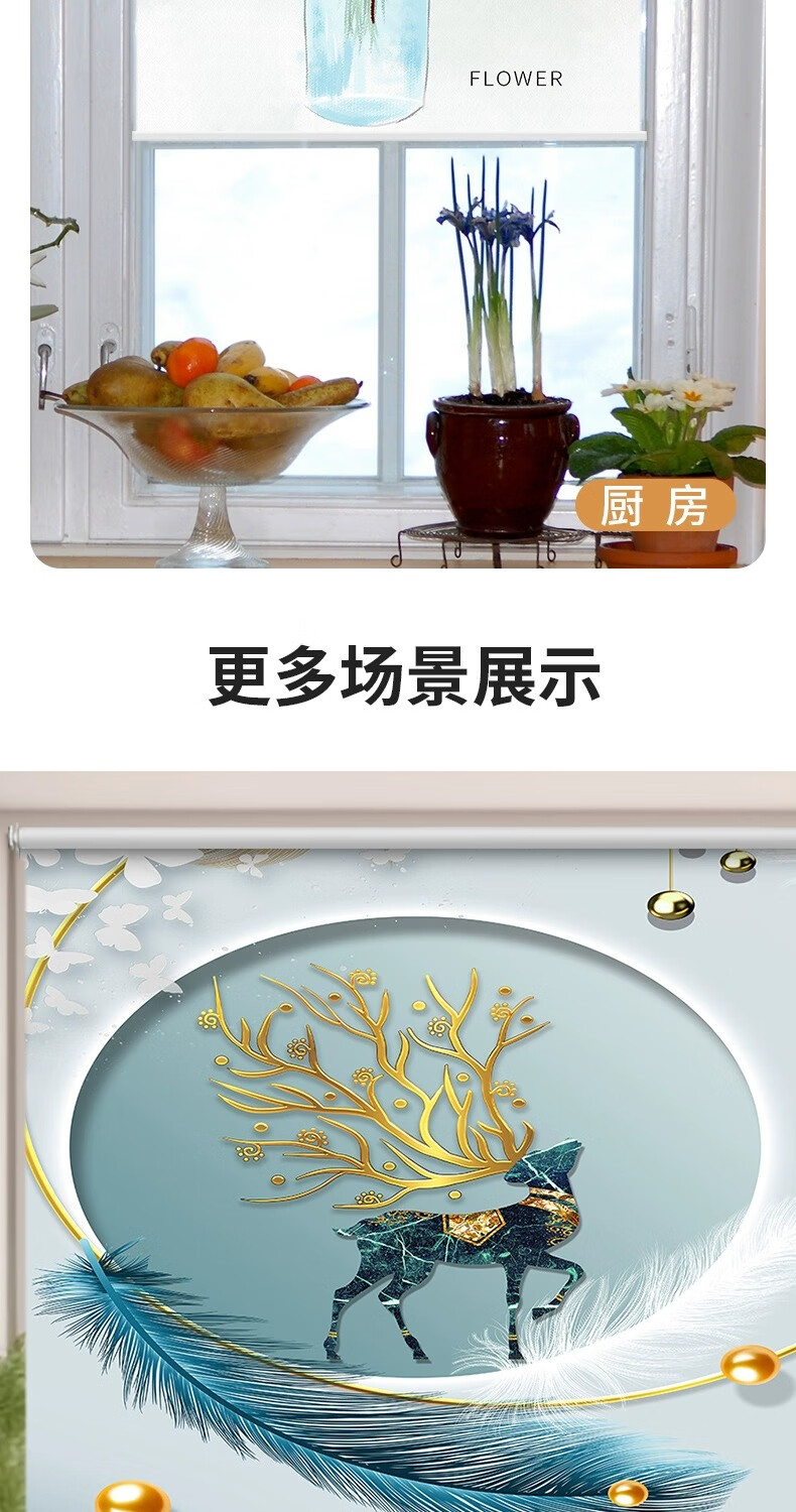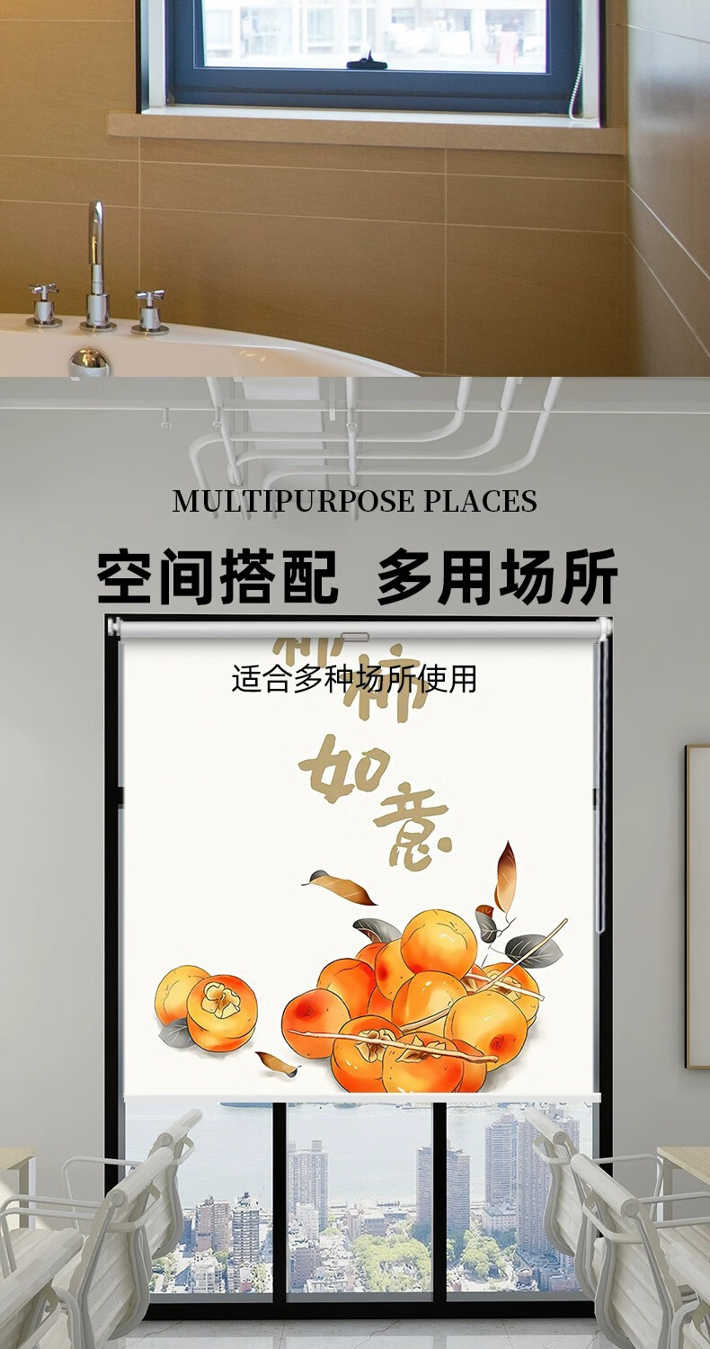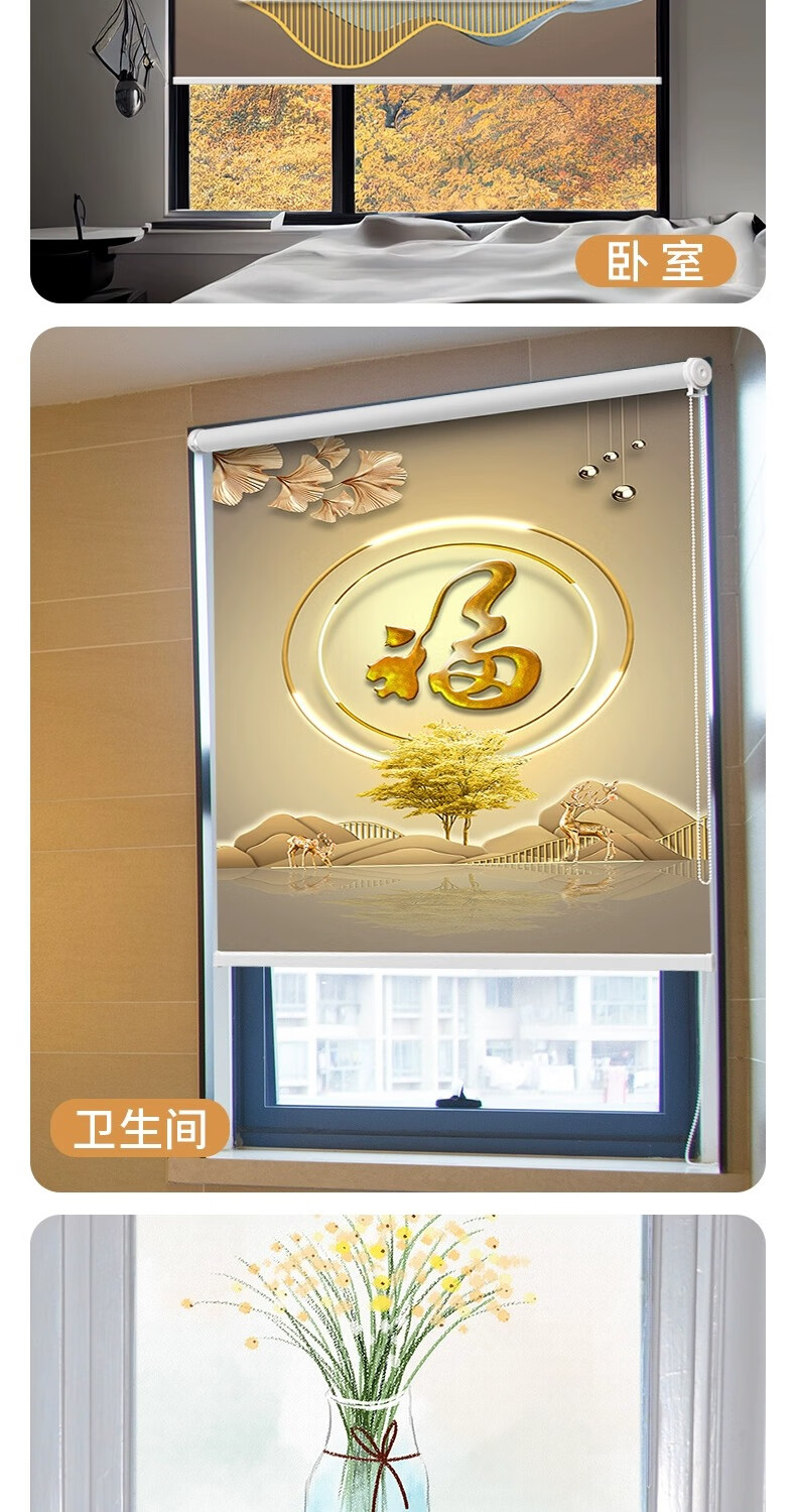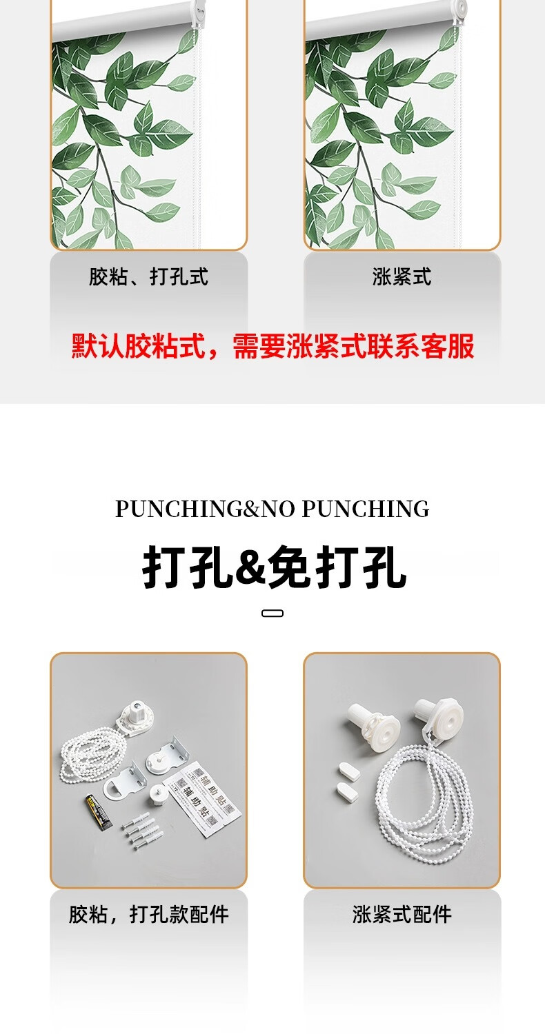 舟裕免打孔安装厨房卧室卫生间窗帘全遮光防水卷拉式遮阳帘新款遮挡帘 qc-10号图 加厚半遮光 平米